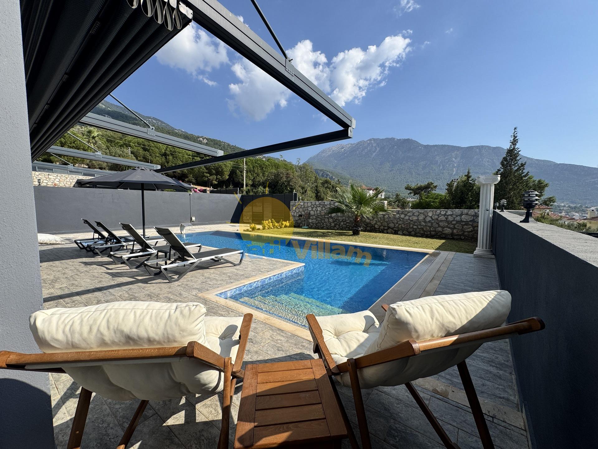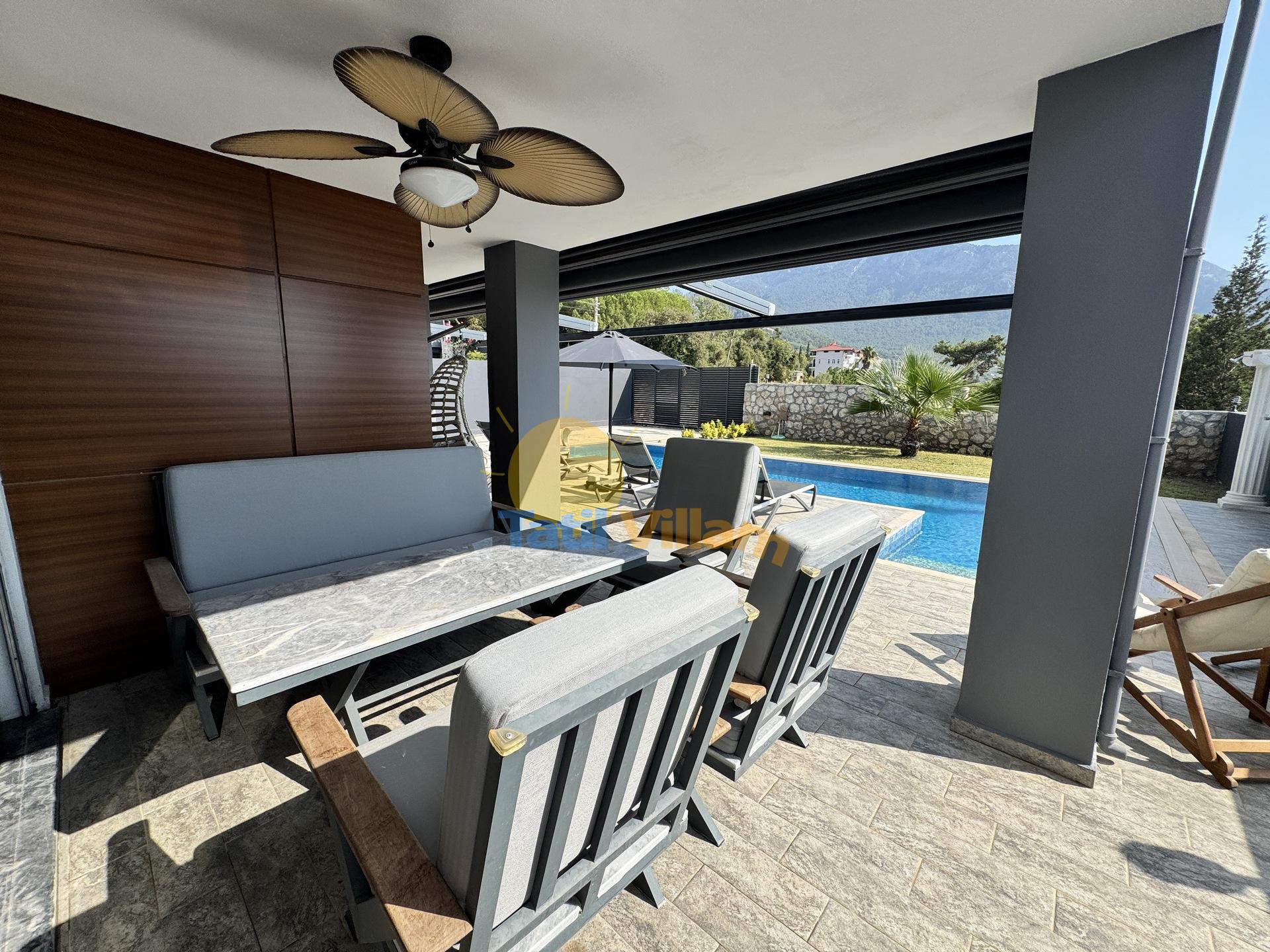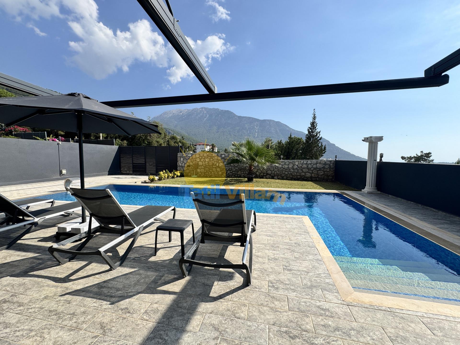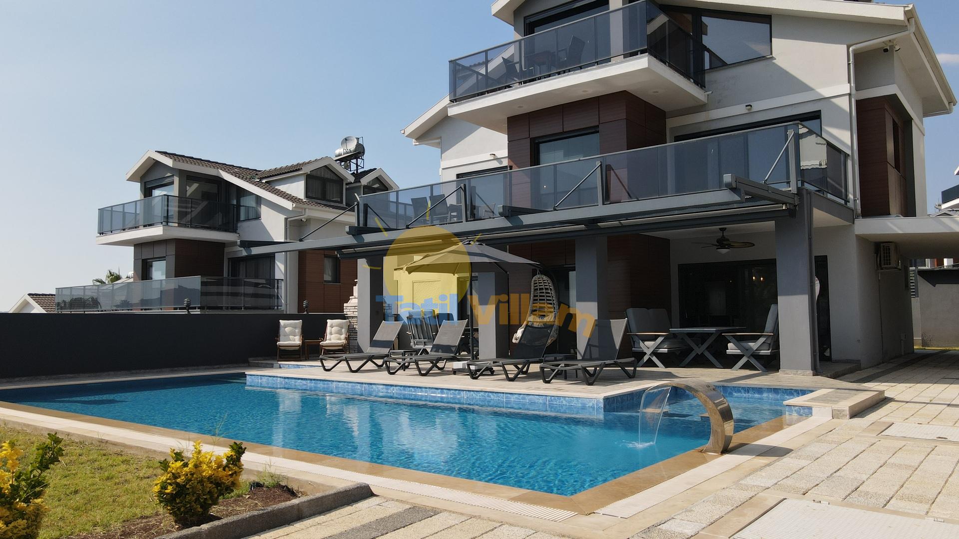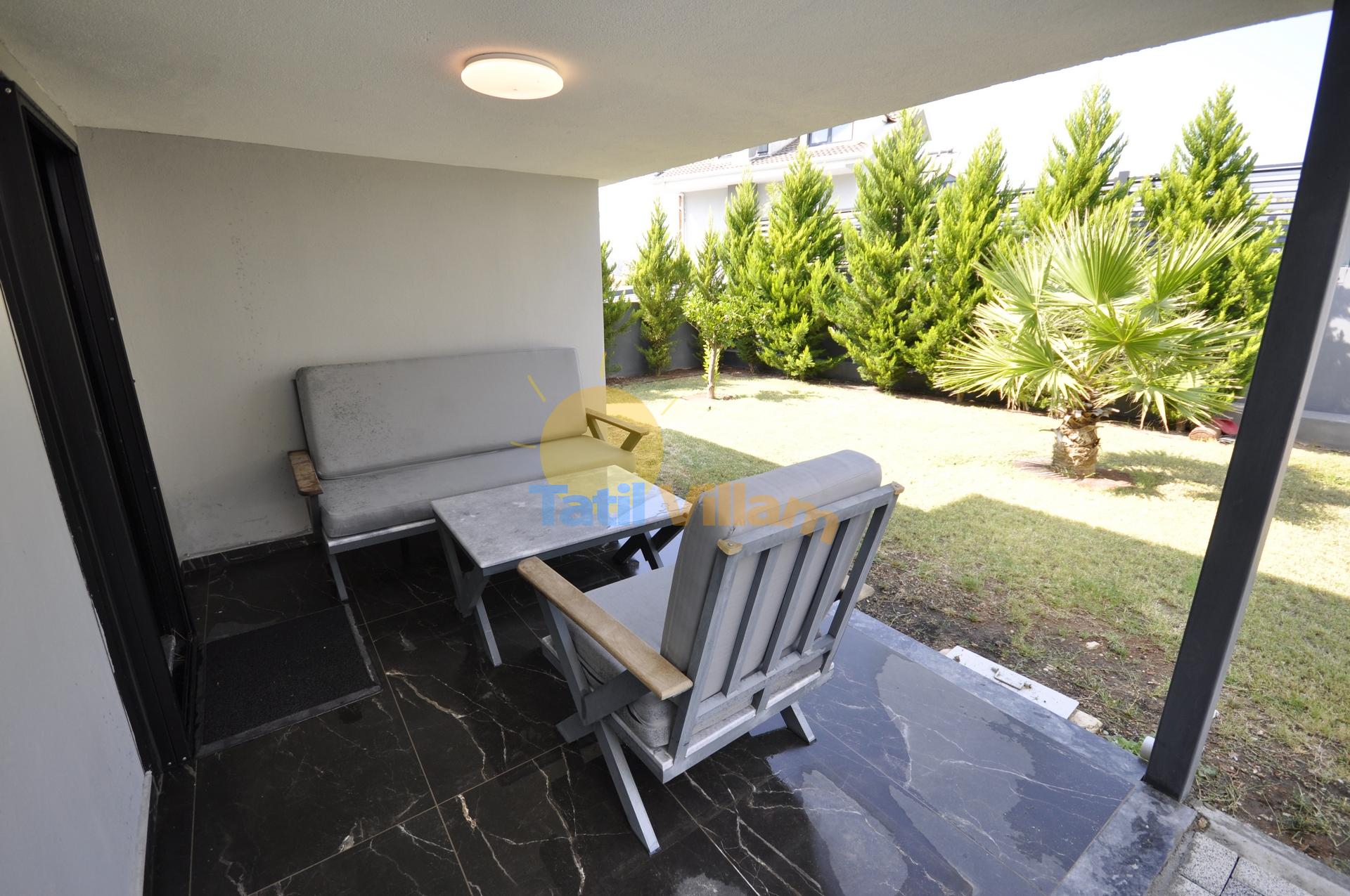 Detayları : Oturma Grubu, Özel yüzme havuzu, 4 Adet şezlong, Güneş şemsiyesi ve Salıncak bulunmaktadır.