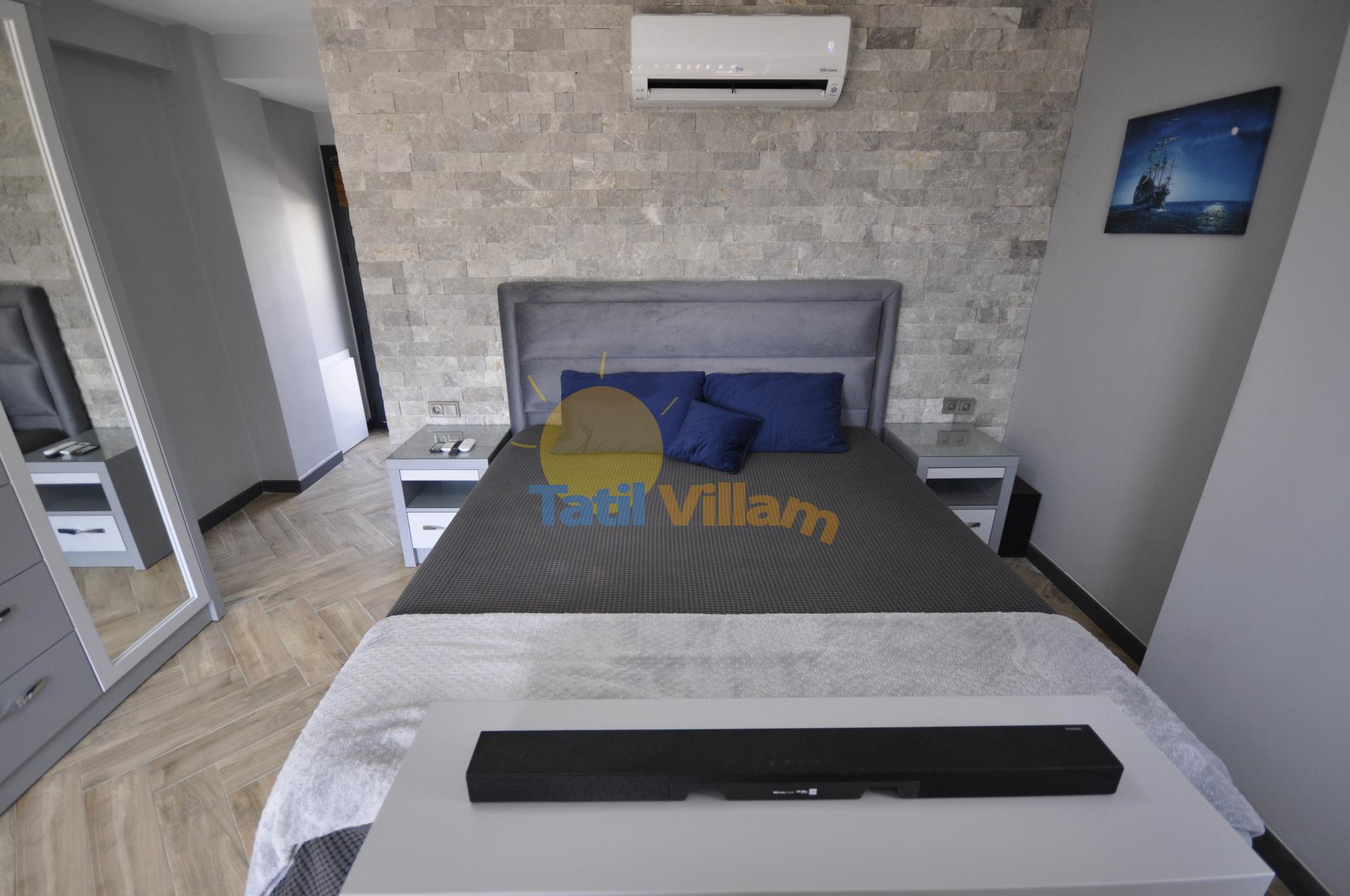 Detayları : Çift kişilik yatak, Elbise Dolabı, Komidin, TV, Klima, Banyo bulunmaktadır.