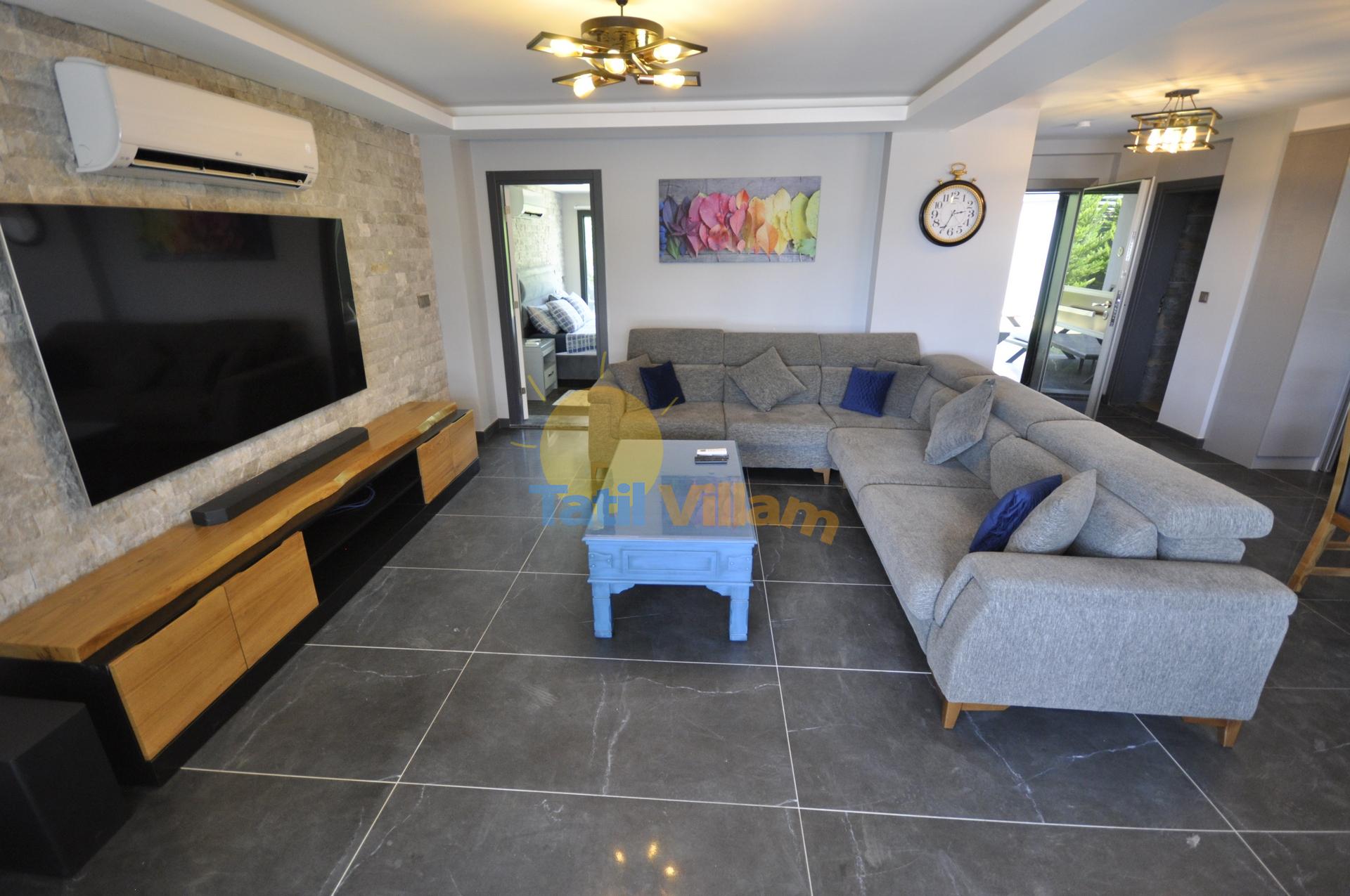 Detayları : Oturma grubu, Uydu , TV, Klima, 6 kişilik yemek masası bulunmaktadır.