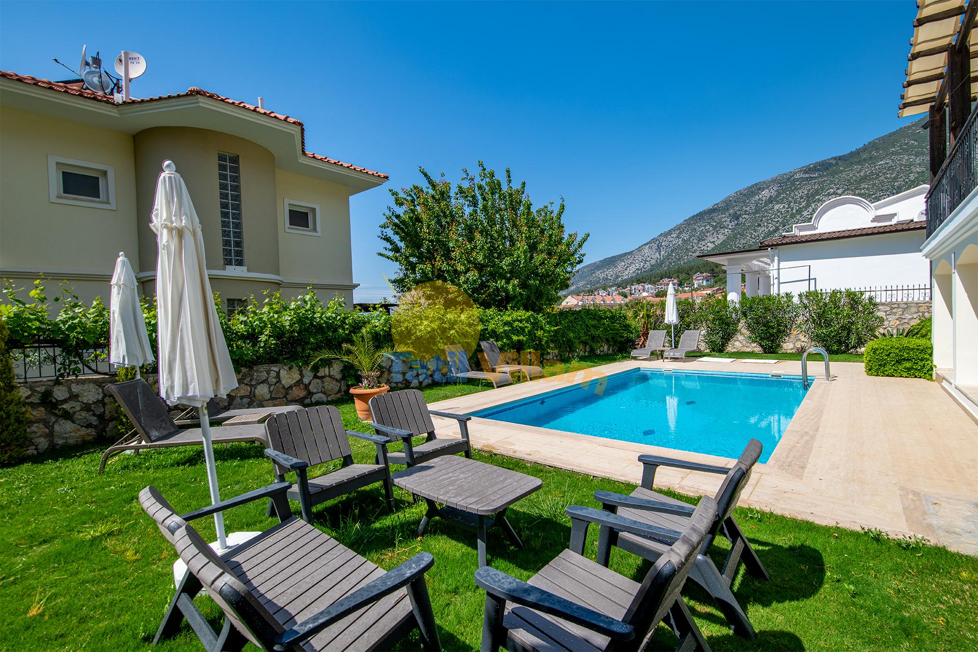 Sevdiklerinizle birlikte muhteşem bir tatil geçireceğiniz tamamı suit 4 yatak odalı tripleks villamız,en gözde tatil beldelerinden biri olan Ölüdeniz Ovacıkta mendos dağının eteğinde doğayla iç içe muhteşem bir konumda yer alır. Kaliteli ve şık, eşya ve mobilyalara sahip villamız da tatiliniz boyunca rahatı ve huzuru bir arada yaşayacaksınız. Eğlence ve alışverişin tadını çıkaracağınız Hisarönü barlar ve restoranlar sokağına araçla 5 dakika mesafede bulunan villamız, dolmuş duraklarına da yürüme mesafesindedir. Unutulmaz bir tatil için villamız sizleri bekliyor.