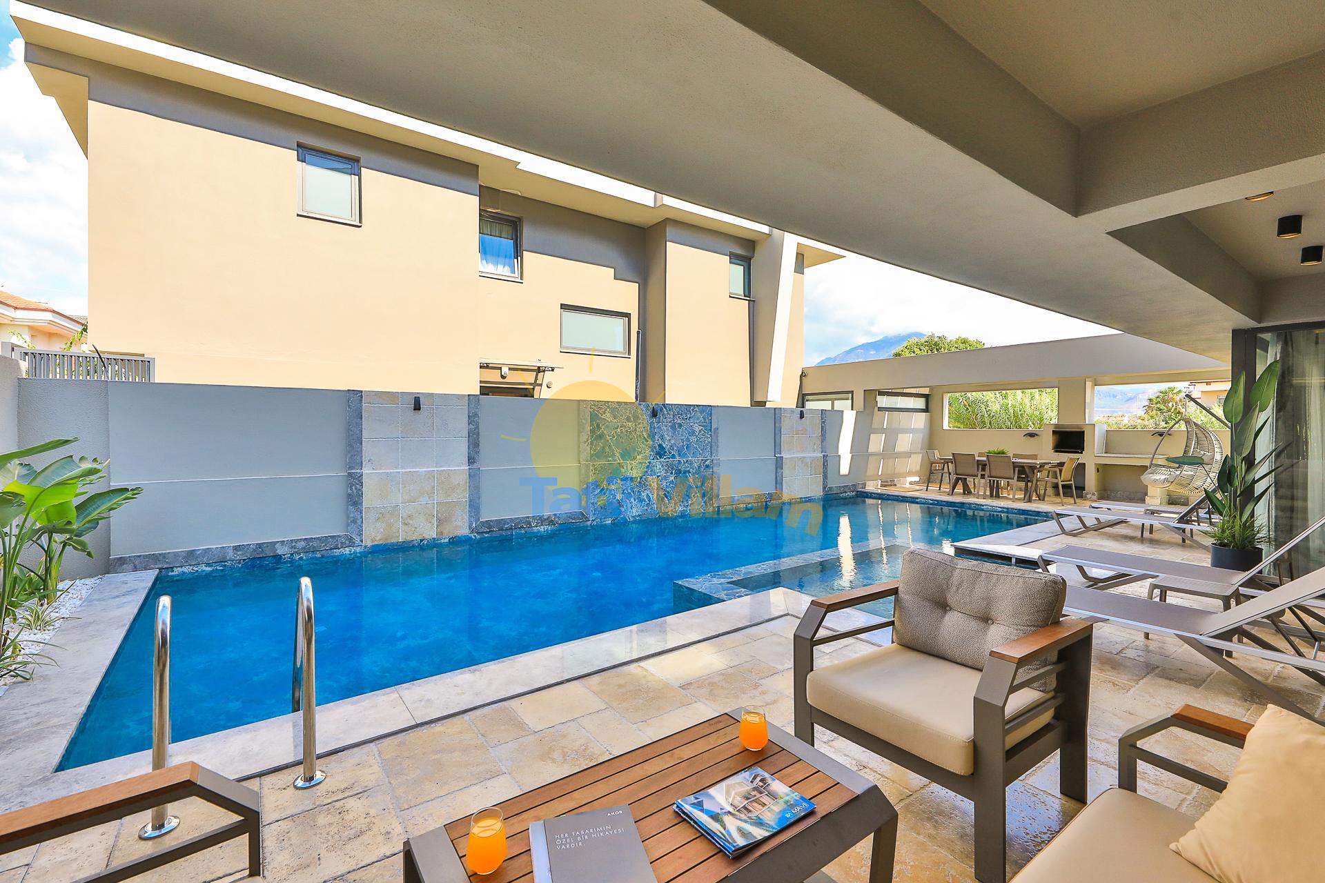 Detayları : Oturma grubu, Uydu TV (LCD) , Klima, 8 Kişilik yemek masası, Şömine, WC & Lavabo ve Havuz kenarına çıkış bulunmaktadır.