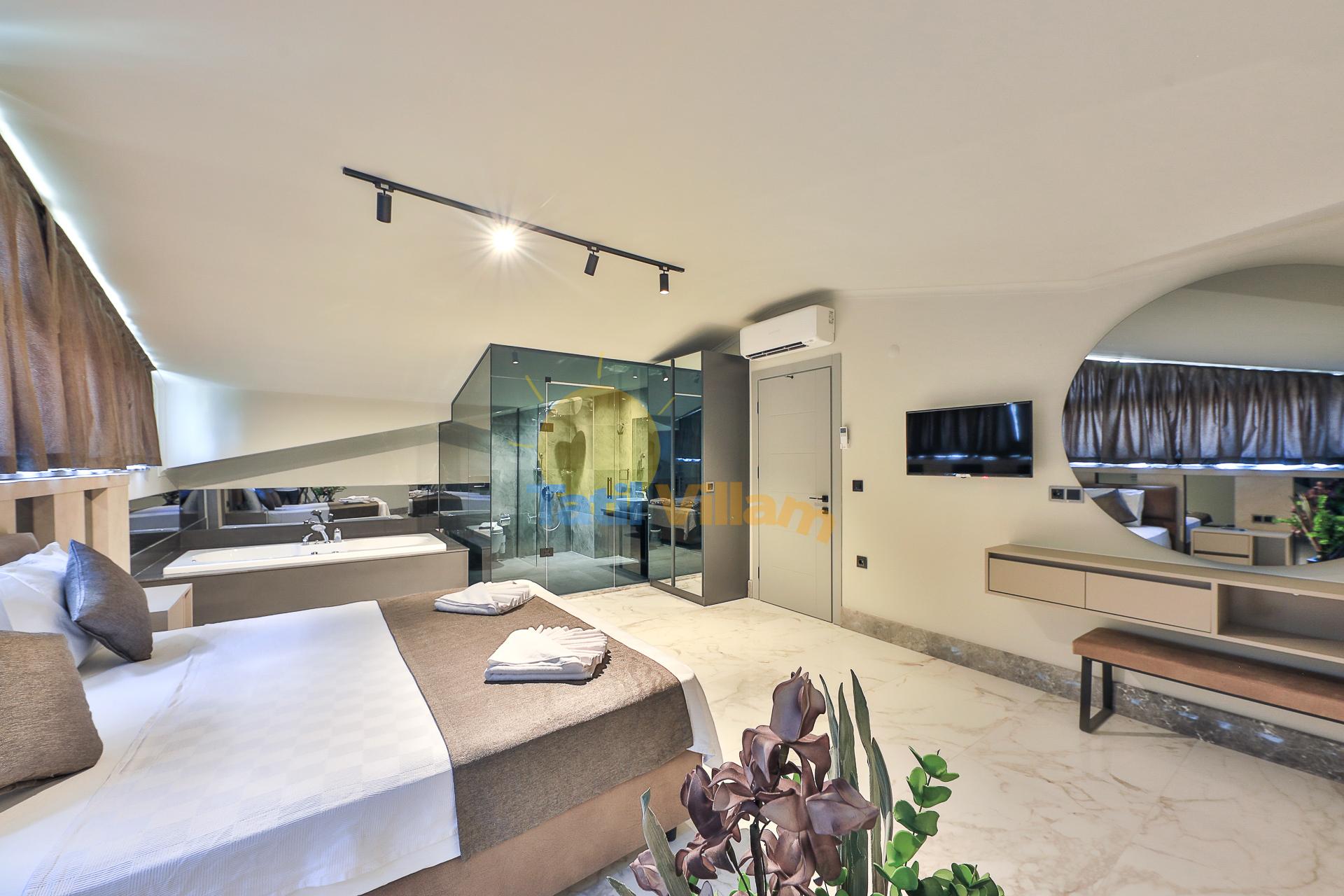 Detayları : Çift kişilik yatak, Elbise dolabı, Komidin, Makyaj masası ,Jakuzi, TV, Klima, Banyo bulunmaktadır.