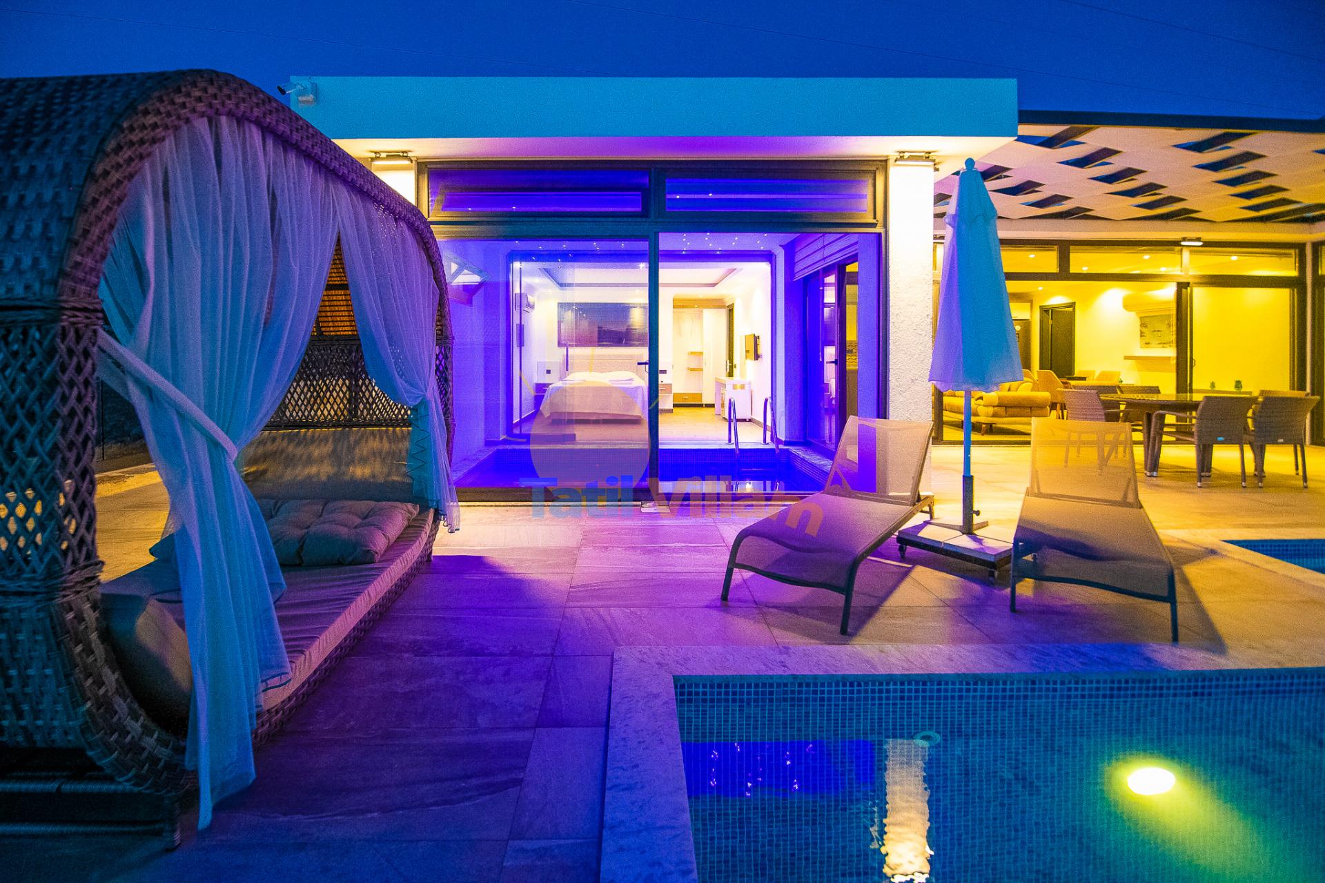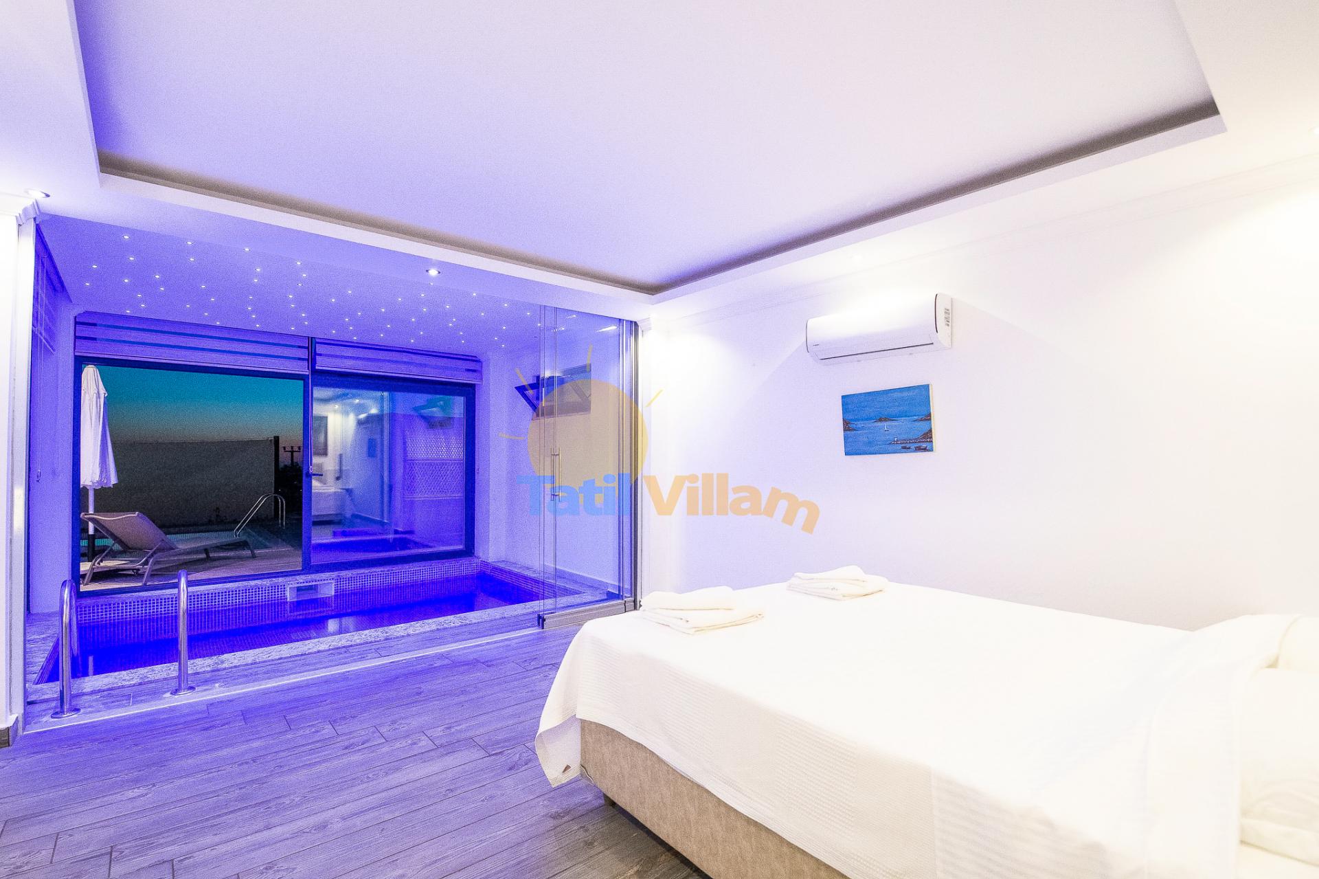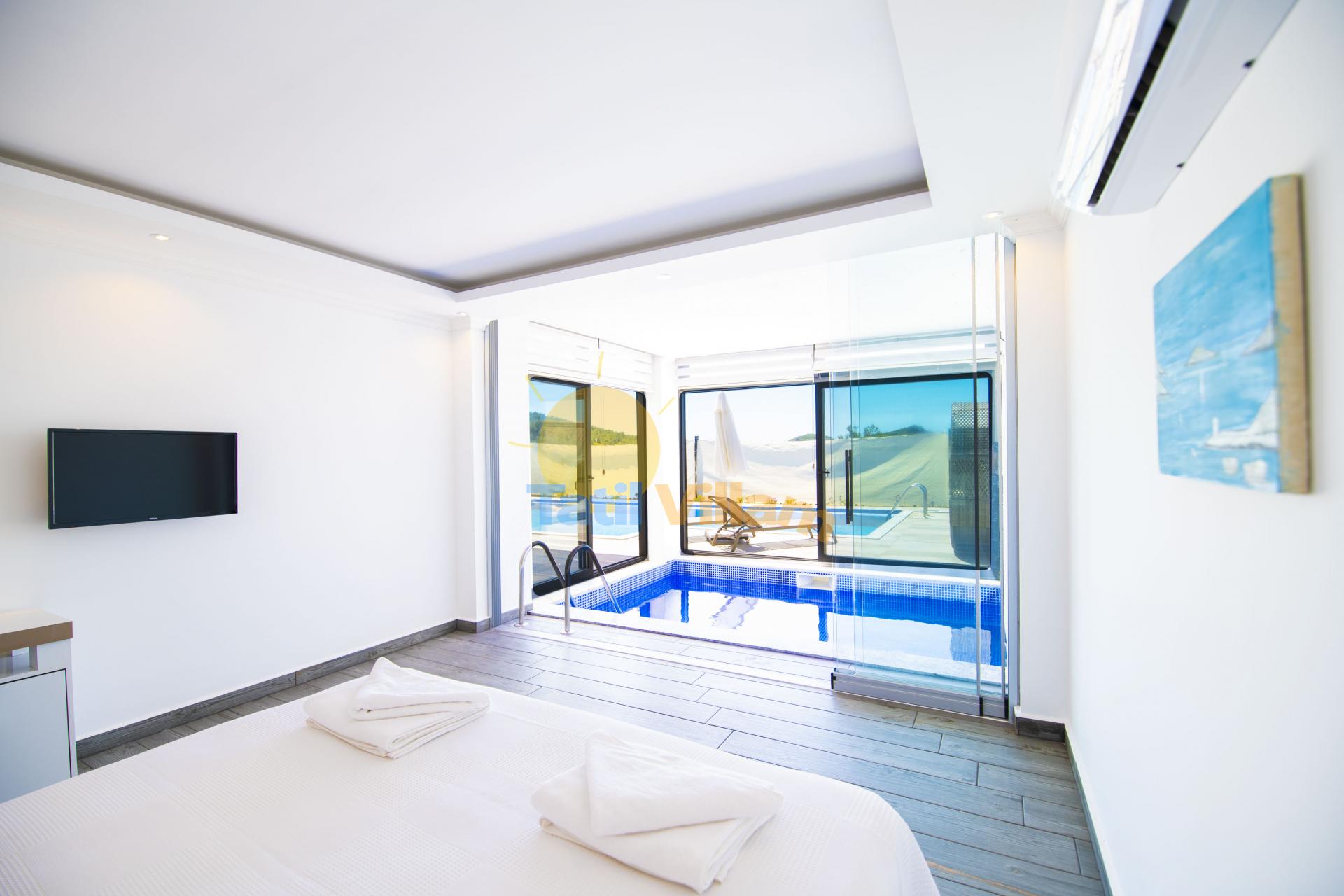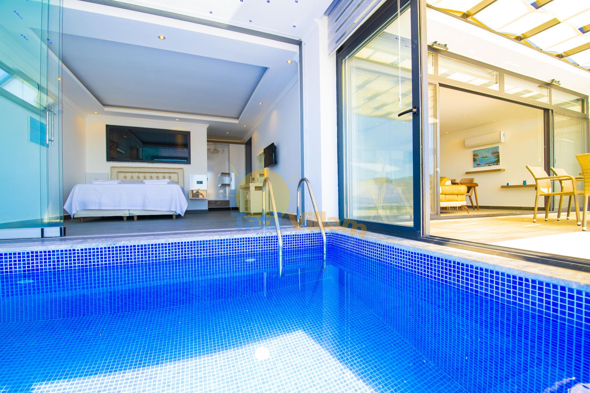 Detayları : Çift kişilik yatak, Makyaj masası, Komodin, Klima, Elbise dolabı, Bebek yatağı, TV, Kapalı havuz, Banyo, Havuz terasına çıkış bulunmaktadır.