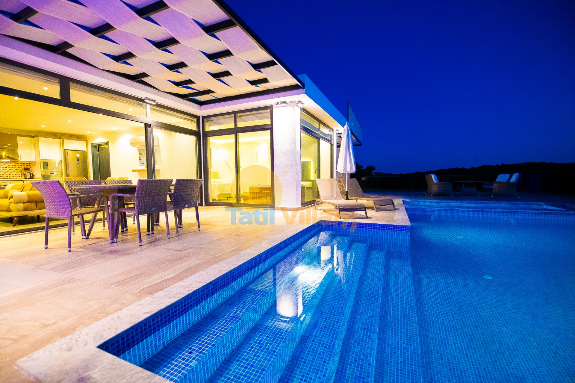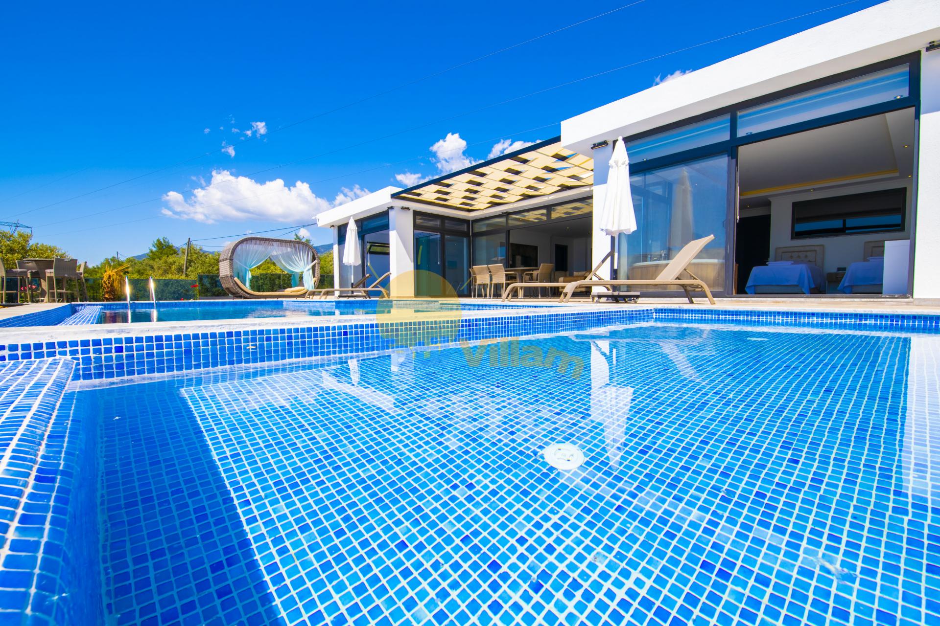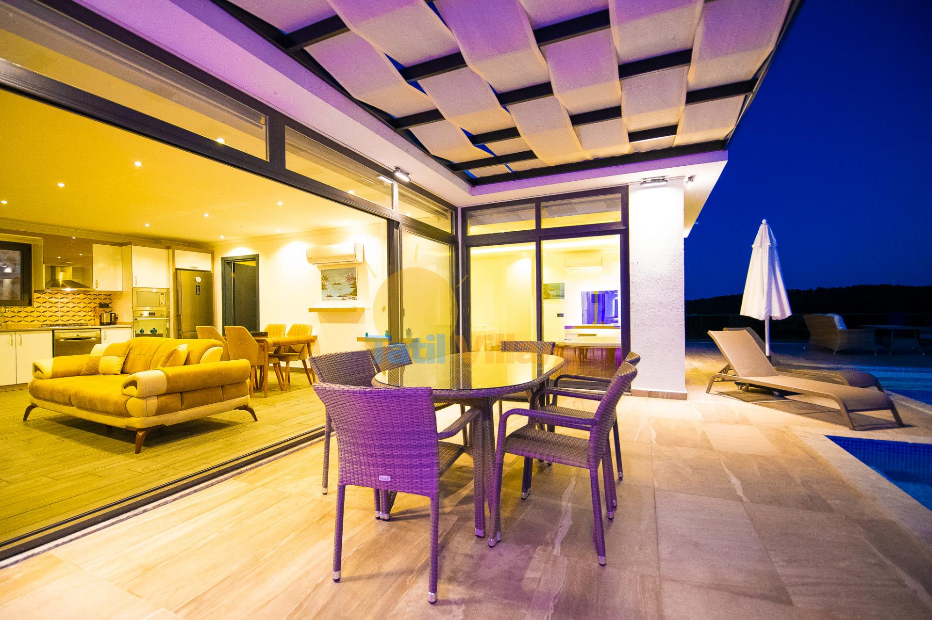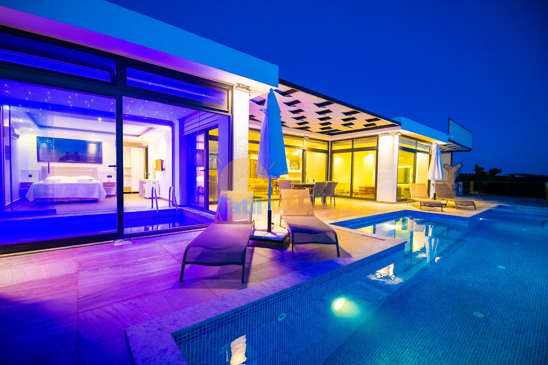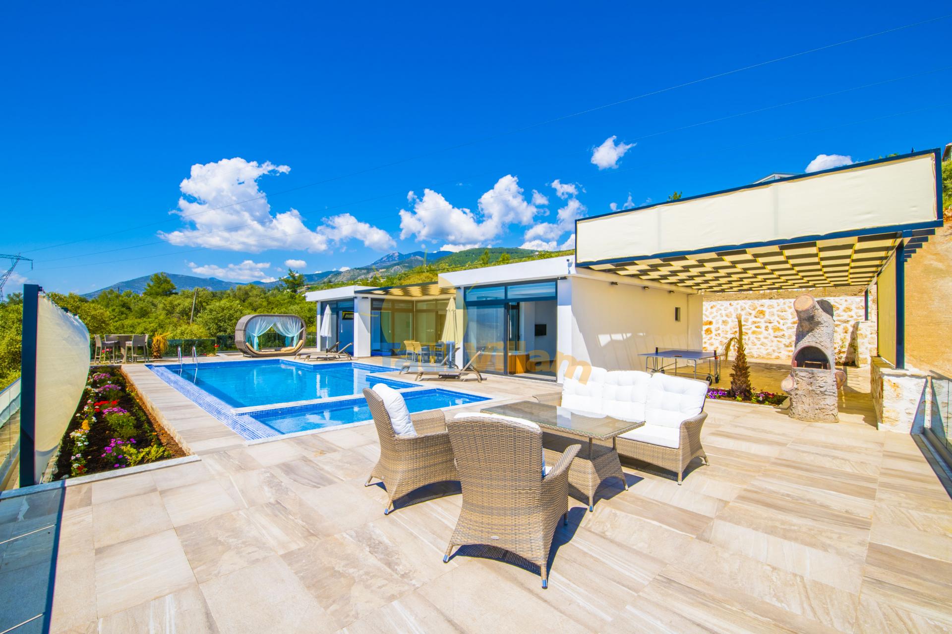 Villa Belçim, Kalkan Üzümlü köyünde bulunan doğanın sınırsızca tüm güzelliklerini sergilediği bir konumda sessiz, sakin, huzurlu bir ortamda tatilinizi yapabileceğiniz en güzel villalarımızdan bir tanesidir. Ferah ve konforlu bir salona sahip olan villamız oldukça şık ve kaliteli şekilde döşenmiştir. 1 adet çift kişilik ve 2 adet tek kişilik yatağı olan villamızın ebeveyn yatak odasında ısıtmalı kapalı yüzme havuzu ve genç yatak odasında jakuzi bulunmaktadır. Özellikle mutaassıp ailelerin ve balayı çiftlerinin gönül rahatlığı ile dinlenip hoş zaman geçirebileceği bir villadır. Yeşil ve mavinin ortasında tek katlı bu modern tatil evi, konum itibariyle havuz terası çok göz önünde değildir. Bütün bu özellikleri ile villamız , siz değerli misafirlerimize unutulmaz bir tatil yaşatmak için sizleri beklemektedir.