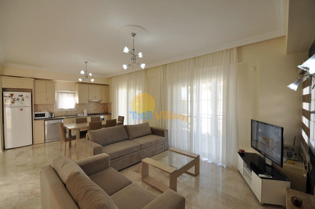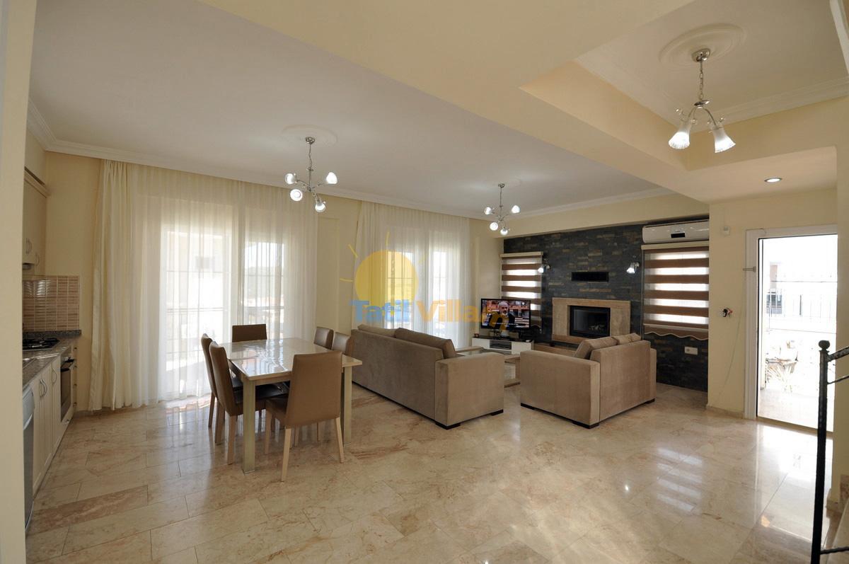 Detayları: Oturma grubu, Uydu TV, DVD Player, Klima, Yemek masası bulunmaktadır.