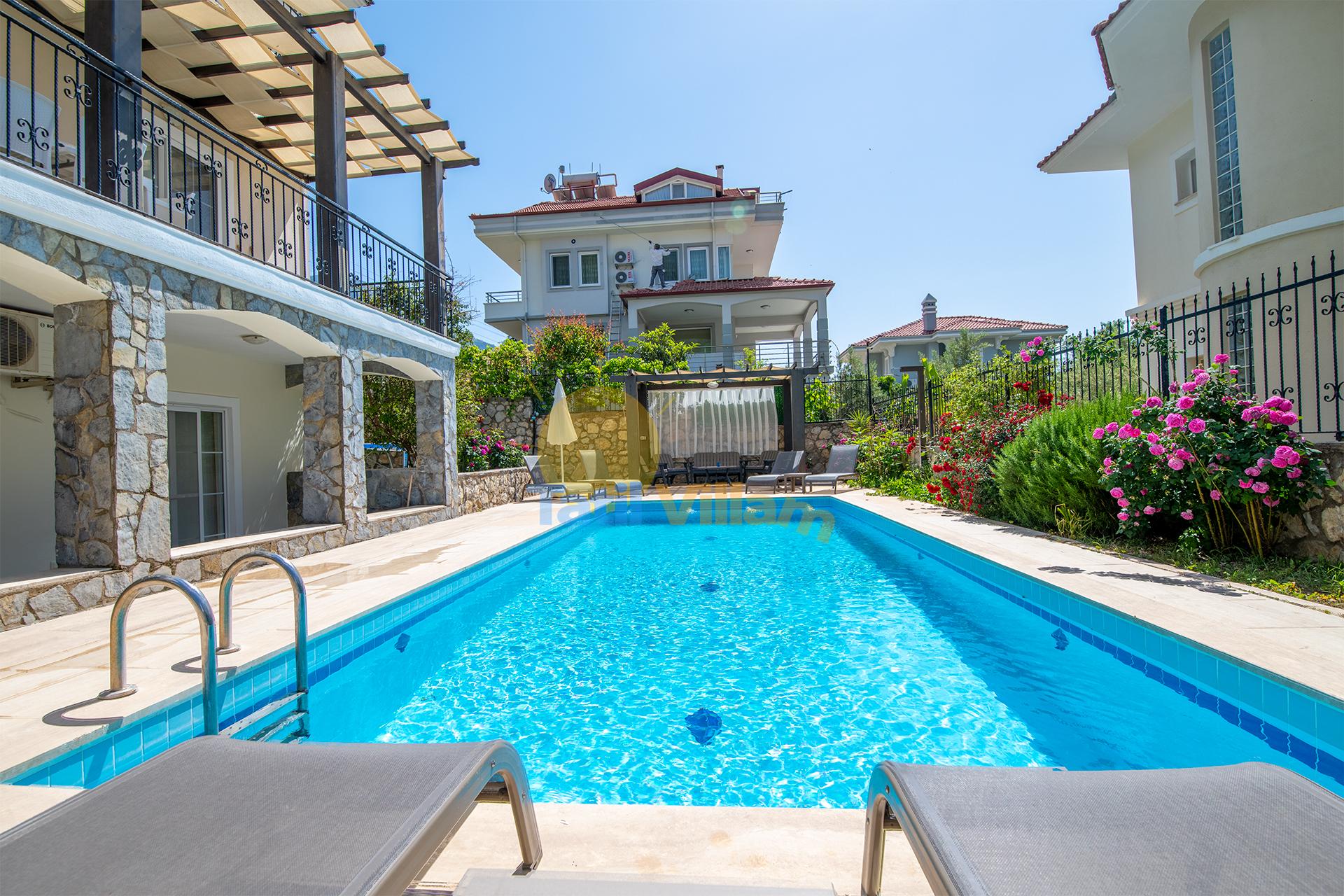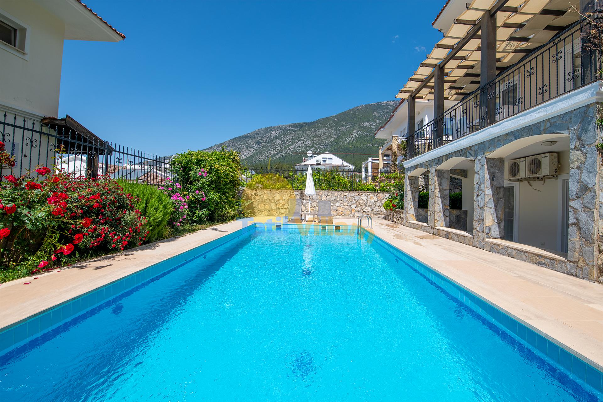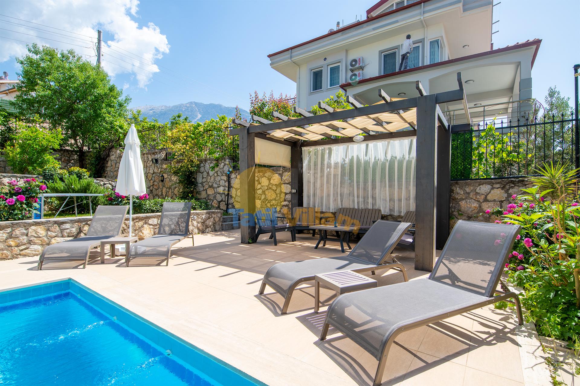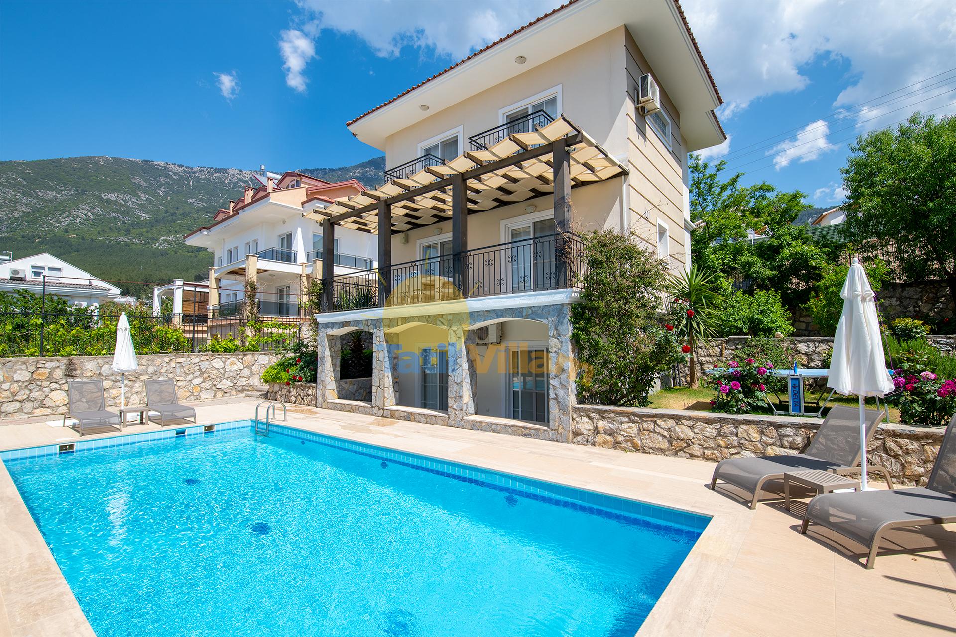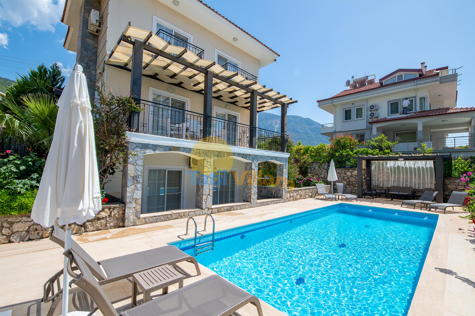 Likyalılar döneminde güneş ve ışık diyarı olarak adlandırılan, Ölüdeniz’in şirin yerleşim bölgelerinden biri olan Ovacık bölgesinde bulunan villamız sakin ve huzurlu bir tatil için iyi bir tercih sebebi olacaktır.Villamız, farklı tat ve lezzetleri bünyesinde bulunduran restoranların, sevdiklerinizle gönlünüzce eğlenebileceğiniz bar ve kulüplerin bulunduğu Ovacık ve Hisarönü merkeze sadece yürüyüş mesafesindedir.Ünlü Mendos Dağı ve Babadağı esintileriyle muhteşem bir lokasyonda yer alan, geniş bir bahçeye sahip olan villamızda, keyfinizce zaman geçirirken aynı zamanda dünyaca ünlü Ölüdeniz plajına hemen villamızın aşağısından geçen Ölüdeniz dolmuşlarıyla ulaşabilirsiniz.
