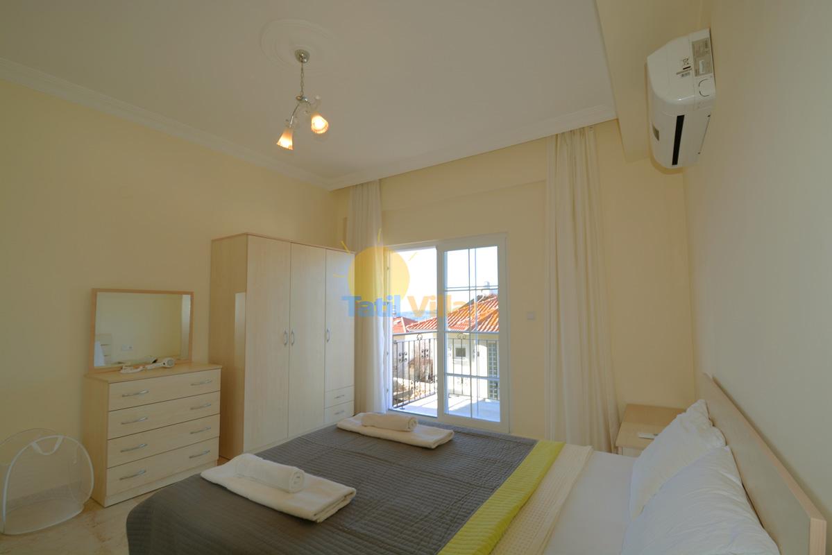 Detayları: Çift kişilik yatak, Komidin, Klima, Elbise dolabı, Banyo,Balkon