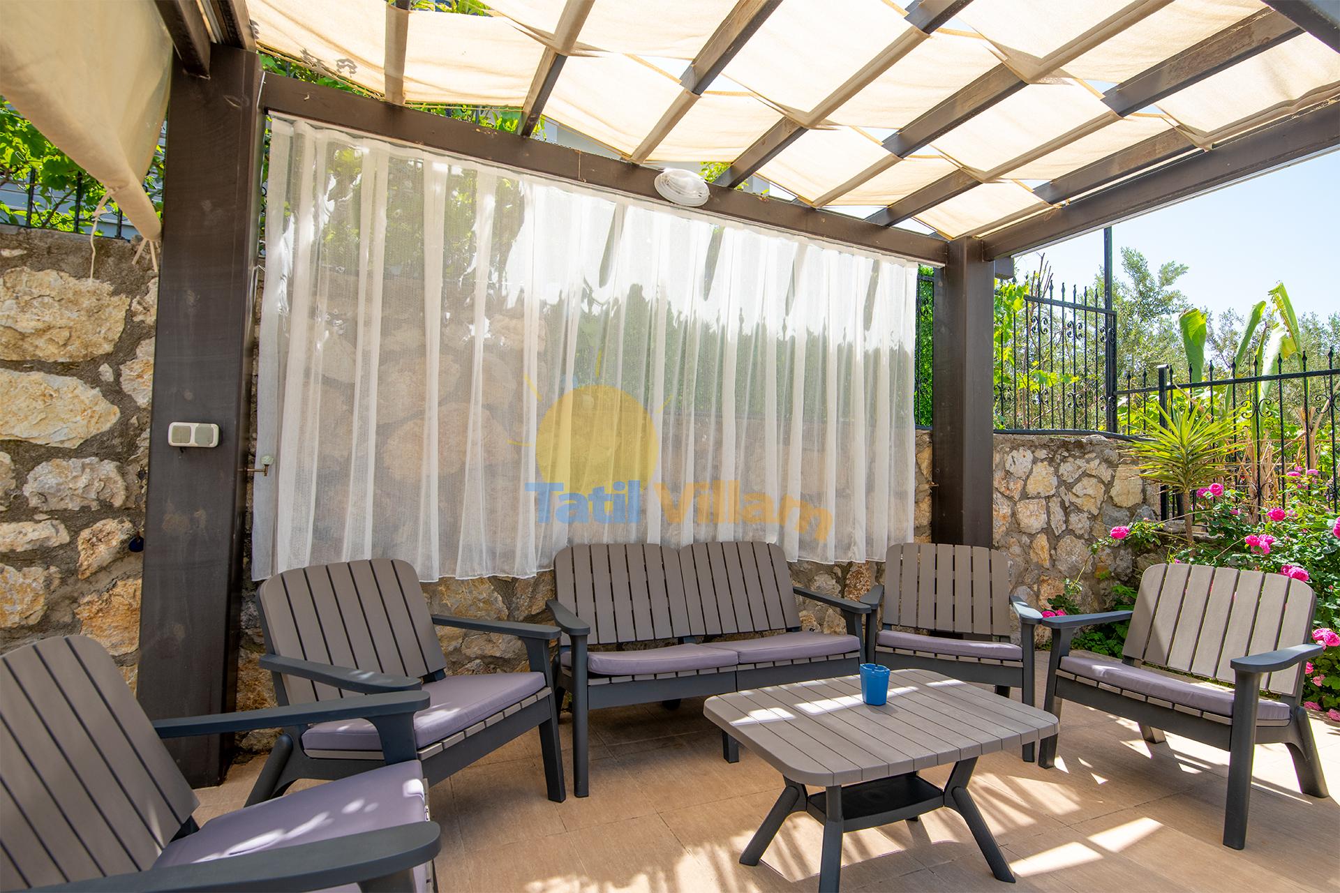 Detayları: 6 adet şezlong, Oturma grubu, Mangal, Güneş şemsiyesi ve Masa tenisi
