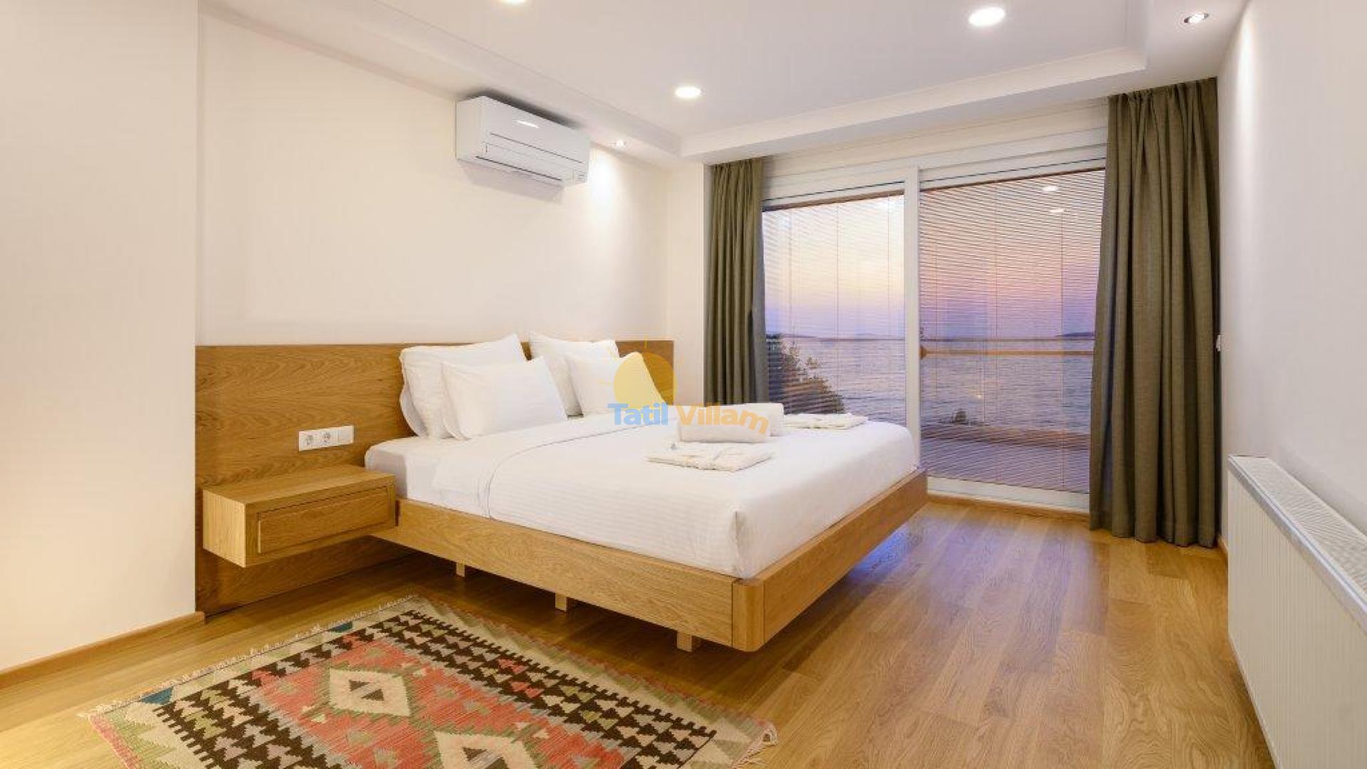 2. Yatak Odası : Deniz manzaralı suit aile yatak odası olup yatak odasında 1 adet çift kişilik yatak, klima, elbise dolabı, komodin, banyo/WC ve balkon yer almaktadır. (1. Kat)