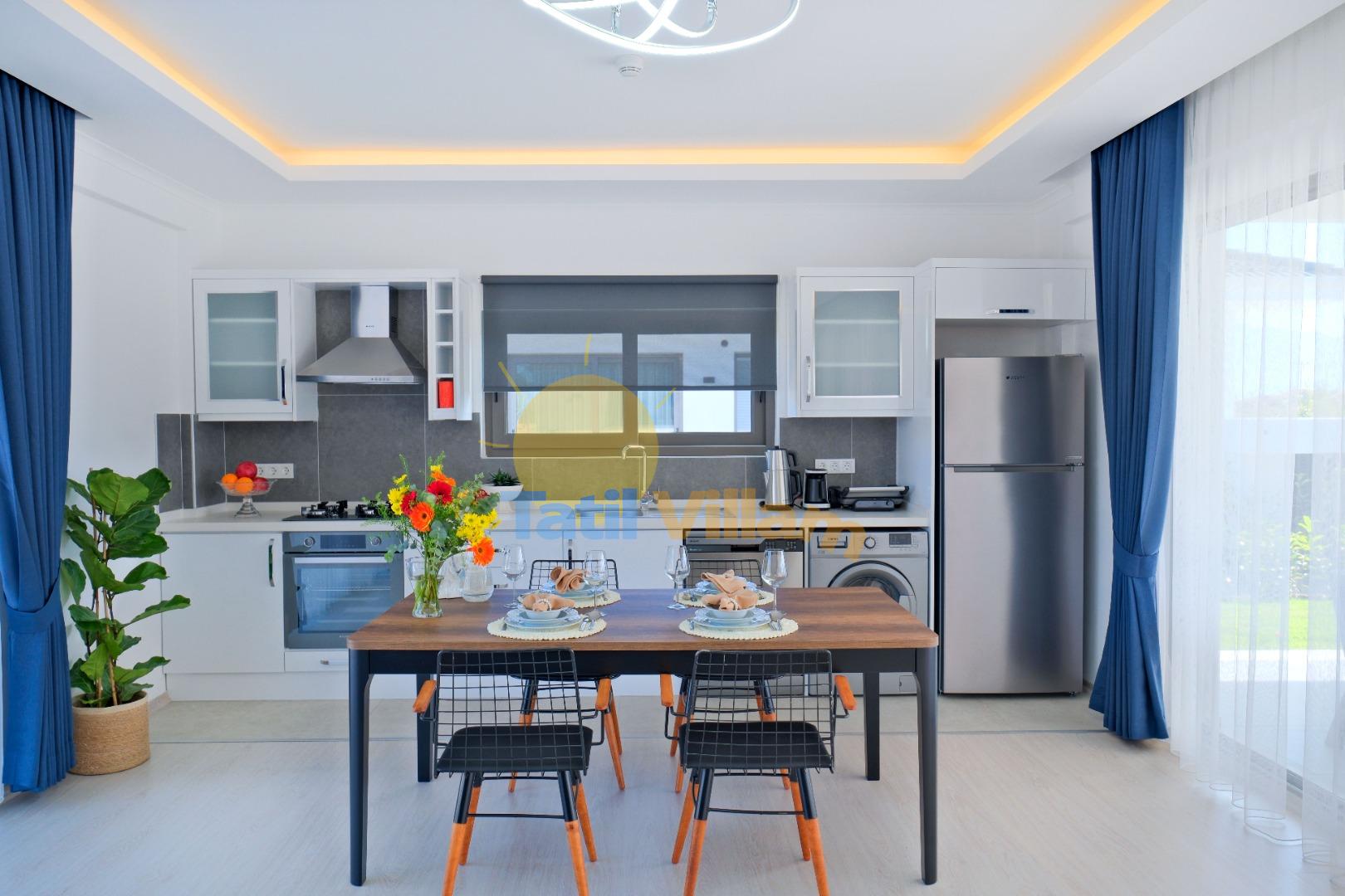 Detayları : Buzdolabı, Bulaşık makinesi, Çamaşır makinesi, Kahve makinesi, Fırın, 4’lü Ocak, Elektrikli su ısıtıcı,Tost Makinesi, 4kişilik yemek takımı, Tava, Tencereler, Çatal bıçak vb.