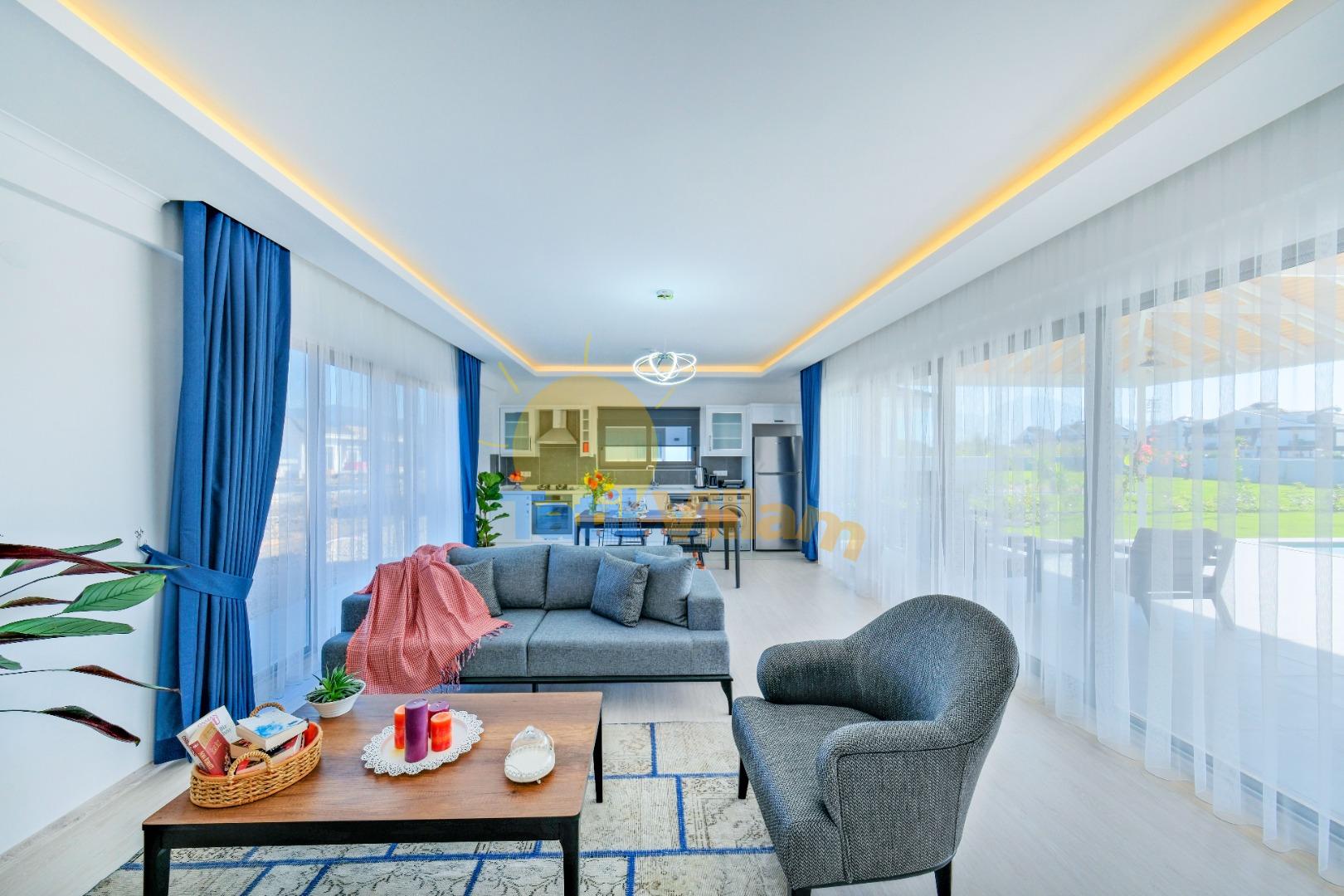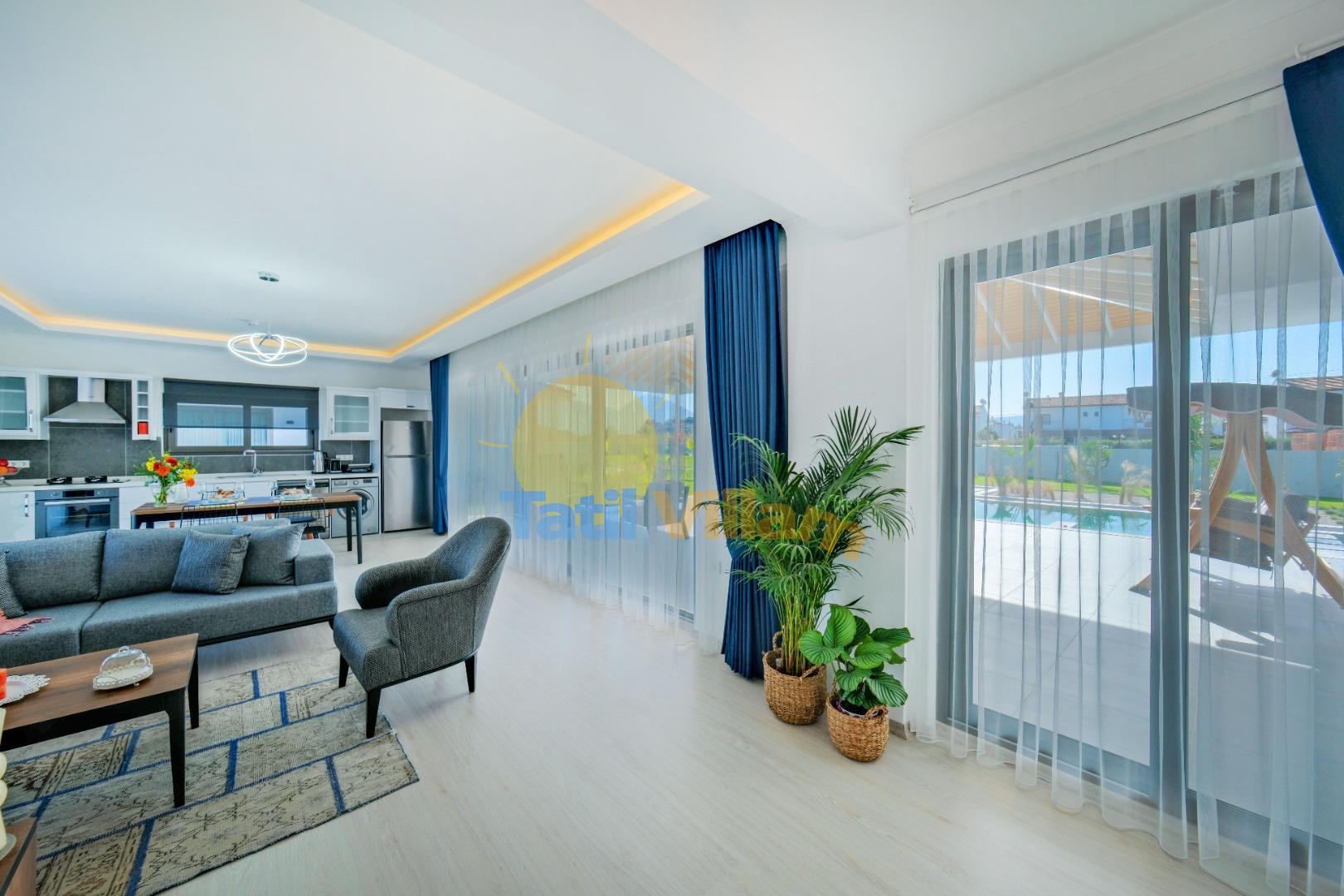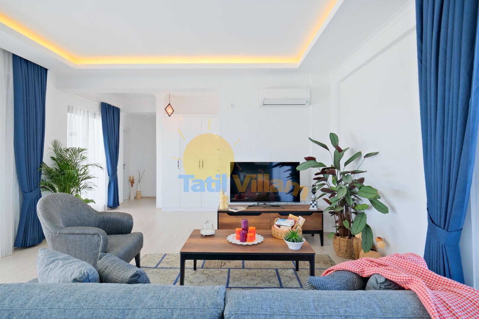 Detayları : Oturma grubu, Uydu TV, 4 Kişilik yemek masası,Klima ve Havuz terasına çıkış bulunmaktadır.
