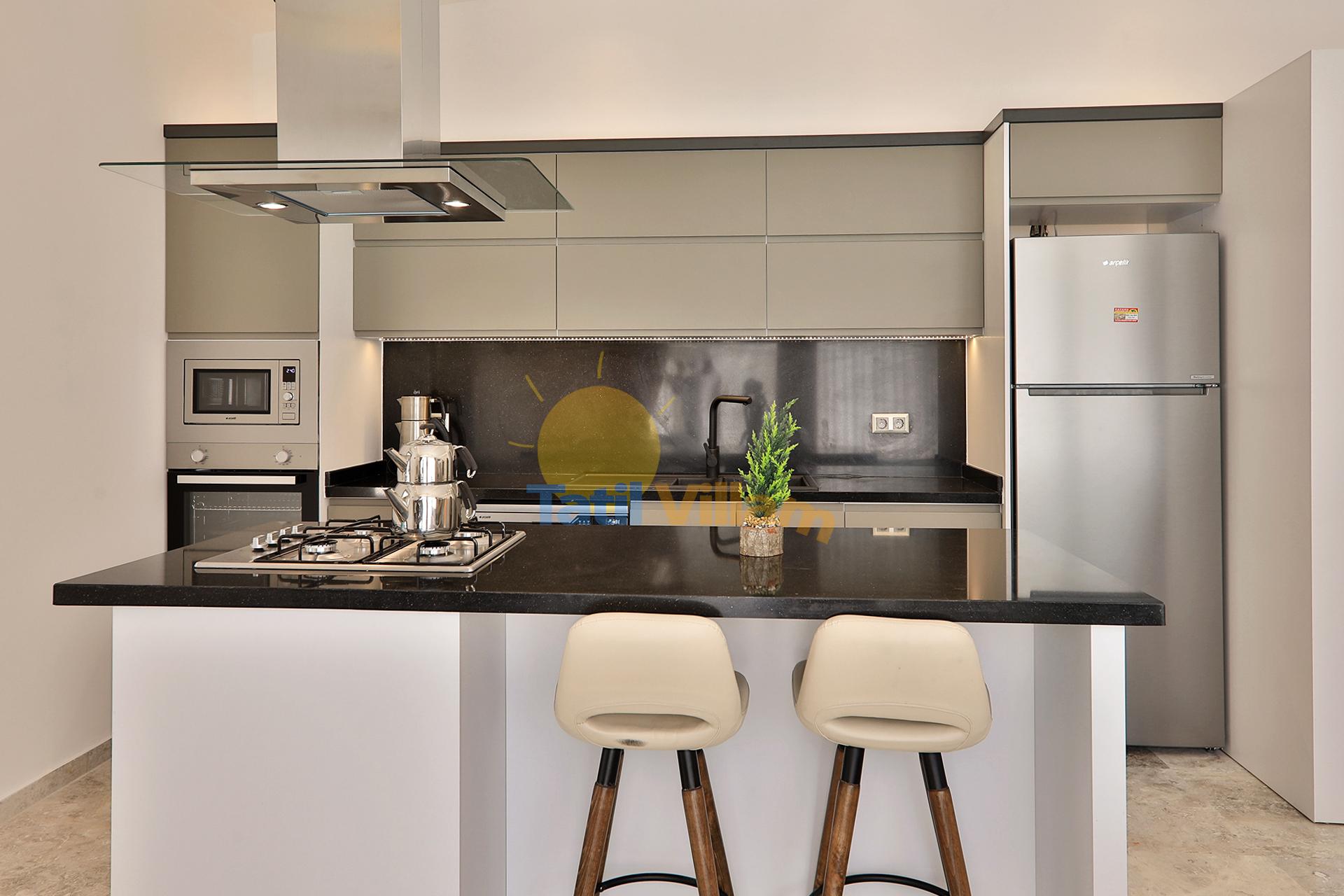 Detayları : Buzdolabı, Bulaşık makinesi, Çamaşır makinesi, Fırın, 4’lü Ocak (ankastre), Mikrodalga fırın, Elektrikli su ısıtıcı, Çaycı,Kahve makinası, 6 kişilik yemek takımı, Tava, Tencereler, Çatal bıçak vb.