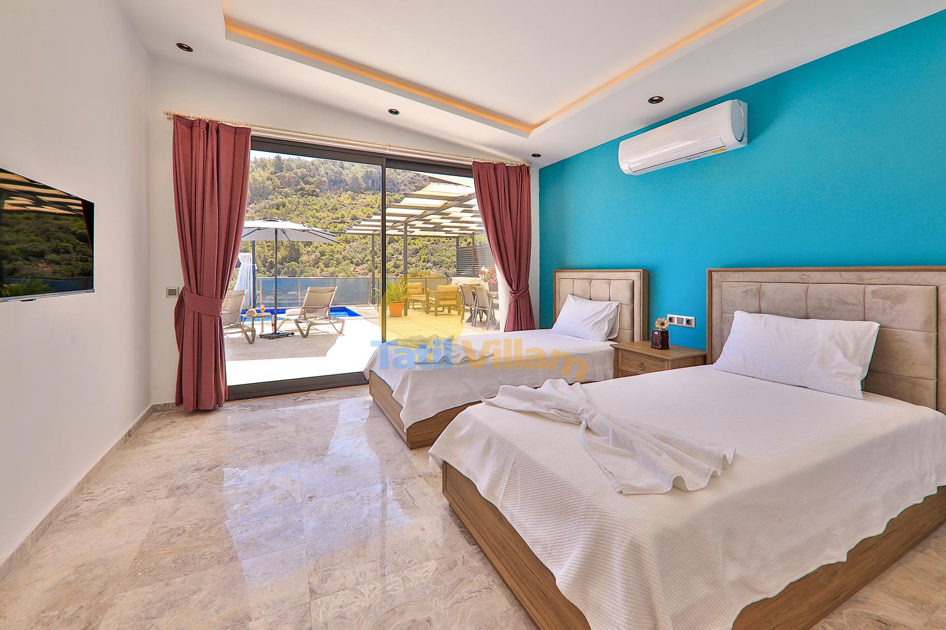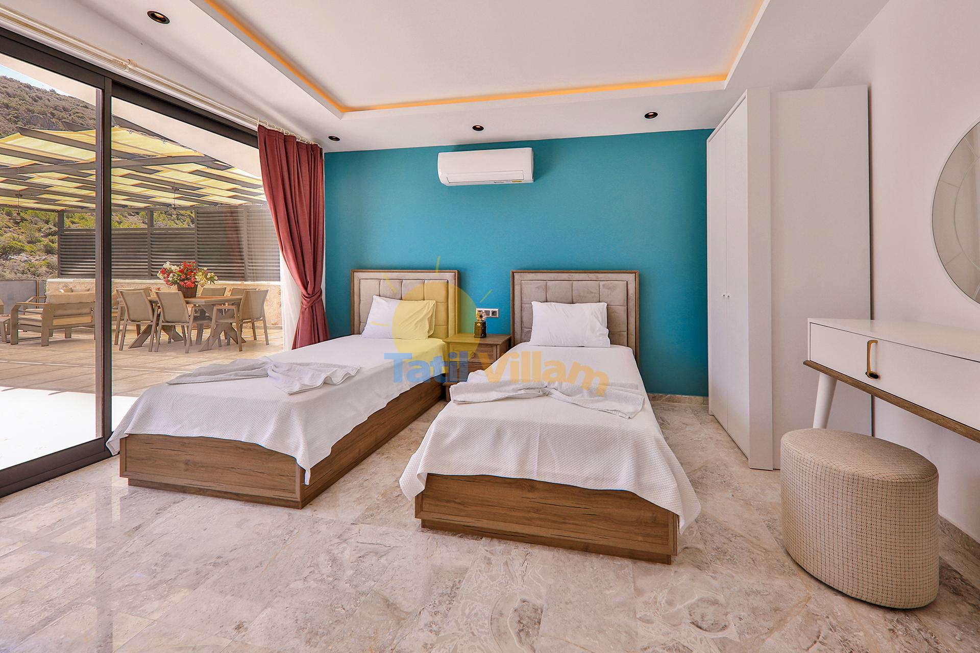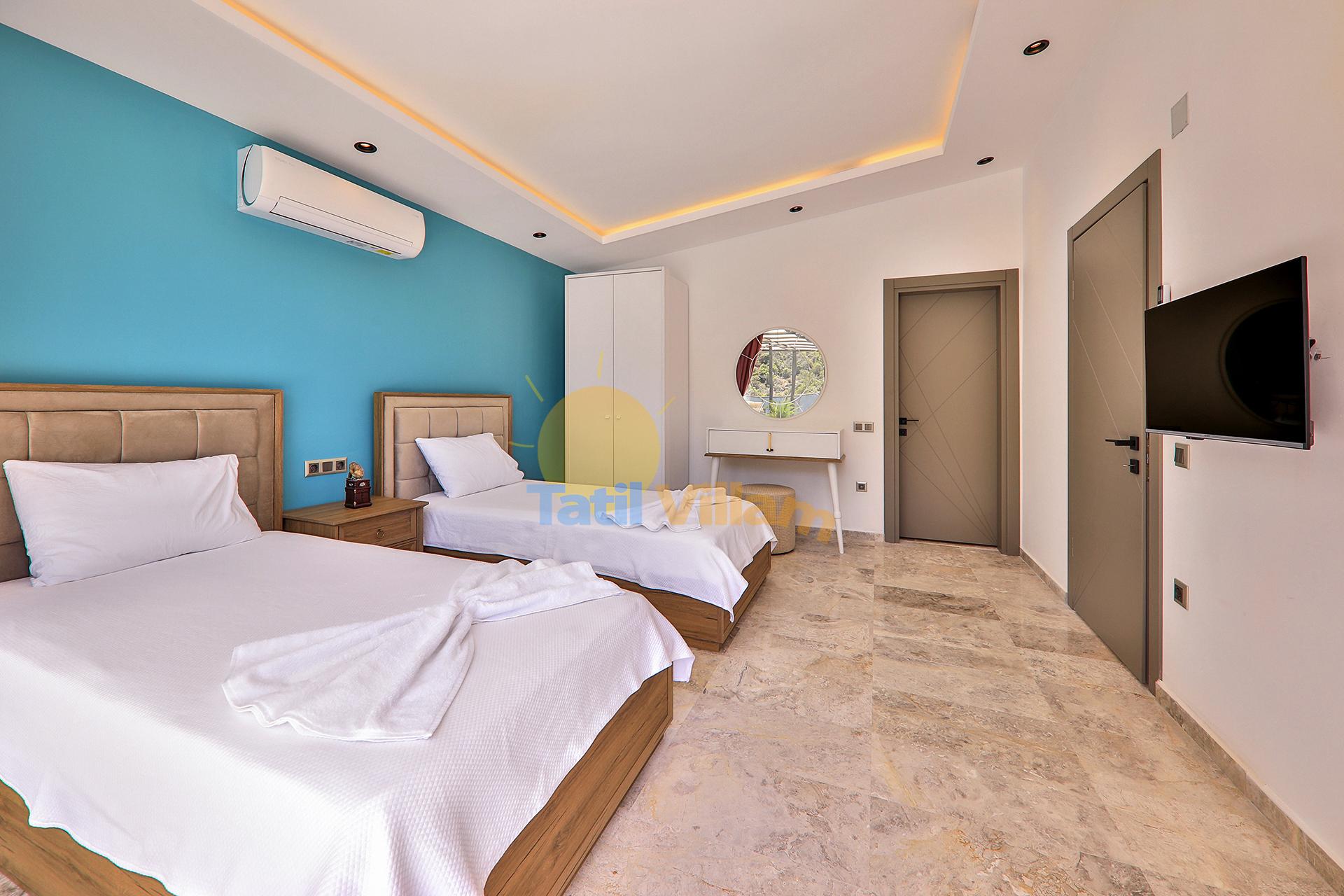 Detayları : 2 Adet tek kişilik yatak , Komidin, Klima, Makyaj masası, Elbise dolabı,TV, Banyo, Havuz terasına çıkış bulunmaktadır.