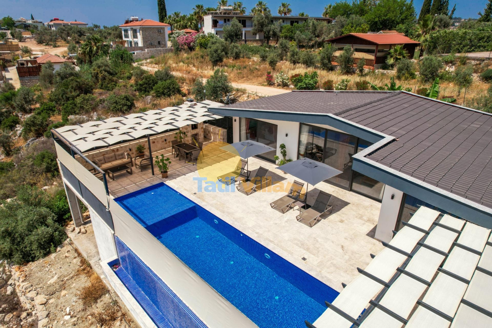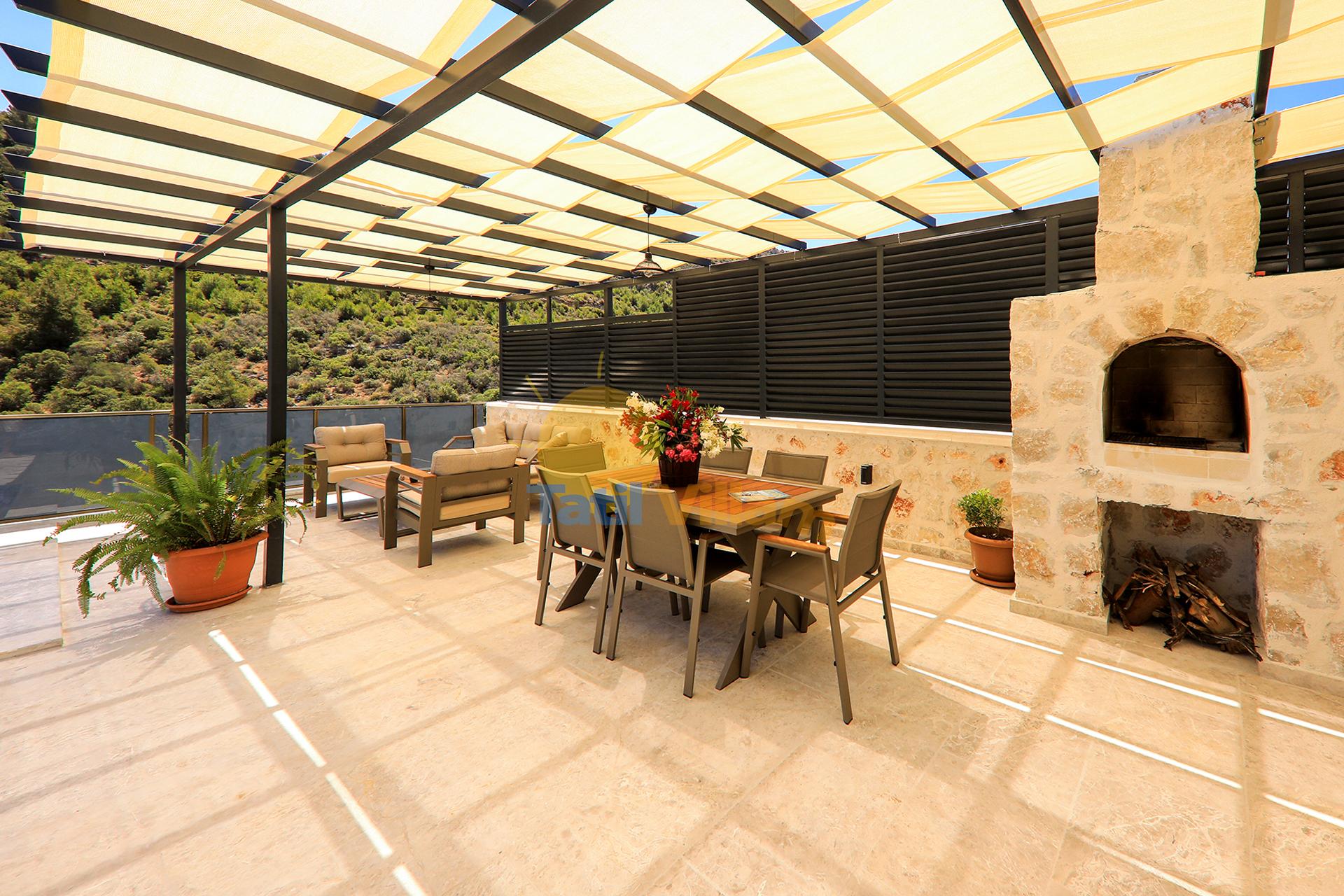 Detayları : 6 Kişilik masa ve sandalye, 4 adet şezlong, Oturma grubu,Barbekü, Özel yüzme havuzu, Güneş şemsiyesi, Salıncak ,Açık duş