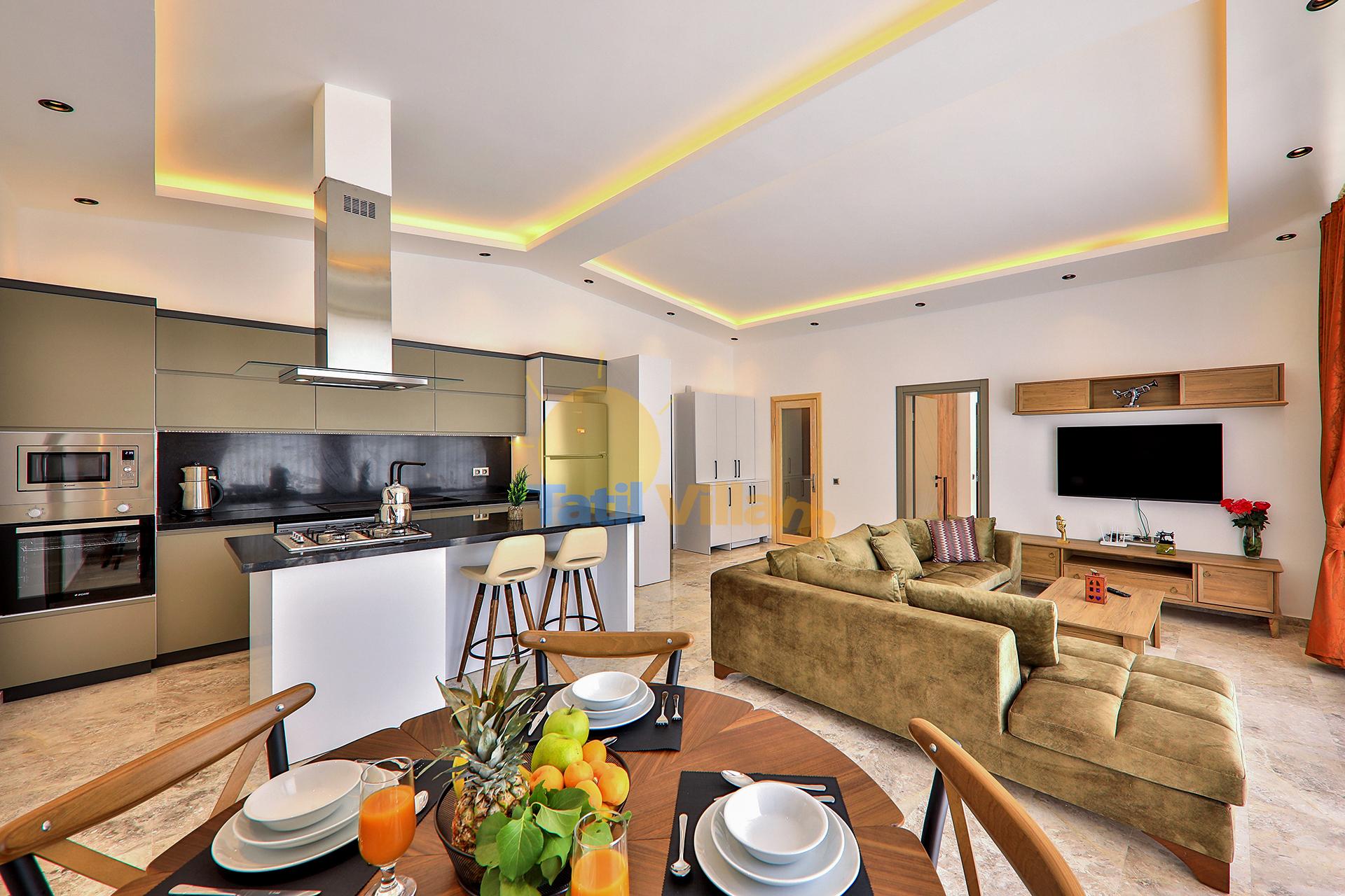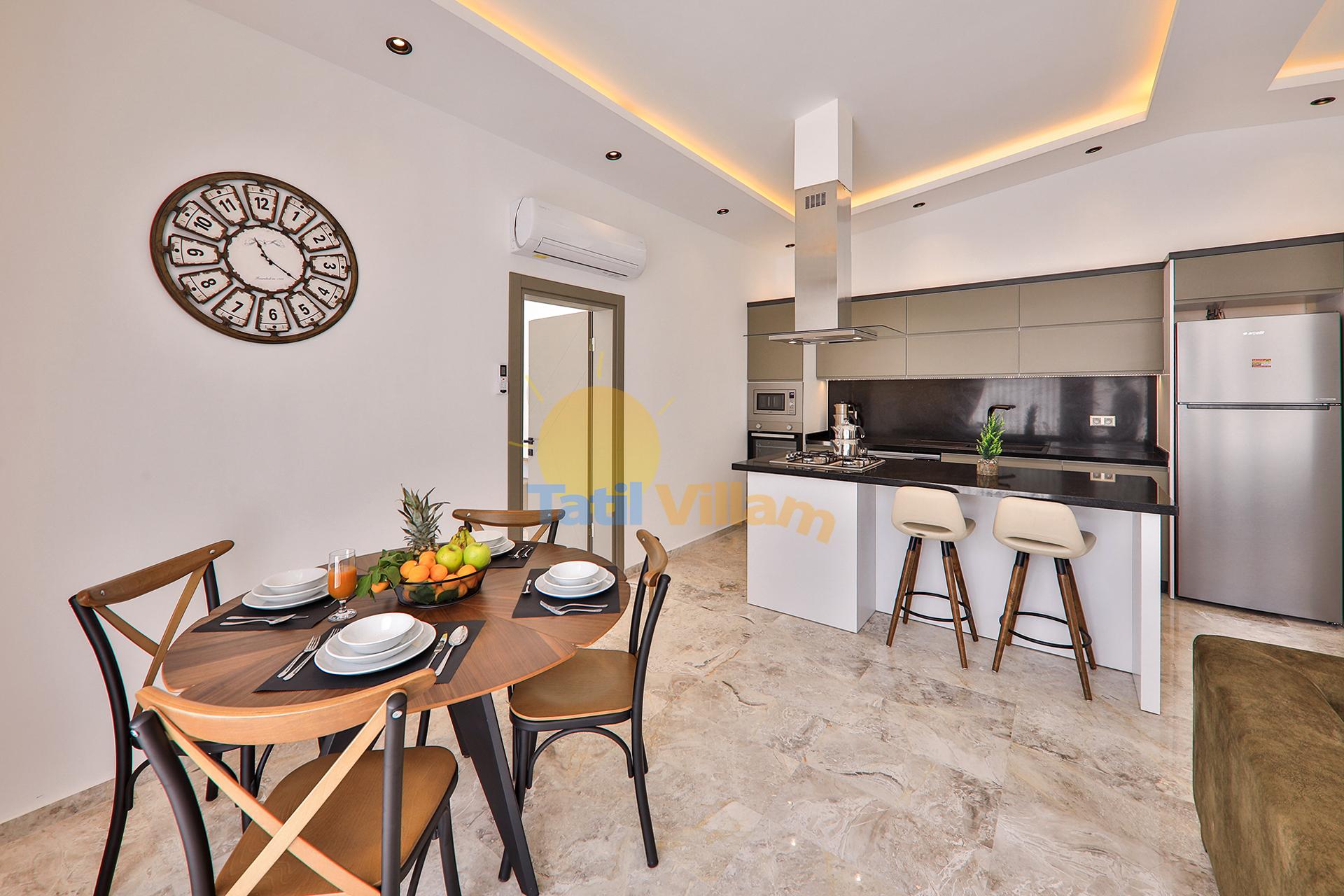 Detayları : Oturma grubu, Uydu TV (LCD), Klima , 4 kişilik yemek masası, Sauna, Mama sandalyesi, Havuz kenarına çıkış bulunmaktadır.
