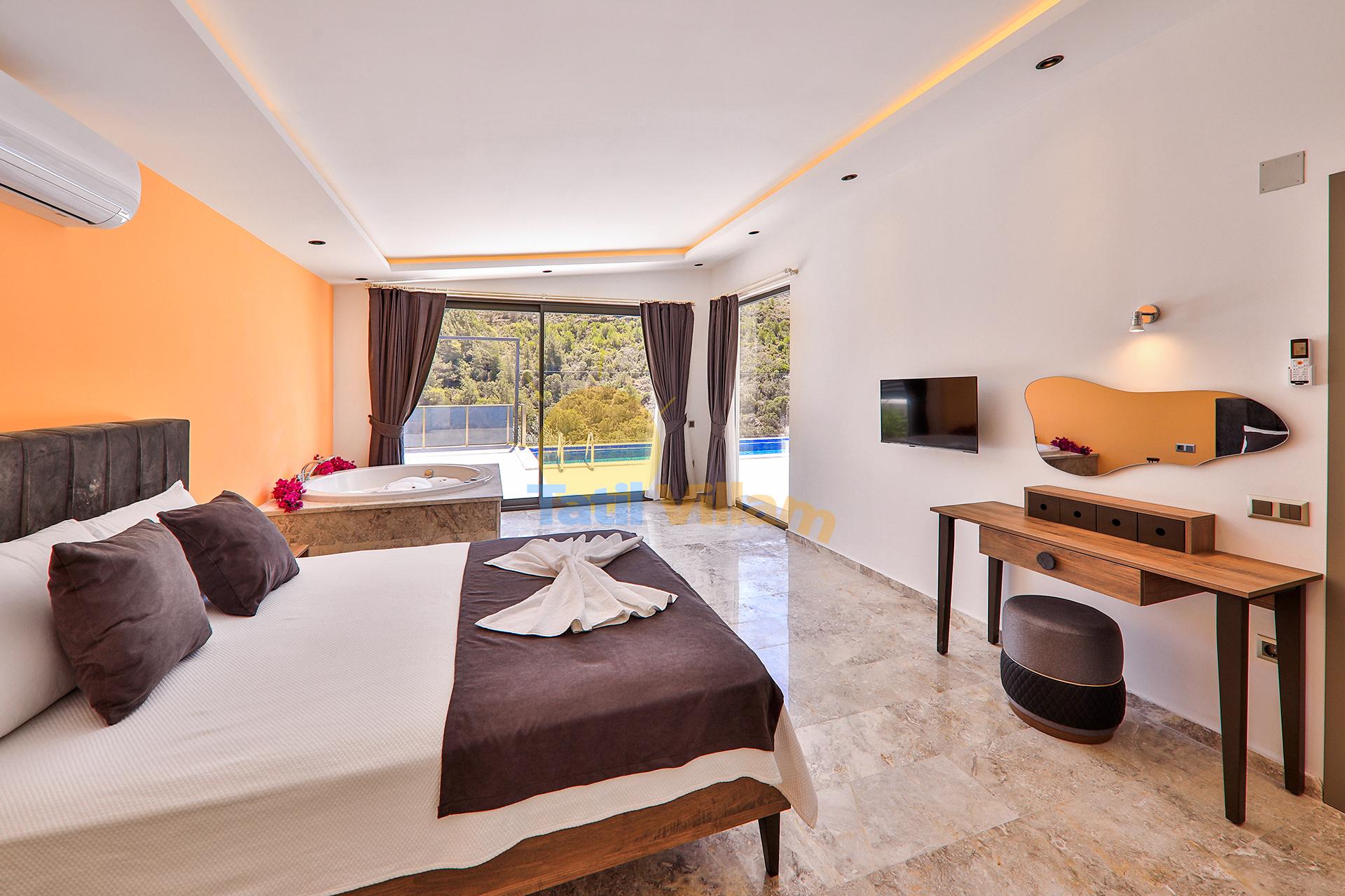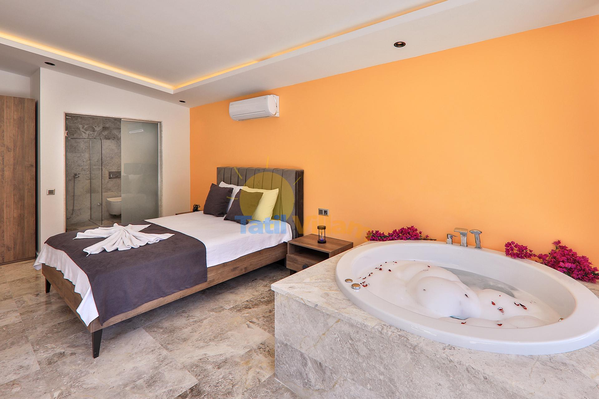 Detayları : Çift kişilik yatak, Makyaj masası, Komidin, Klima, Bebek yatağı, Elbise dolabı, TV, Banyo, Jakuzi, Havuz terasına çıkış bulunmaktadır.