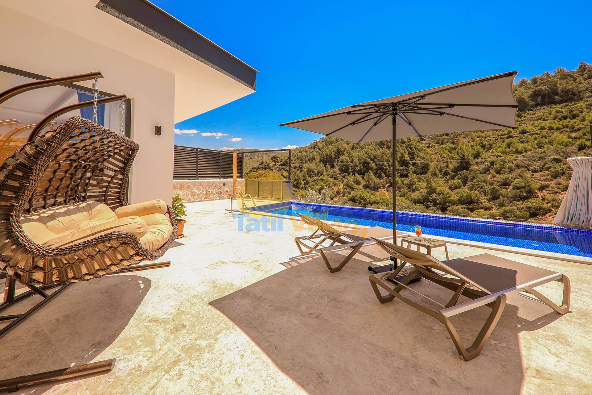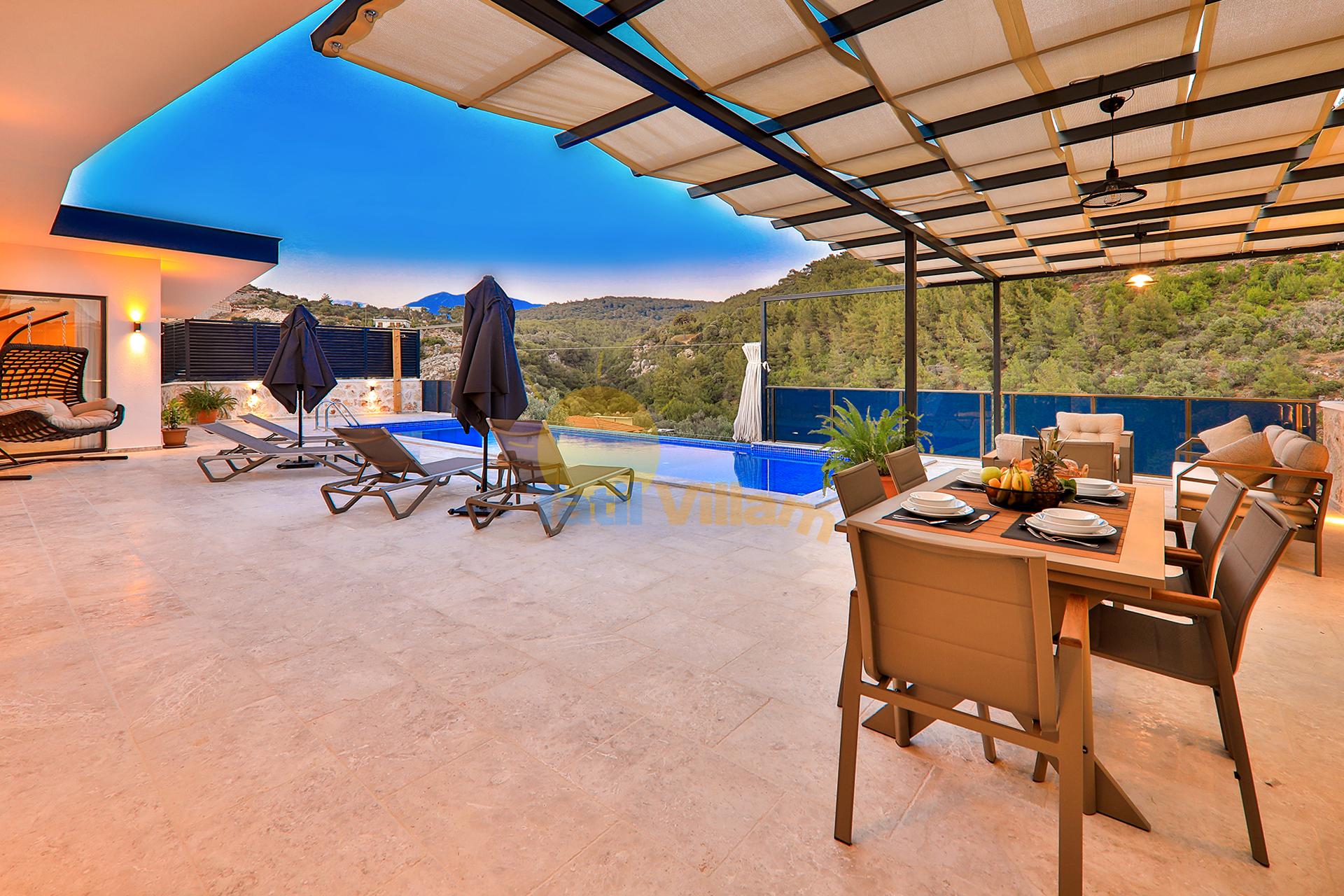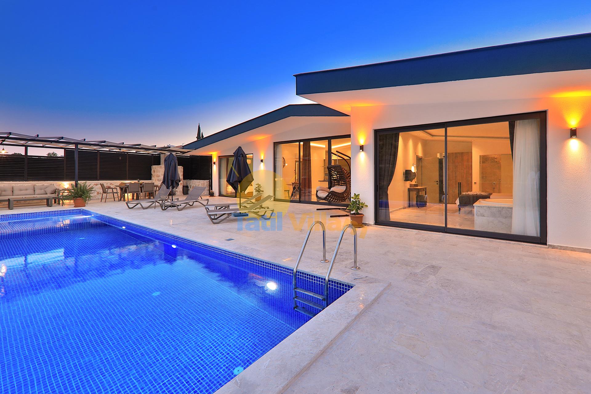 Villa Eflin , Kalkan'a bağlı Patara bölgesinde yer alan şık bir villadır. Villada toplam 2 adet suit yatak odasının yanısıra , bir adet de modern amerikan mutfak ve salon yer almaktadır. Bulunduğu konum itibariyle sessiz sakin bir bölgede yer alan villamız , huzuru ve sakinliği tatiliniz boyunca sizlere yaşatacaktır. Villamızın havuz ve havuz terasının korunaklı olması , balayı çiftleri ve muhafazakar aileler için ideal bir seçenek haline getirmektedir.