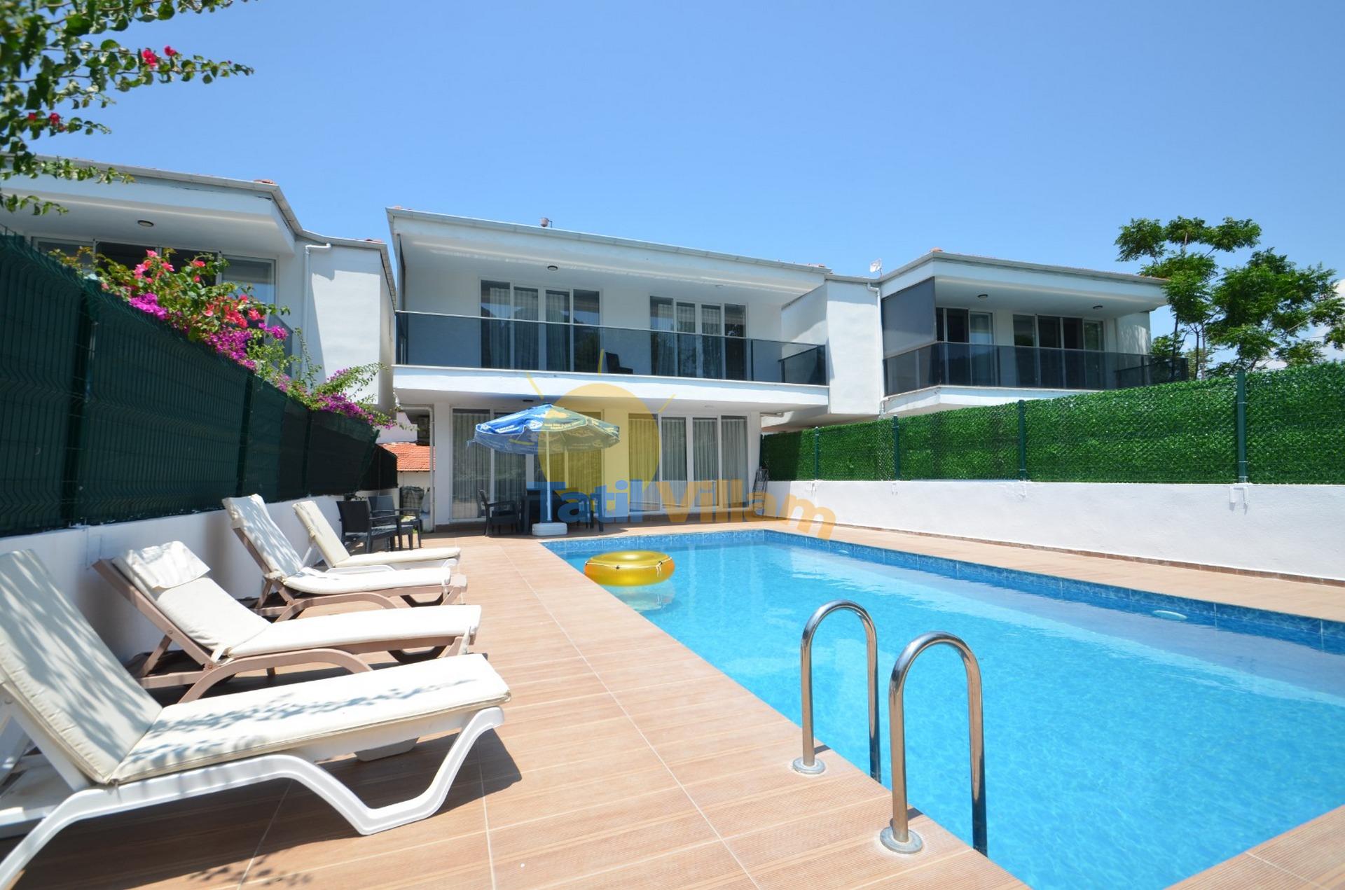 Detayları : Oturma grubu, TV, Klima, 6 kişilik yemek masası, havuz kenarına çıkış bulunmaktadır.