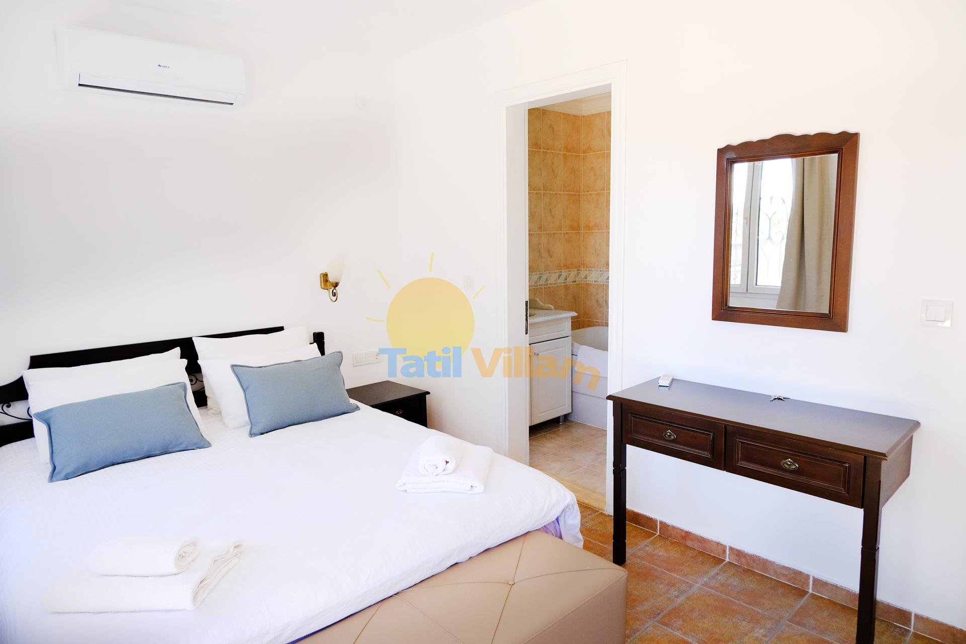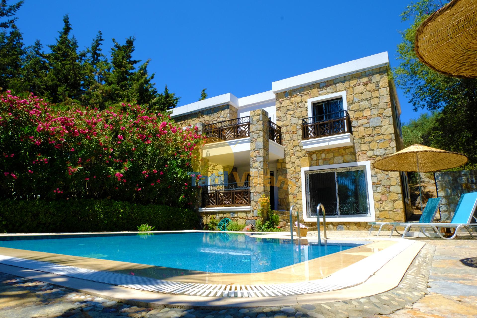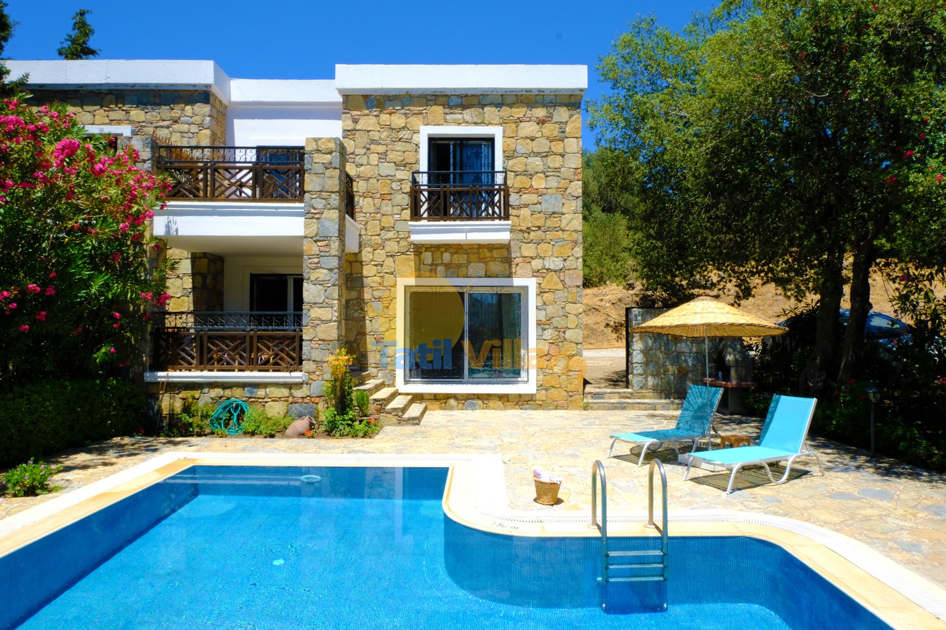 Dereköy mevkiinde bulunan villamız özel havuzu ve bahçesi ile keyifli ve konforlu bir konaklama imkanı sunar. Konumu ve anayola yakınlığı sayesinde alışveriş, restoranlar ve Bodrum’un gözde beldelerine ulaşım kolaylığı vardır. Turgutreis yolu üzerinde Gümüşlük kavşağından dönüldüğünde Dereköy yolu üzerinde yer alan villamız, yeşilliklerle kaplı büyük bir arazi içinde gürültüden uzak, doğayla iç içe, gözlerden uzak bir tatil imkanı sunar. Villalarımız ve misafirlerimizin ihtiyaçları ile ilgilenmek üzere saha görevlisi bulunur.