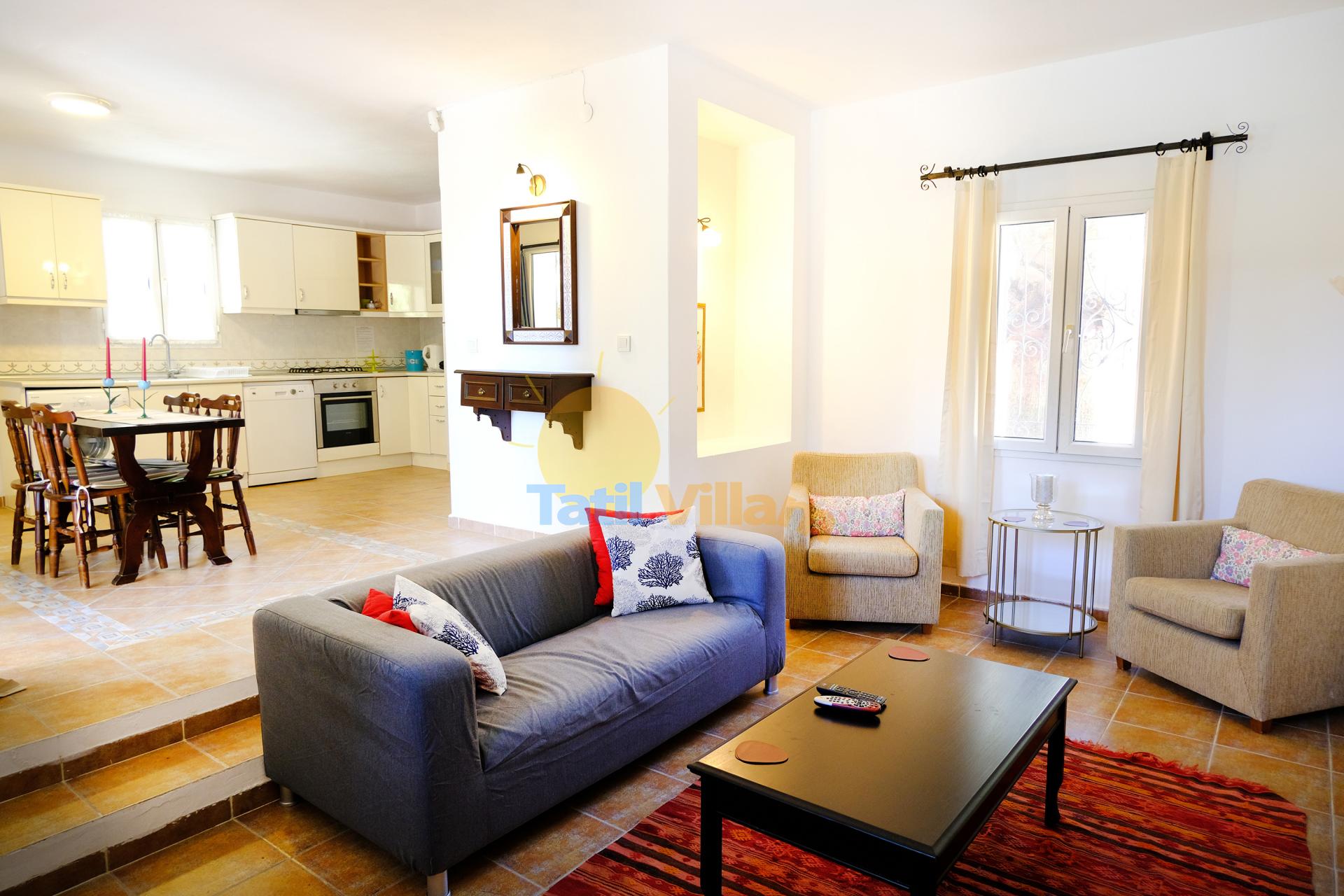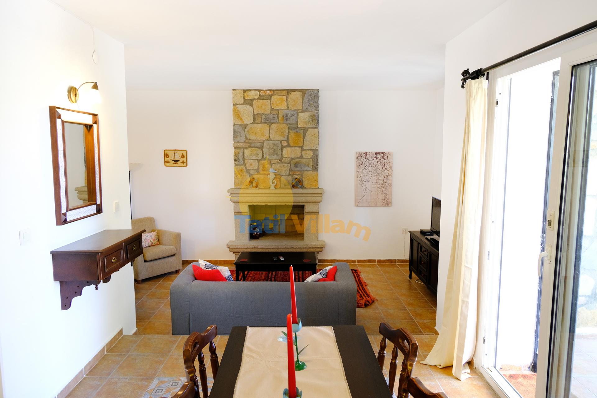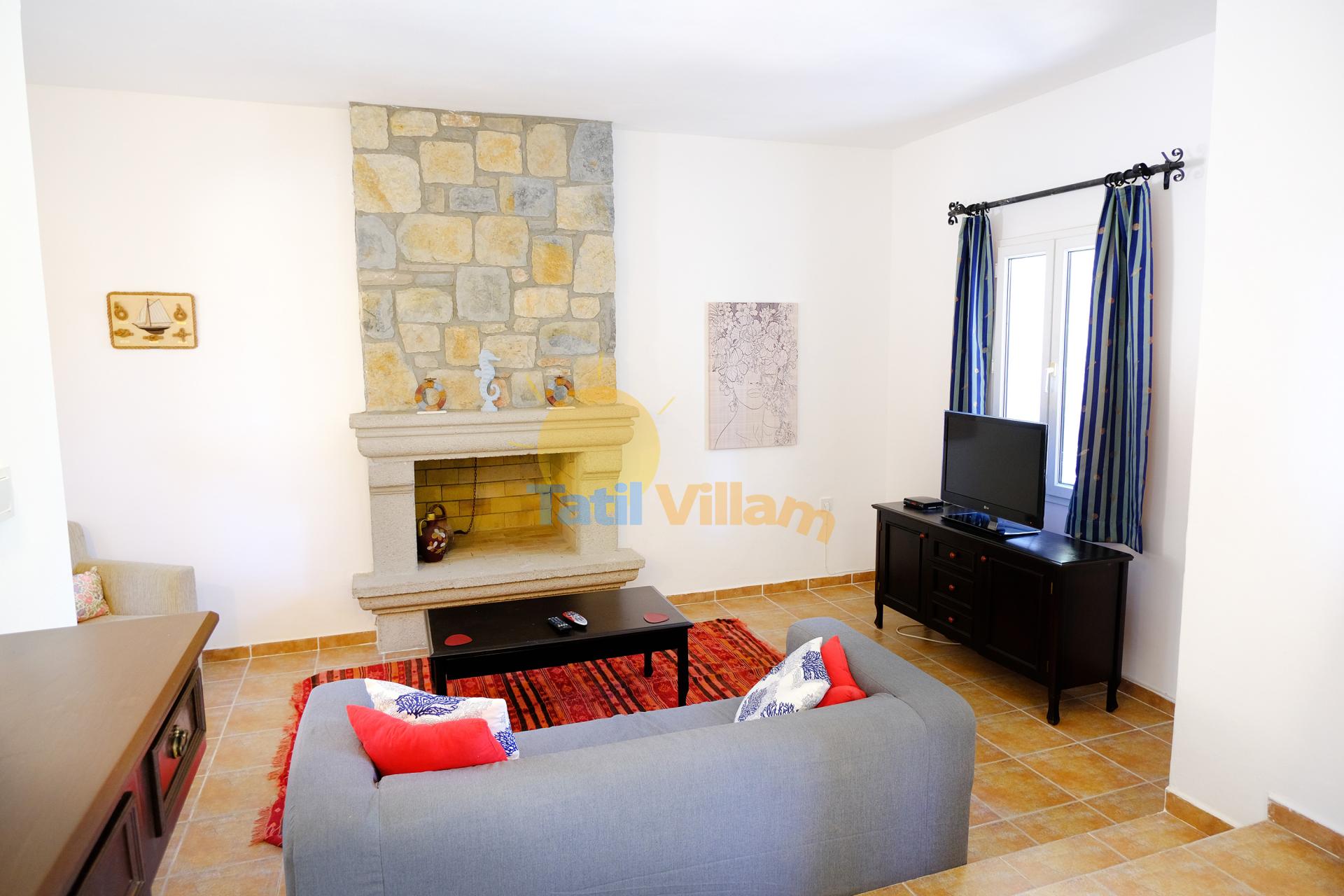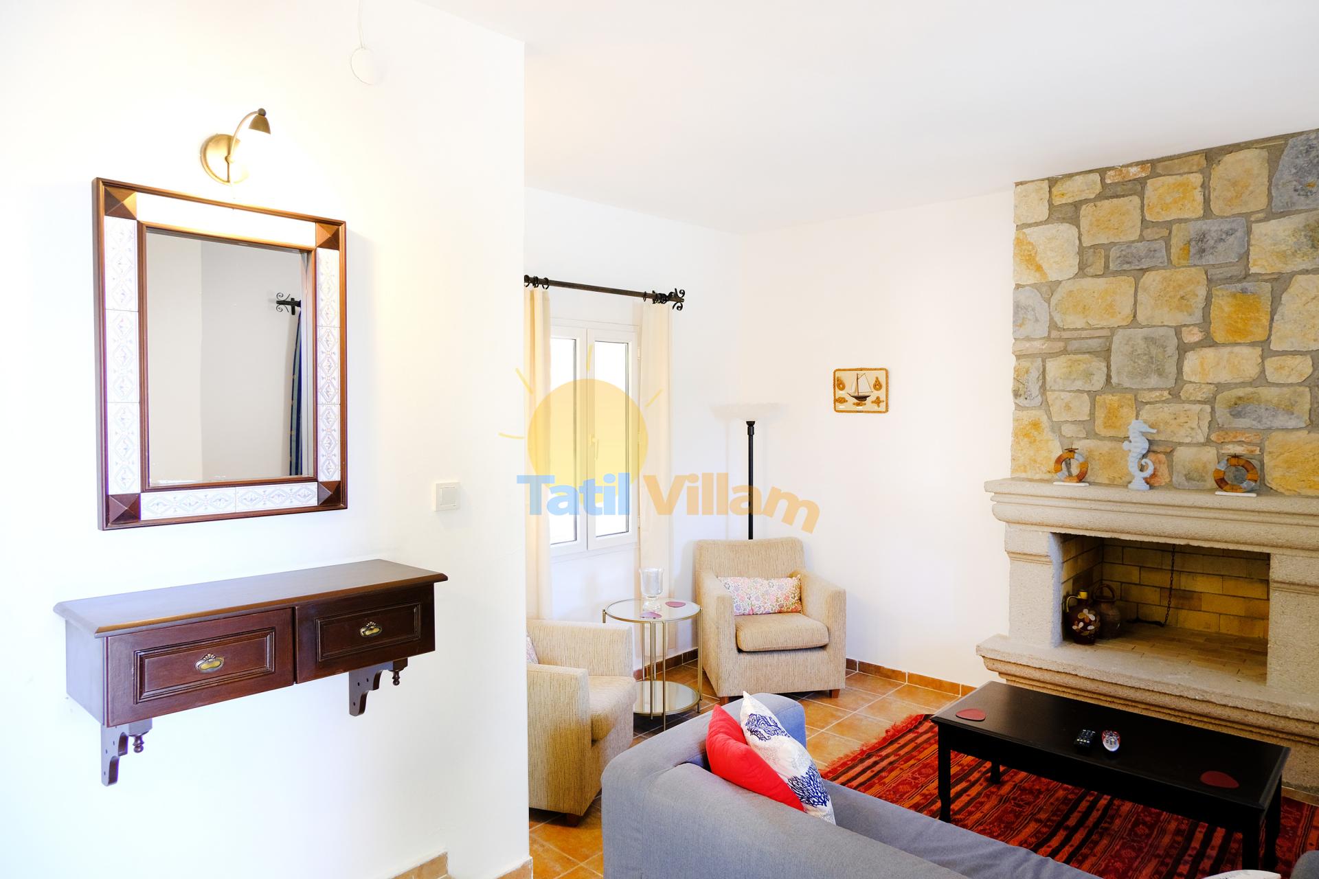 Detayları : Oturma grubu, Uydu TV (LCD) , Klima, 4 kişilik yemek masası, Şömine, Havuz kenarına çıkış, WC Lavabo bulunmaktadır.