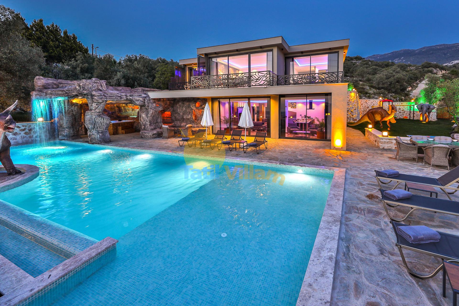 Villa Jaguar , Kalkan'ın Üzümlü bölgesinde yer alan ultralüks bir villadır. Villa 3 adet yatak odası bulunmakta olup toplamda 8 kişi konaklama kapasitesine sahiptir. Bunun dışında devasa bahçesi , çocuk oyun parkı , masa tenisi , kapalı havuzu , saunası , hamamı ve spa'sı mevcuttur. Geniş havuzu ile tatilinizi keyiflendirecek , kendinizi şehrin gürültüsünden uzaklaştıracaksınız. Bunun yanısıra zemin katta bir adet de sinema odası yer almaktadır. Bütün bu eşsiz özellikleri ile Villa Jaguar , siz değerli misafirlerini beklemektedir.