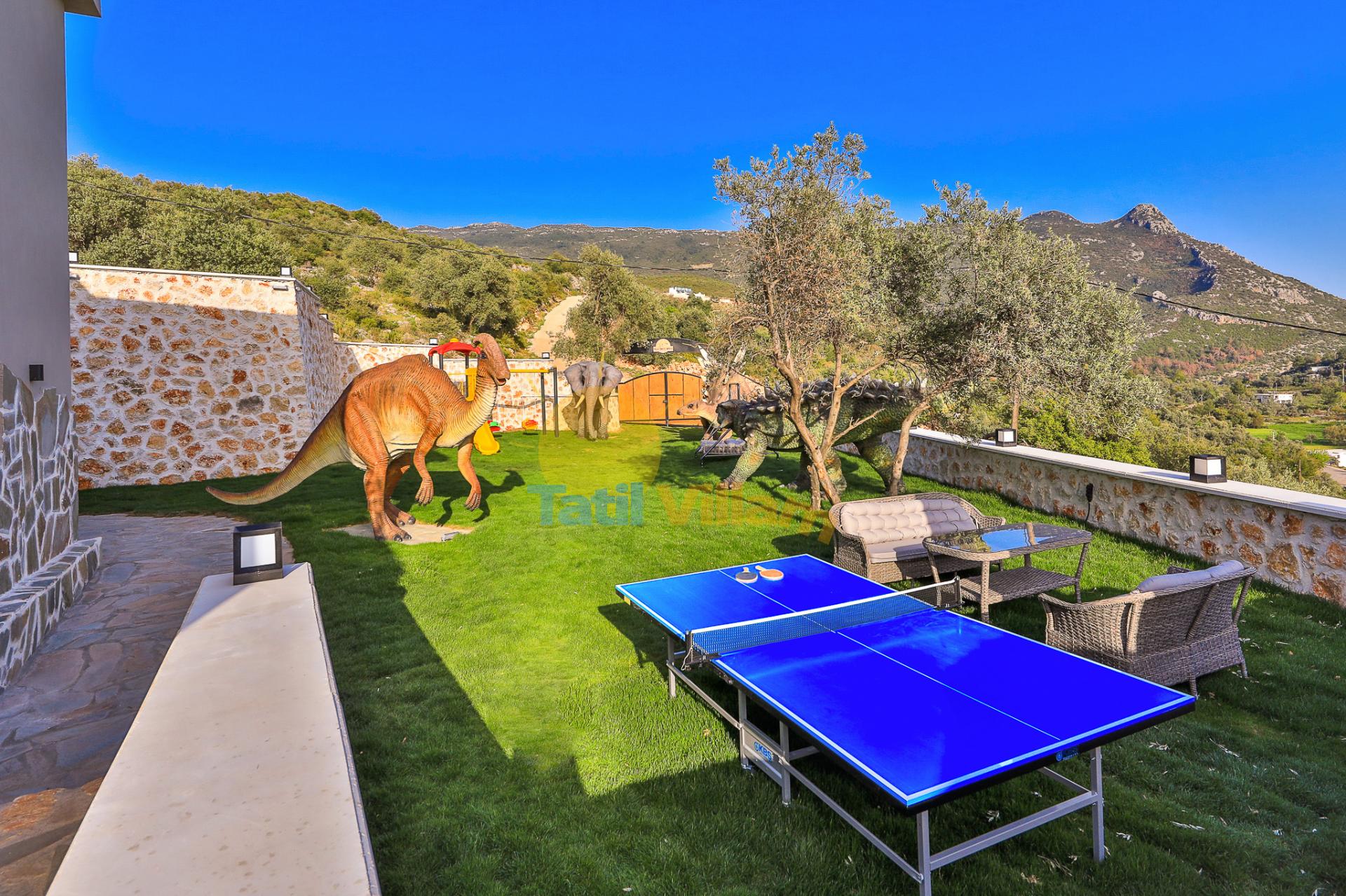 Detayları : 8 Kişilik masa ve sandalye, Özel yüzme havuzu, 8 Adet şezlong, 5 adet Güneş şemsiyesi Salıncak, Masa tenisi, Barbekü bulunmaktadır.