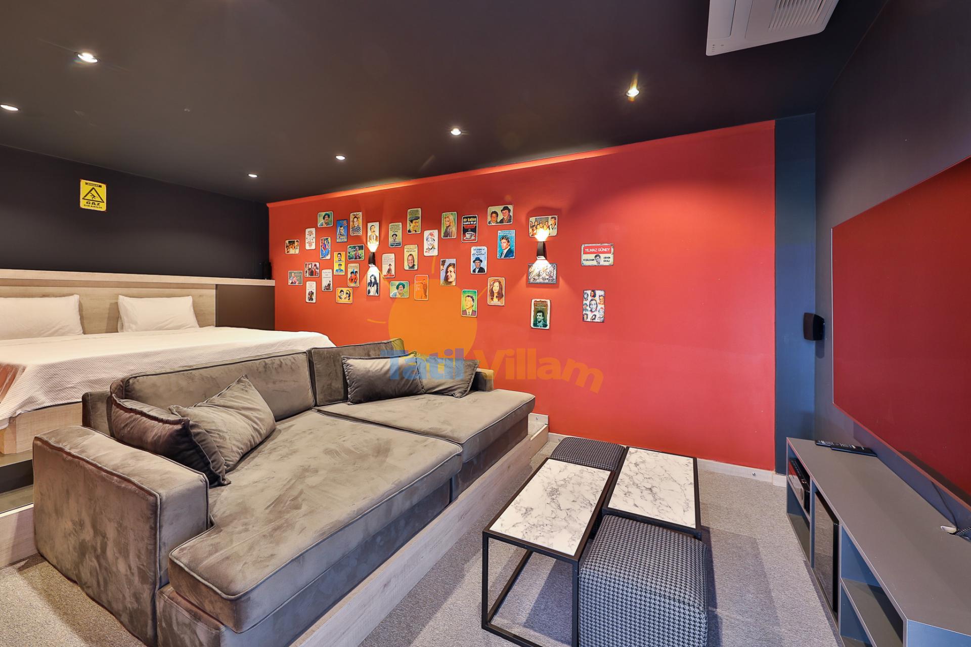 Not : Sinema odasında bulunan yatak , yatak odası olarak kullanılmamaktadır. Sadece dinlenme bölümü olarak geçmektedir. Ayrıca sinema odasında bir adet koltuk da yer almaktadır.