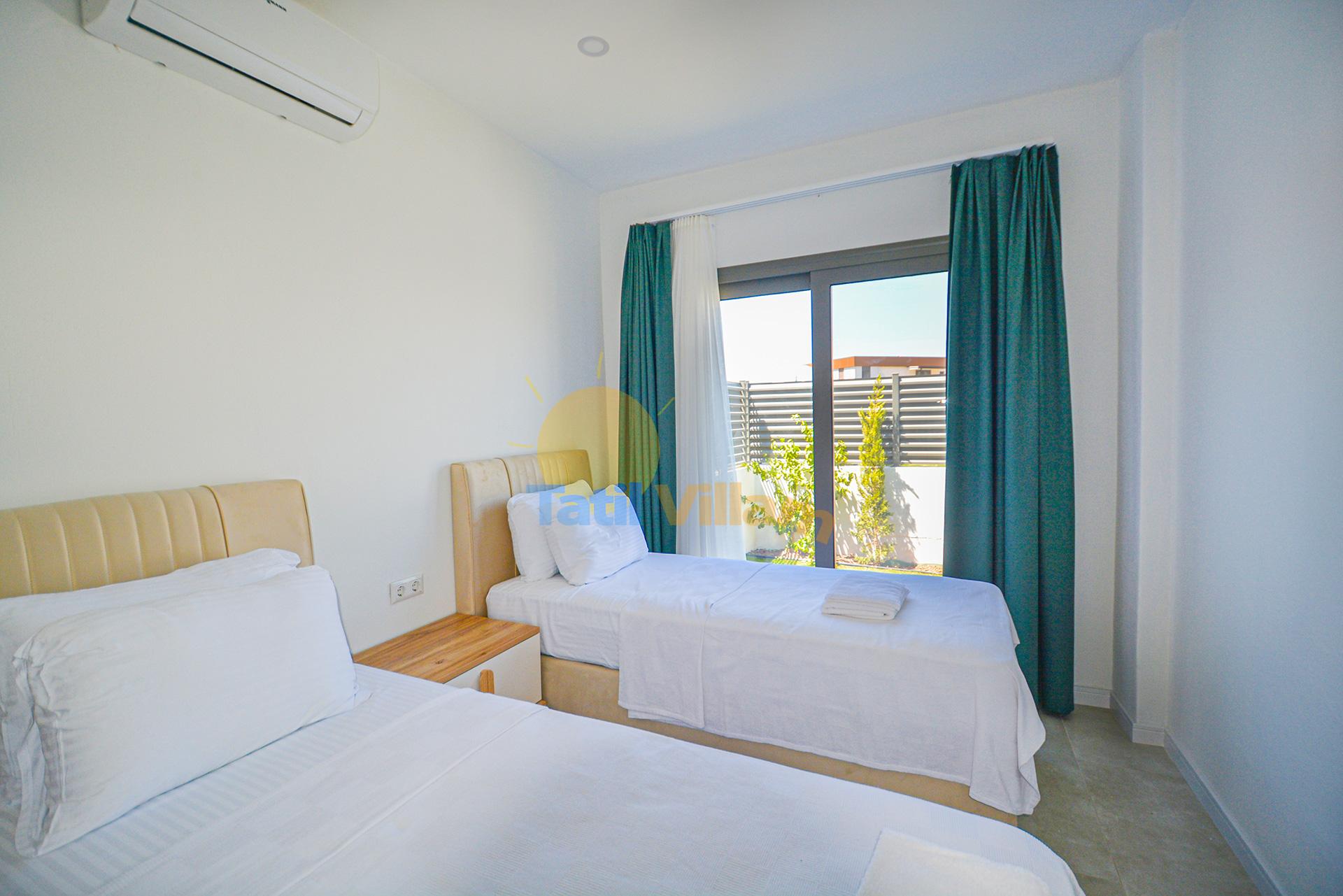 Detayları : 2 adet tek kişilik yatak, Komidin, Klima, Elbise dolabı, Banyo (Ortak Kullanım ),Havuz kenarına çıkış bulunmaktadır. Salonda da çift kişilik yatak şeklini alabilen koltuk mevcuttur.