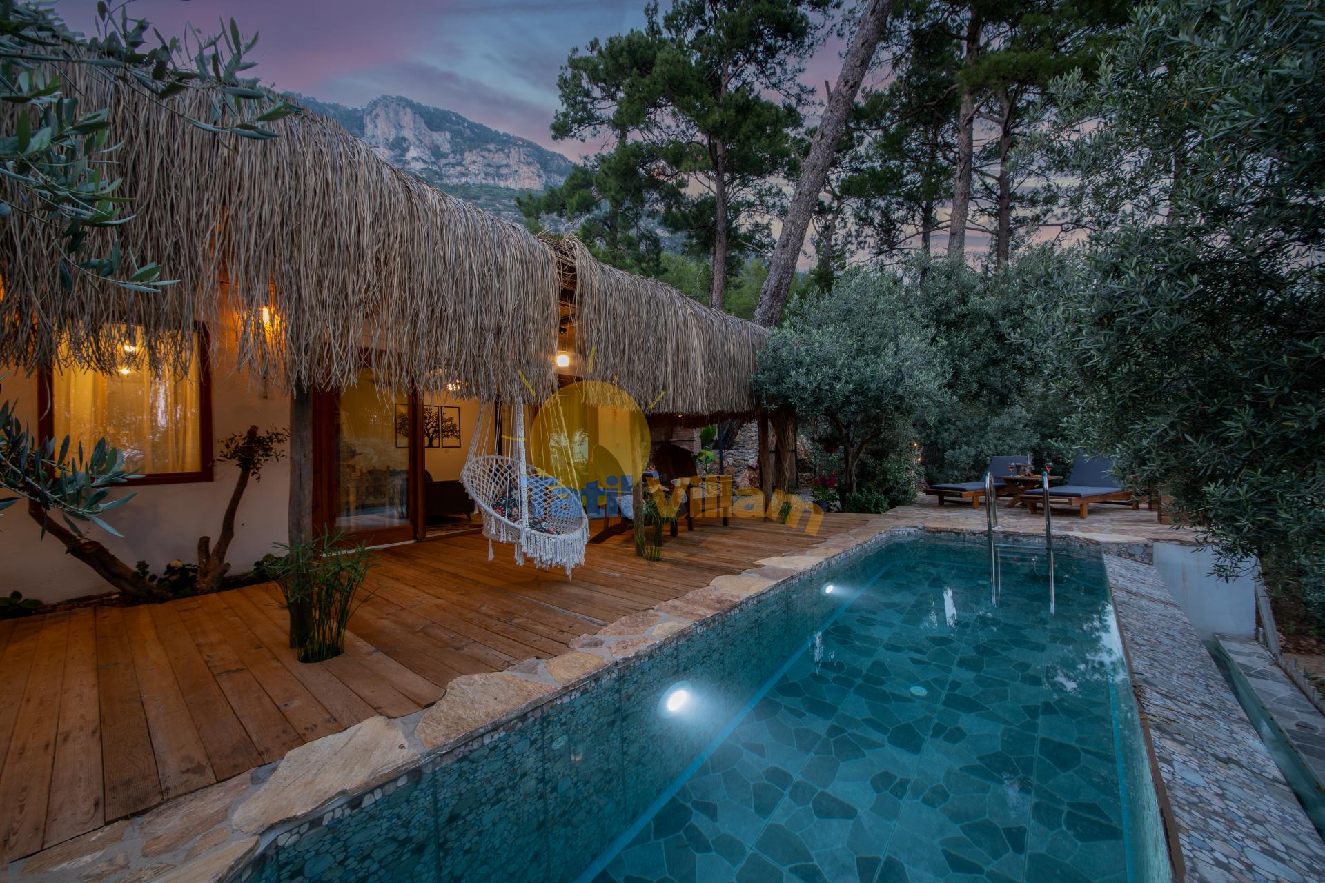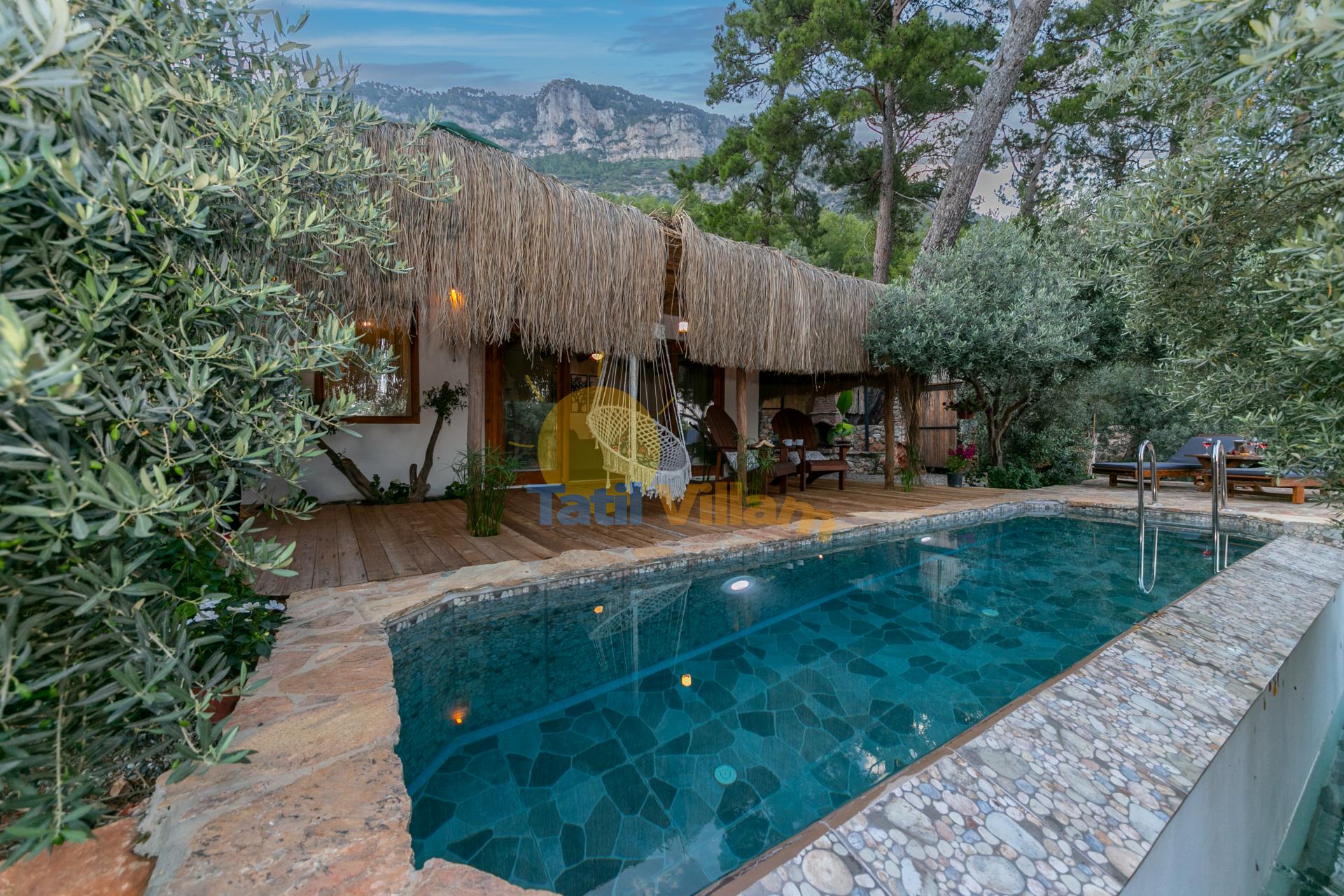 Salon : Havuz ve bahçe manzaralı (Tek Katlı Villa )