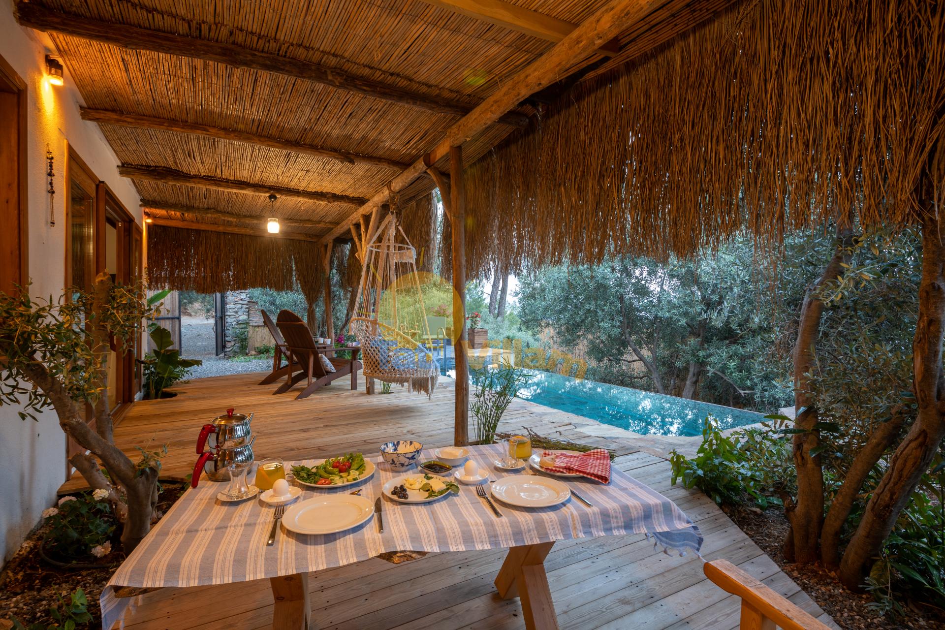 Detayları : 2 Kişilik masa ve sandalye, Bahçe Oturma Grubu, 2 Adet şezlong,Özel yüzme havuzu