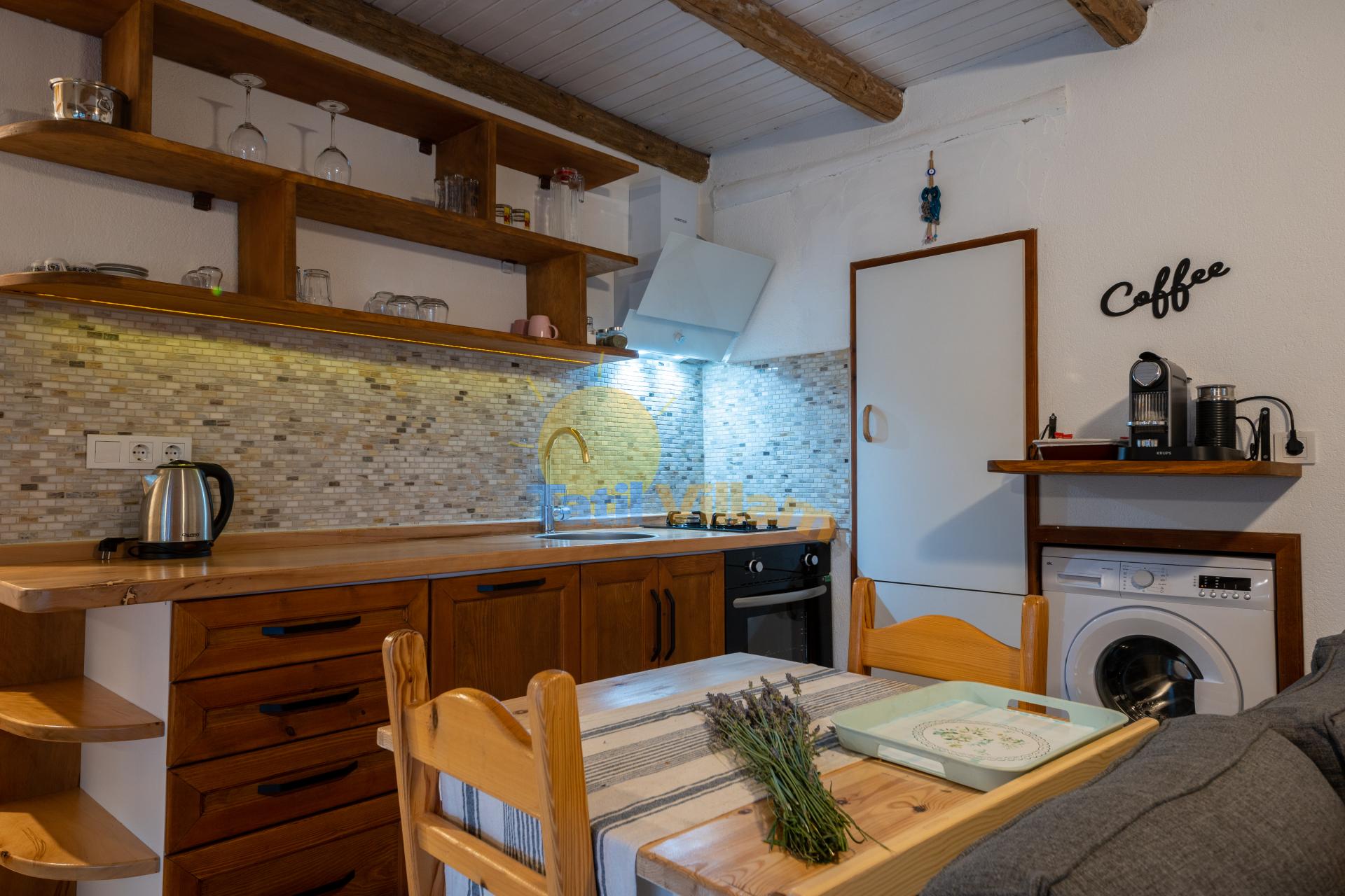 Detayları : Buz dolabı, Çamaşır makinası, Bulaşık makinesi, Fırın, ocak, Elektrikli su ısıtıcı, 2 kişilik yemek takımı, Tava, Tencereler, Çatal bıçak vb.