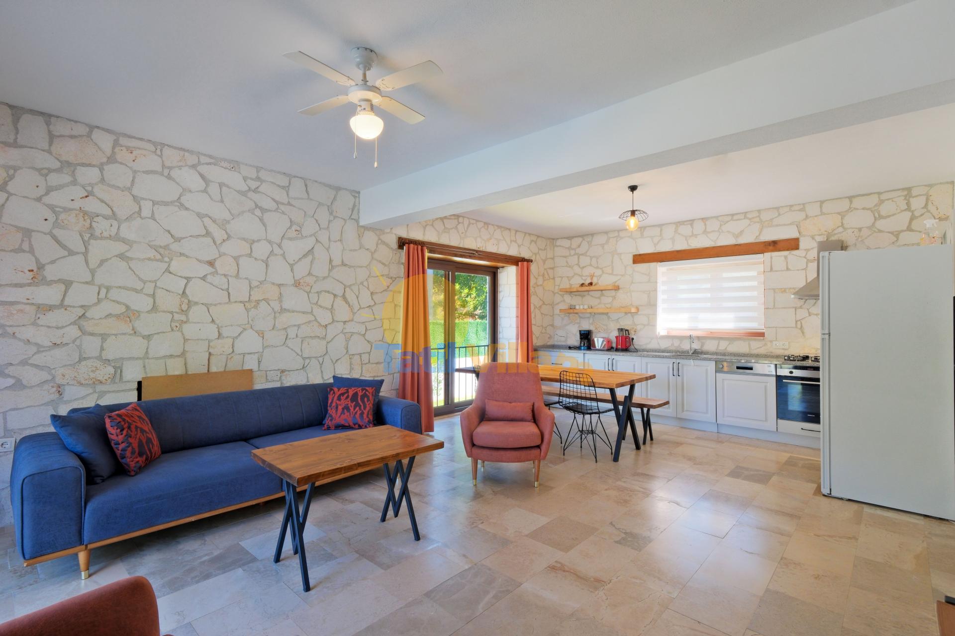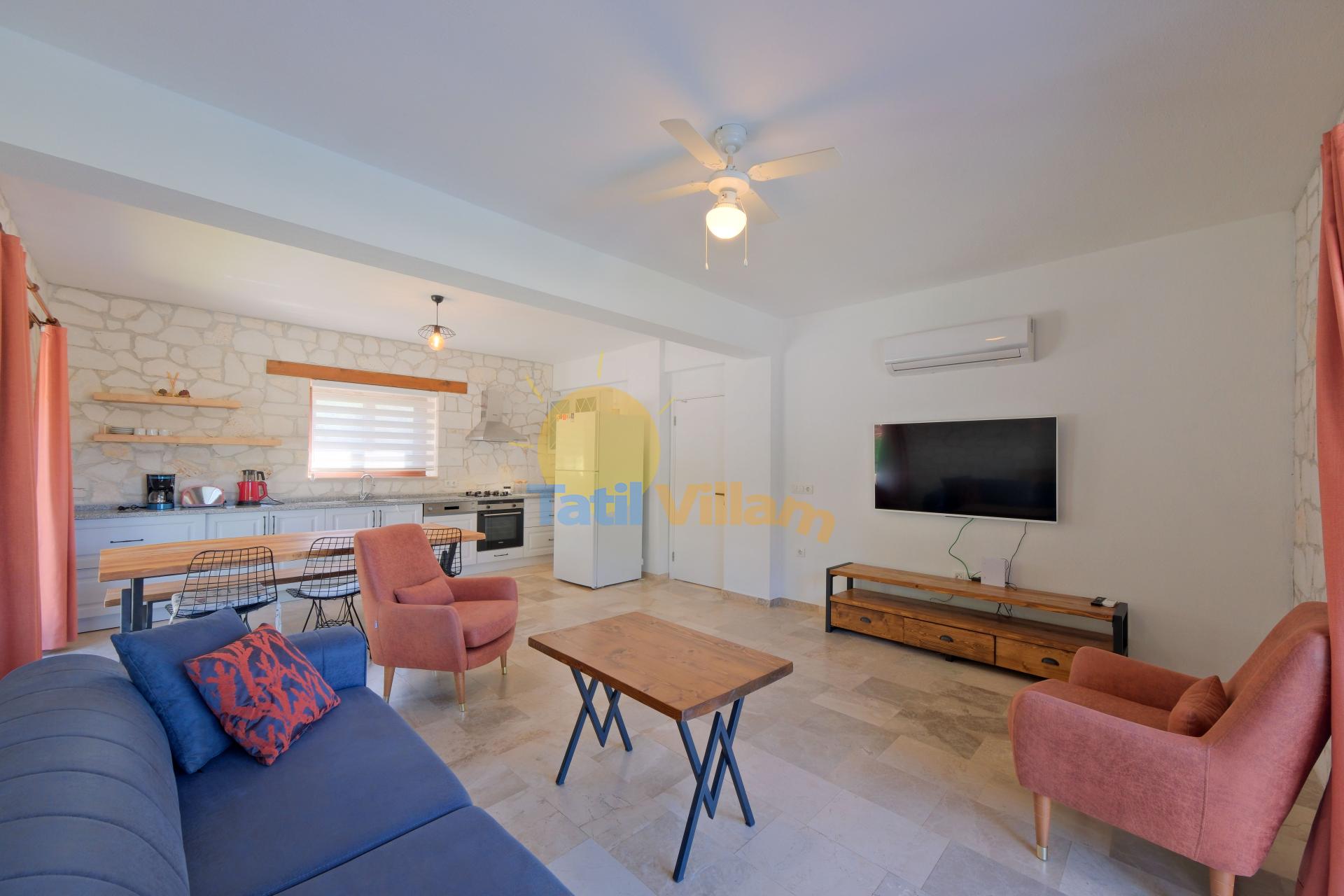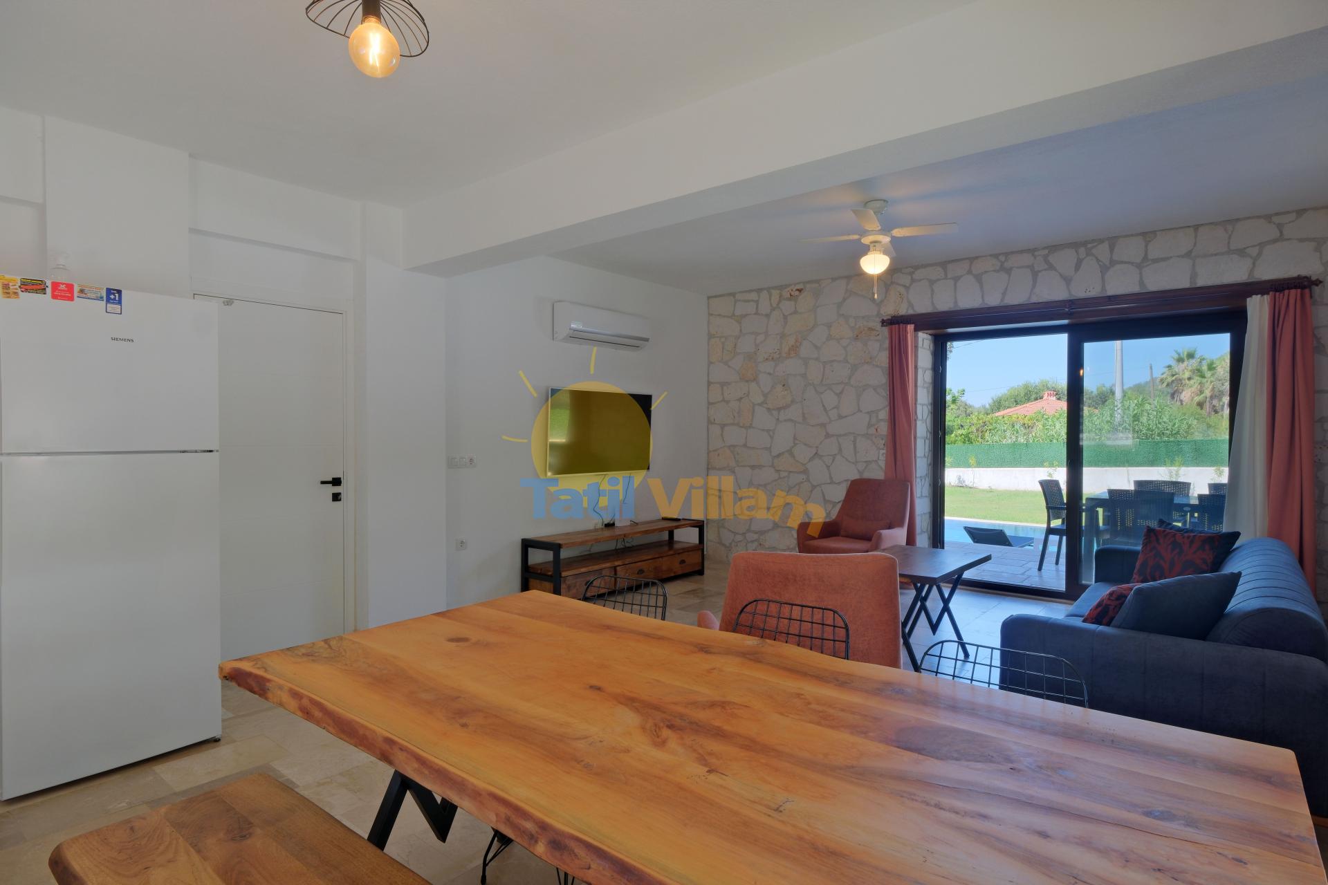 Detayları : Oturma grubu, TV, Klima, 6 kişilik yemek masası, Havuz terasına çıkış ve WC/Lavabo bulunmaktadır.