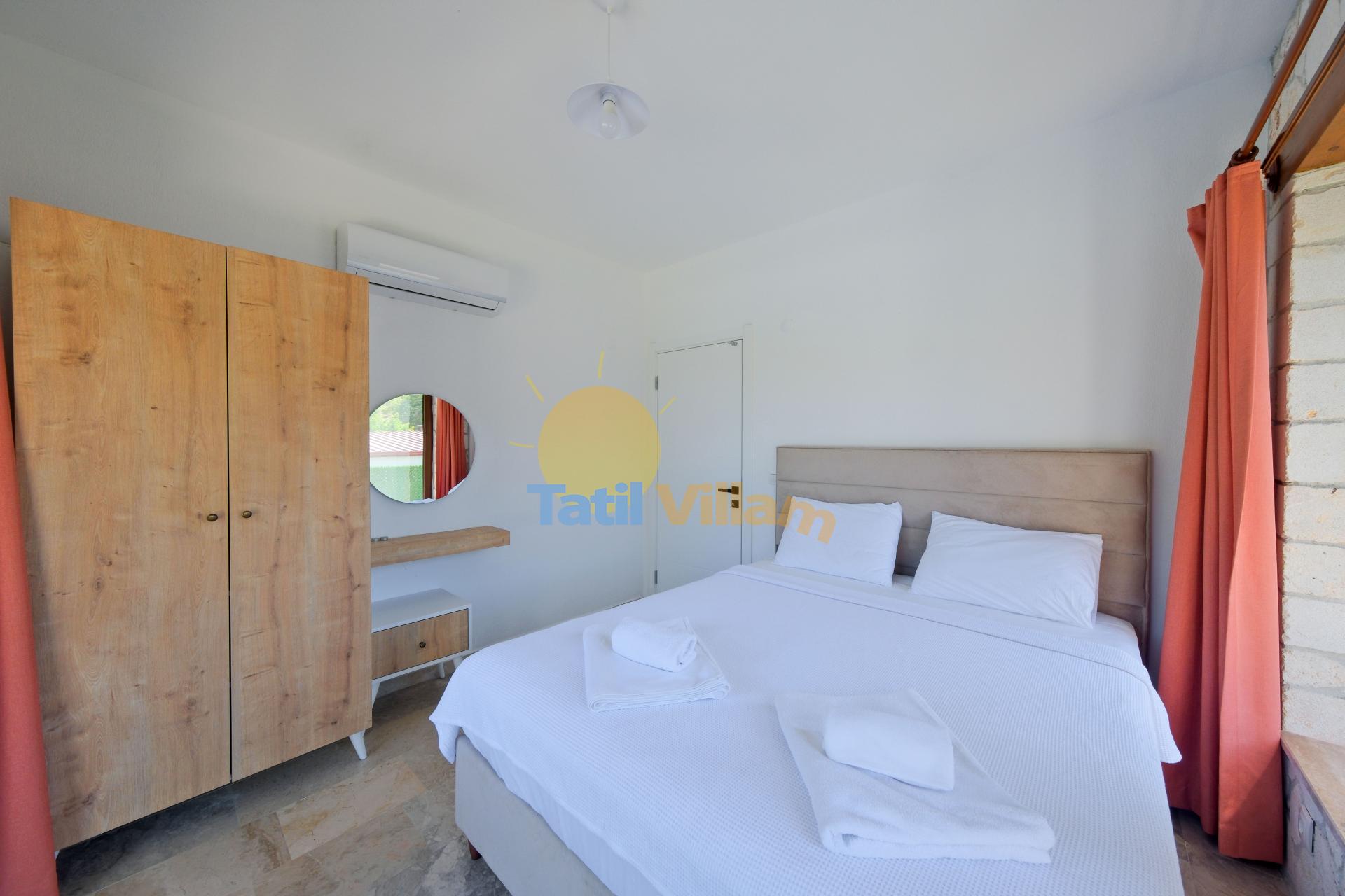 Detayları : Çift kişilik yatak, Komidin, Klima,Elbise dolabı ve Banyo