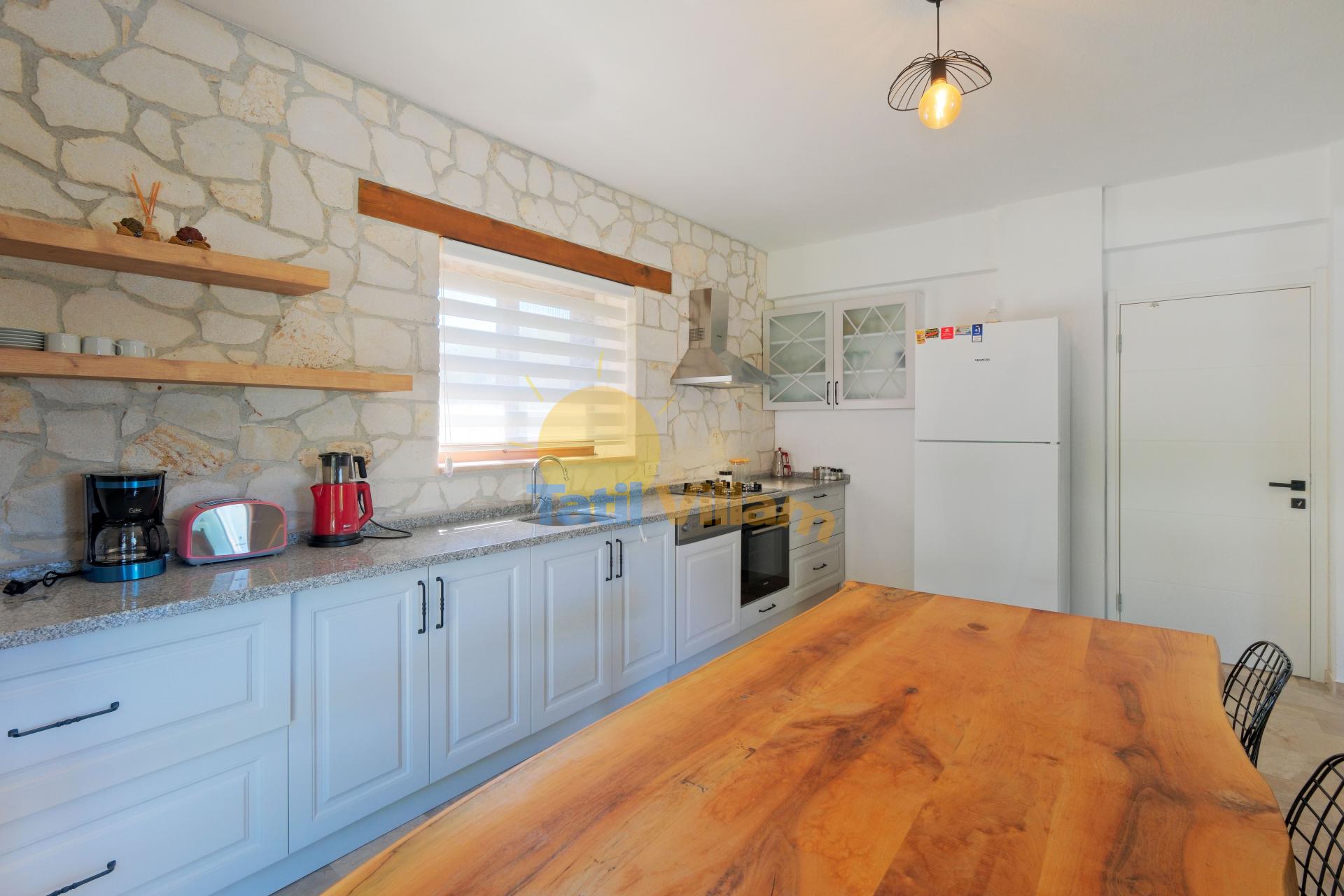 Detayları : Buz dolabı, Bulaşık makinesi, Filtre Kahve Makinesi ,Mikrodalga Fırın, Fırın, 4’lü ocak, Elektrikli su ısıtıcı, Çaycı, Tost makinesı, 8 kişilik yemek takımı, Tava, Tencereler, Çatal bıçak vb.