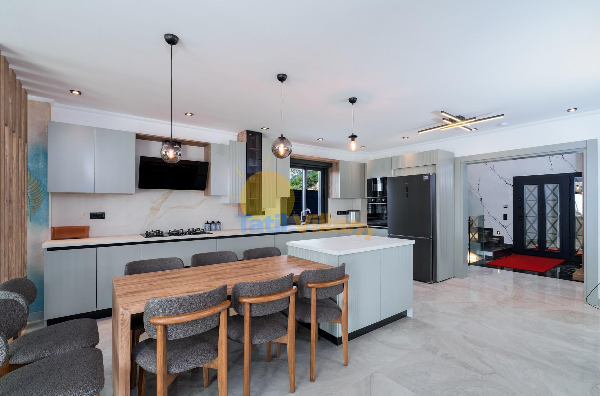 Detayları : Buzdolabı, Bulaşık makinesi, Çamaşır makinesi, Mikrodalga fırın, Elektrikli su ısıtıcısı, Fırın, 4’lü ocak, 8 kişilik yemek takımı, Tava, Tencereler, çatal, bıçak vb.