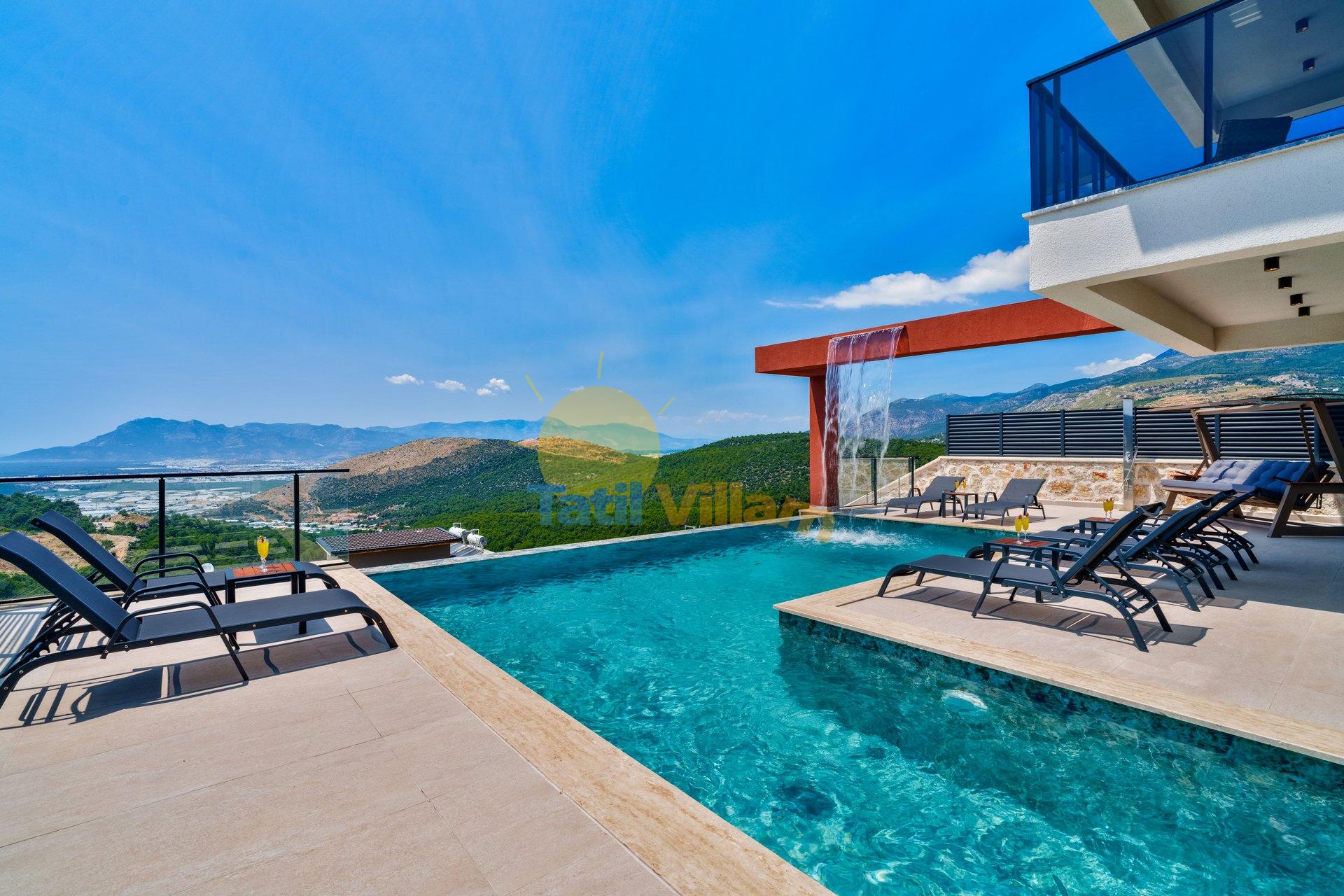 Kalkan İncebel mevkinde 8 kişilik ferah odalara ve geniş havuza sahip Villa Poyraz sizleri bekliyor. Villamızda 4 suit yatak odası, açık mutfak ve salonun yanı sıra güneşlenebileceğiniz bir havuz terası, jakuzi , hamam , sauna , kapalı ısıtmalı havuz, sinema salonu ve spor odası ile yılın tüm yorgunluğunu atabileceğiniz bir havuz nasılda davetkar gözüküyor. Siz misafirlerimizin eşsiz bir tatil geçirmesi için bütün detaylar düşünülmüş ve incelikle hazırlanmıştır, sakin konumuyla aileniz ve arkadaş gruplarınızla tercih edebilirsiniz.