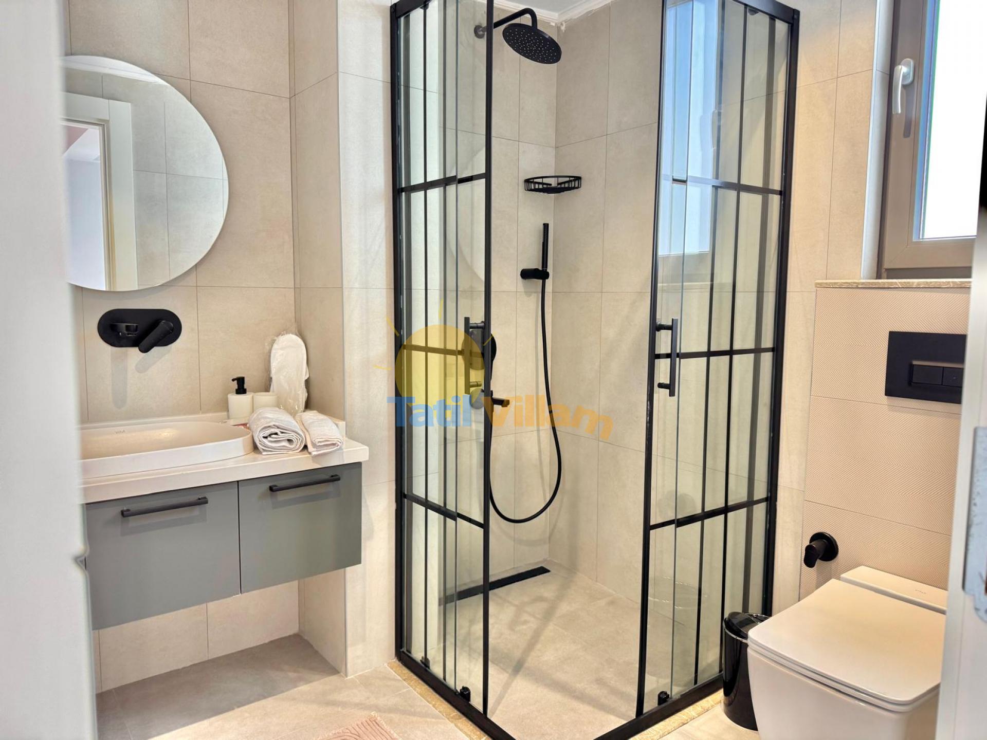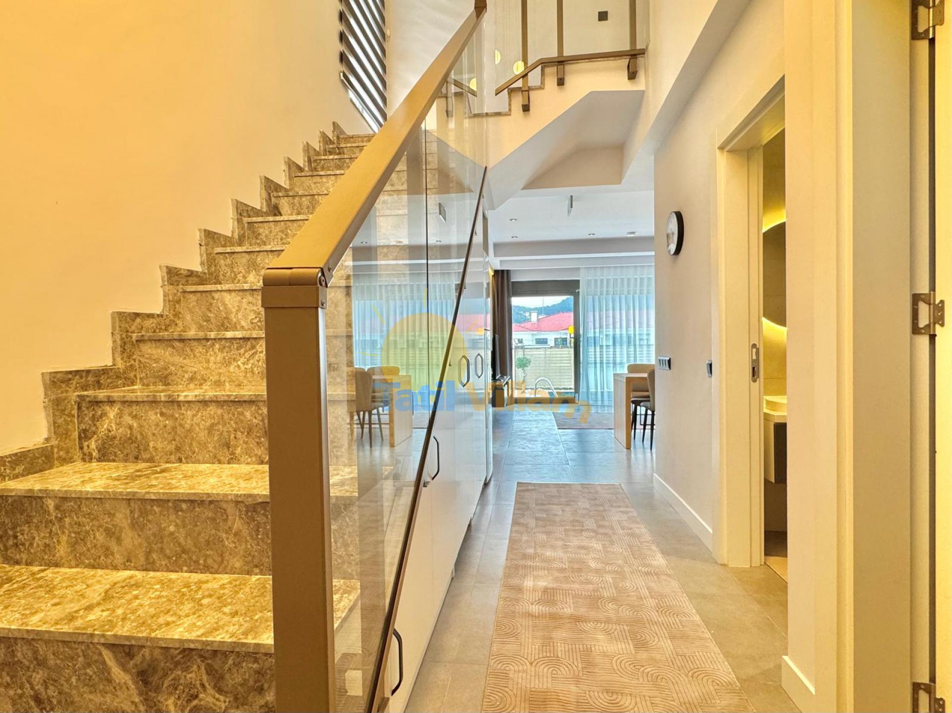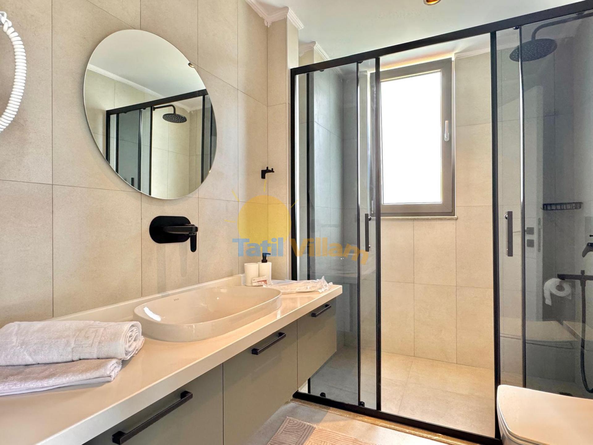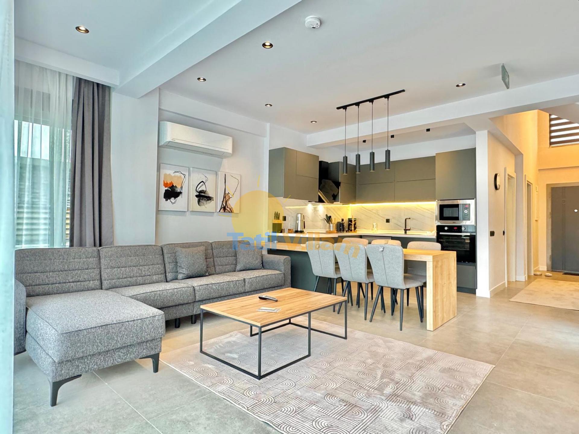 Detayları : Oturma grubu, TV , Klima, 6 kişilik yemek masası, Havuz kenarına çıkış, WC Lavabo bulunmaktadır.