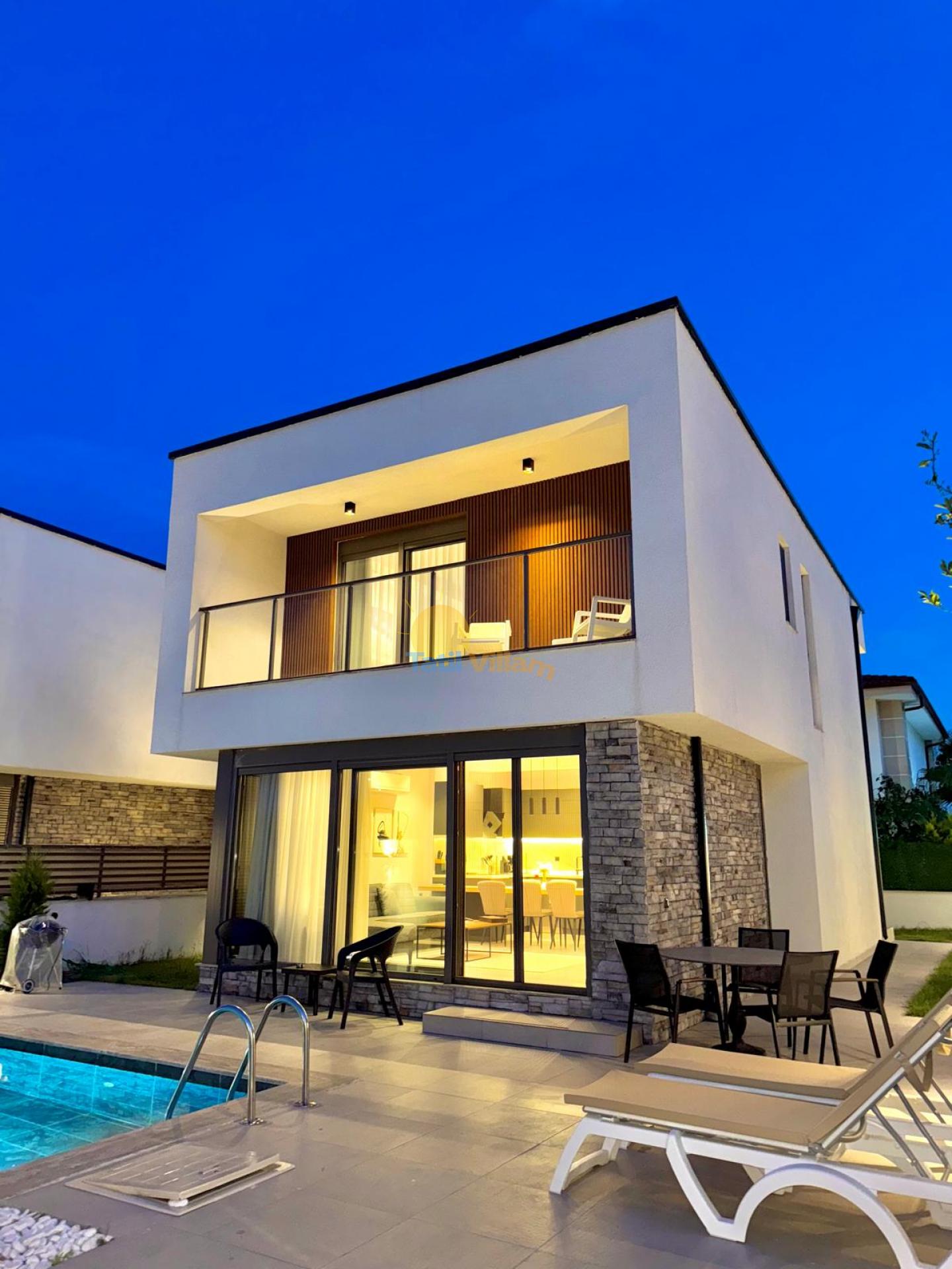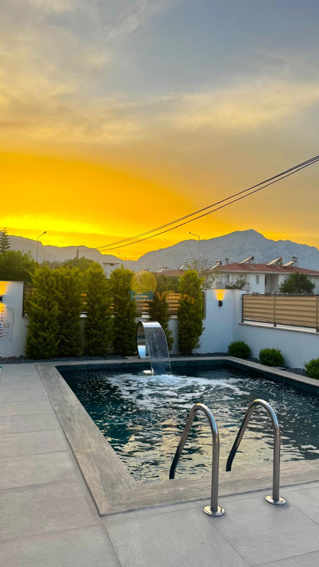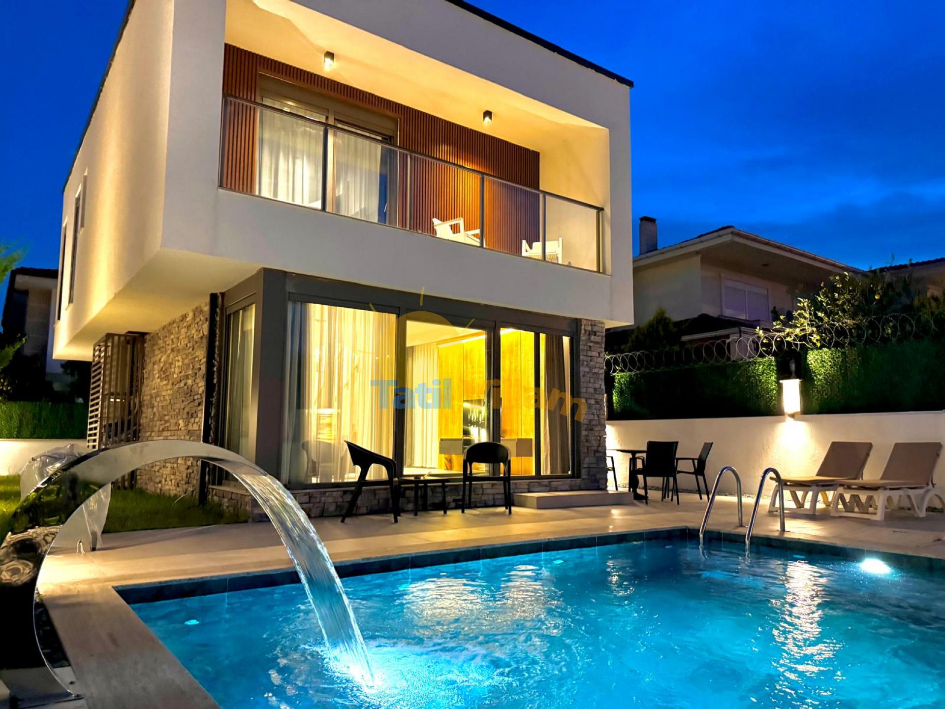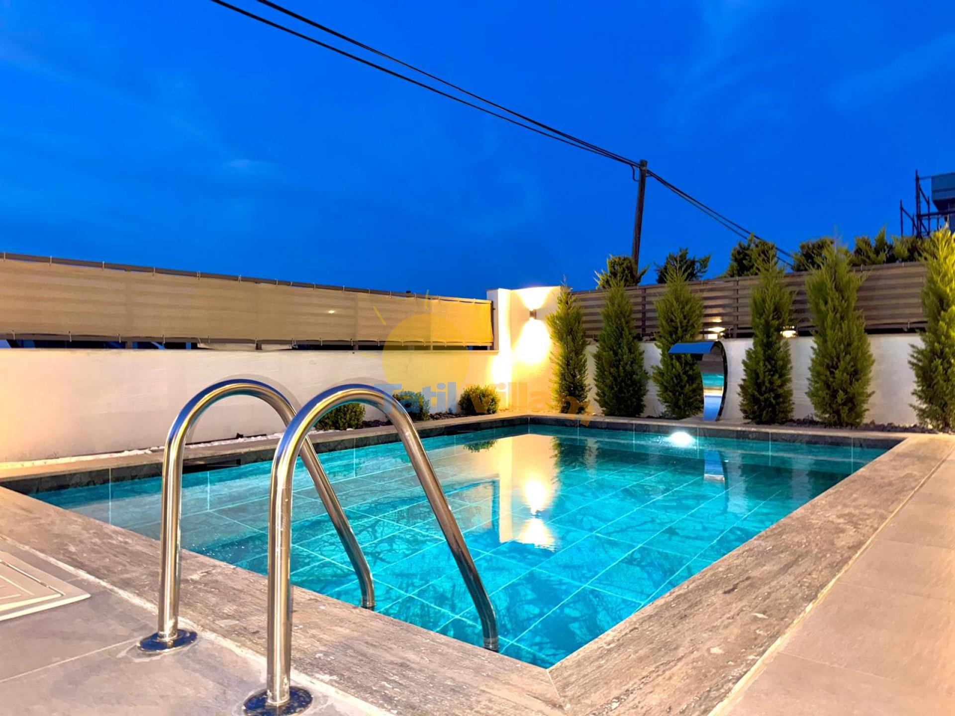 Detayları : 6 Kişilik masa ve sandalye, Özel yüzme havuzu, 2 Adet şezlong