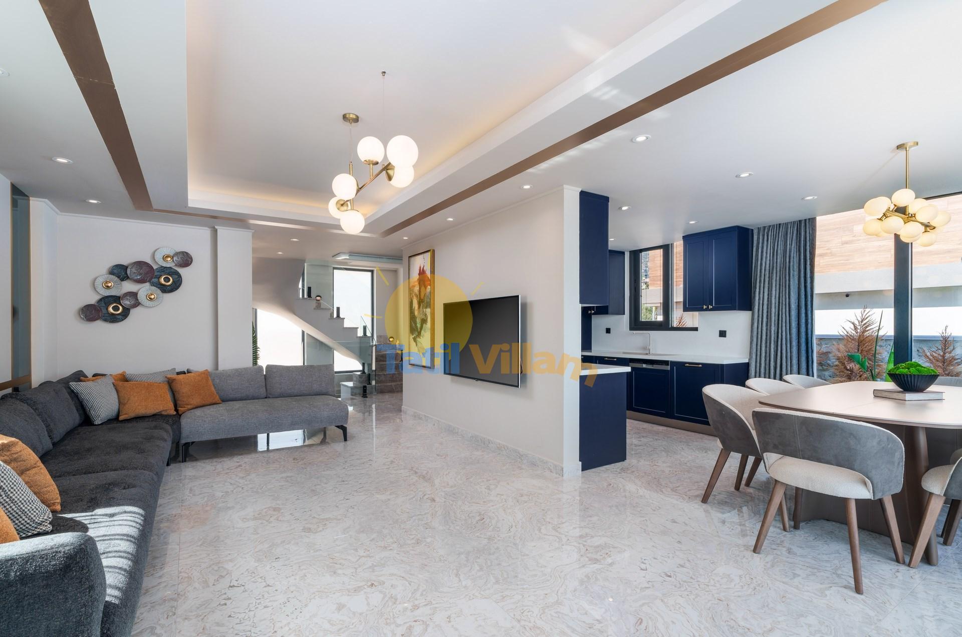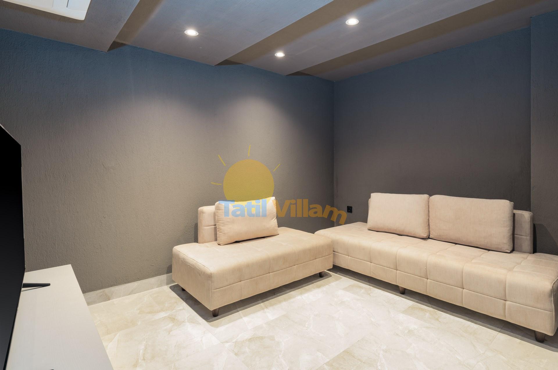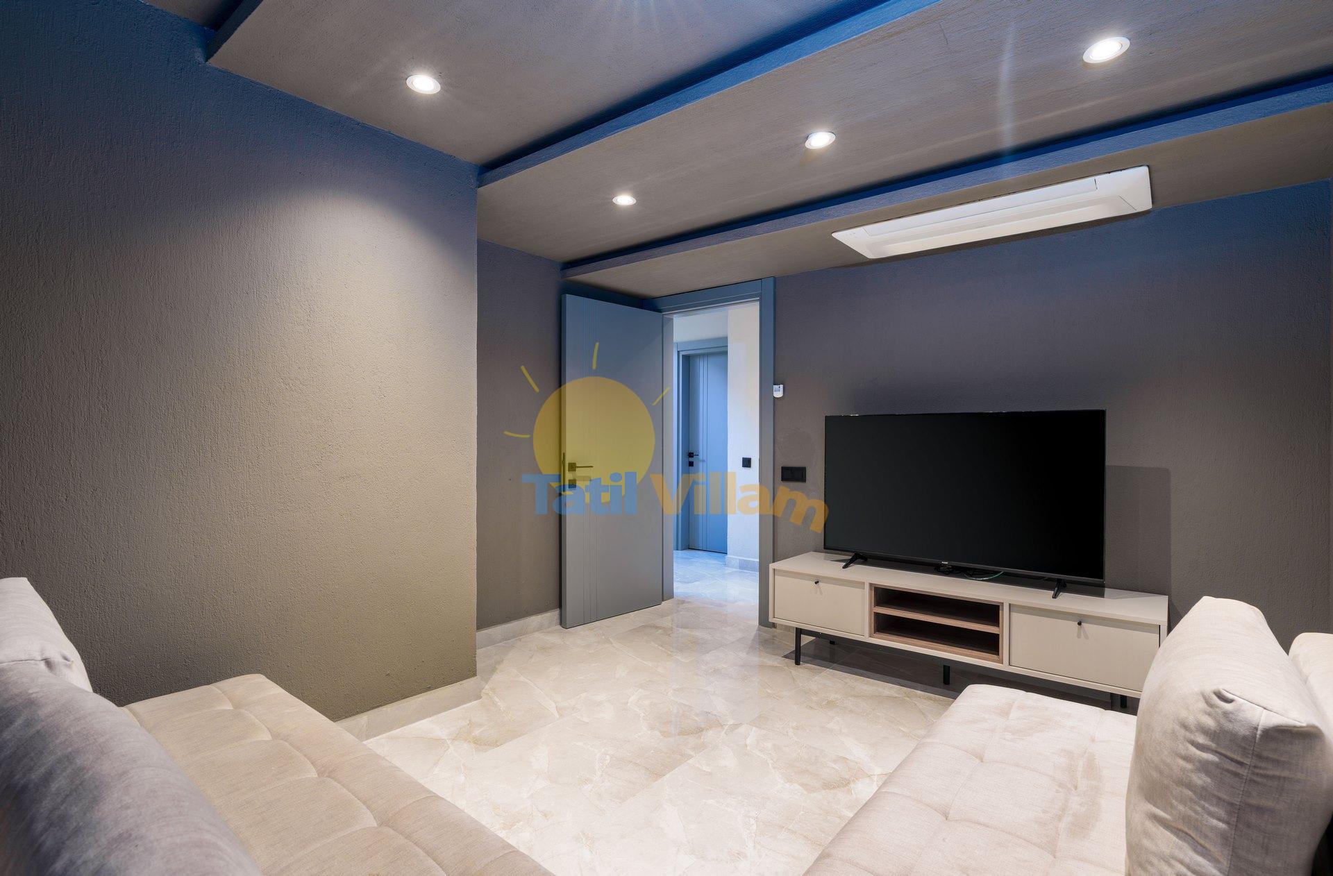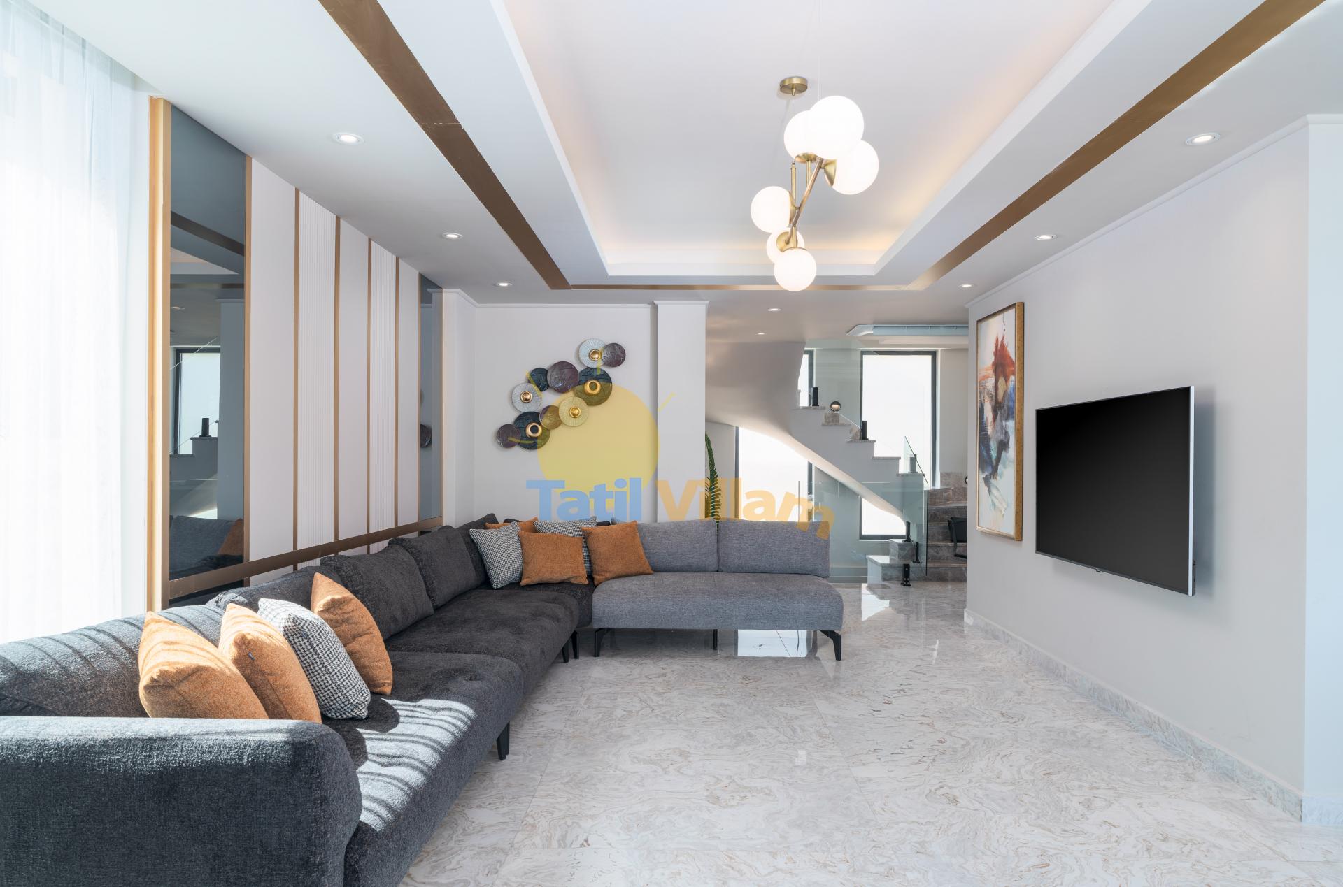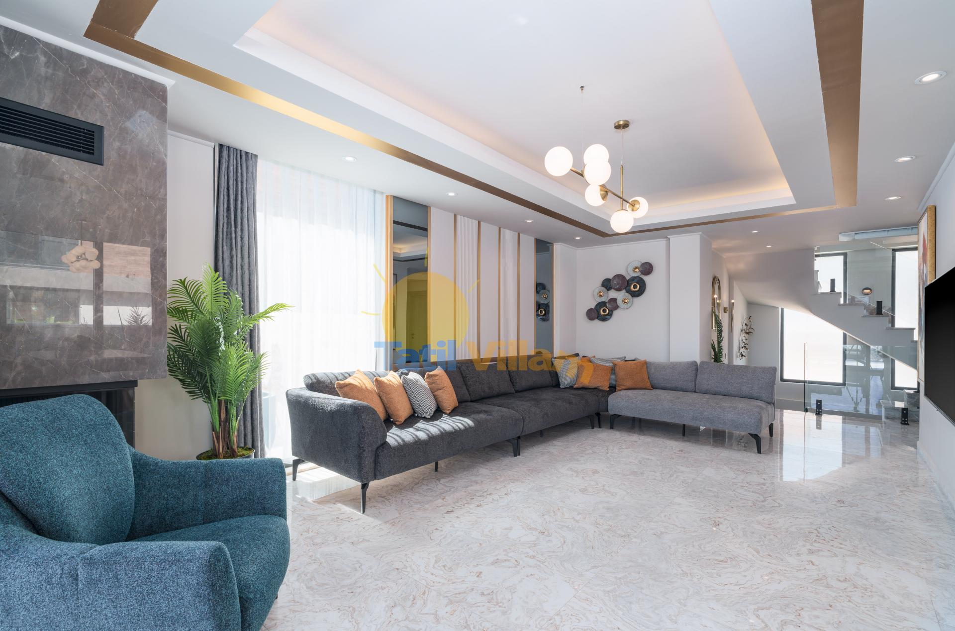 Detayları : Oturma grubu, TV, Klima,8 kişilik yemek masası,Şömine , havuz kenarına çıkış bulunmaktadır.
