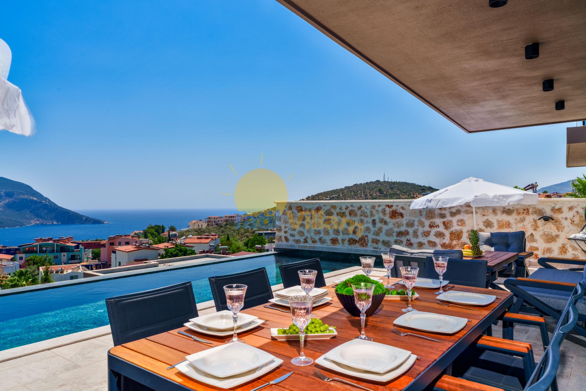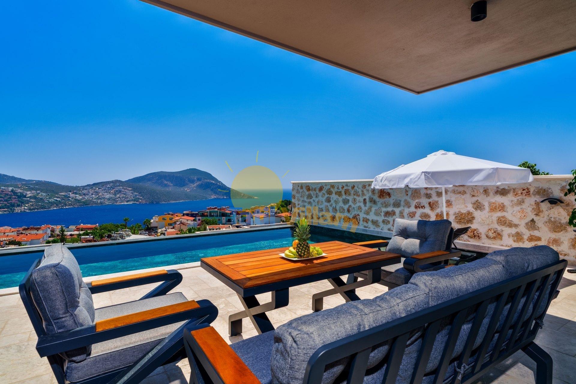 Kalkan Kalamar mevkisinde bulunan lüks donanımıyla ve modern dizaynıyla dikkat çeken villamız 2 suit yatak odalı 4 kişilik konaklama kapasitesine sahiptir.Yepyeni eşyaları ve harika manzarasıyla sizleri bekliyor..