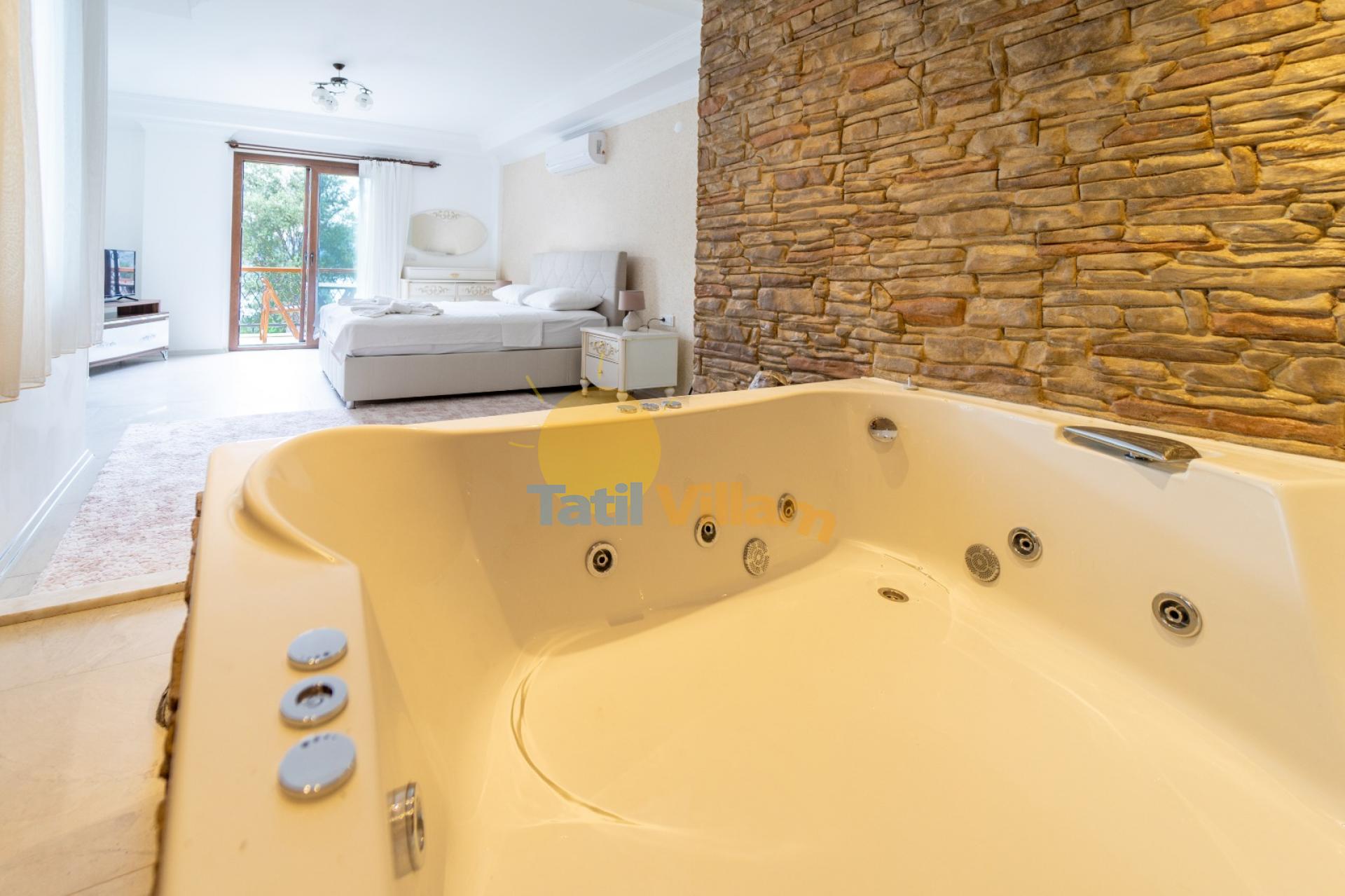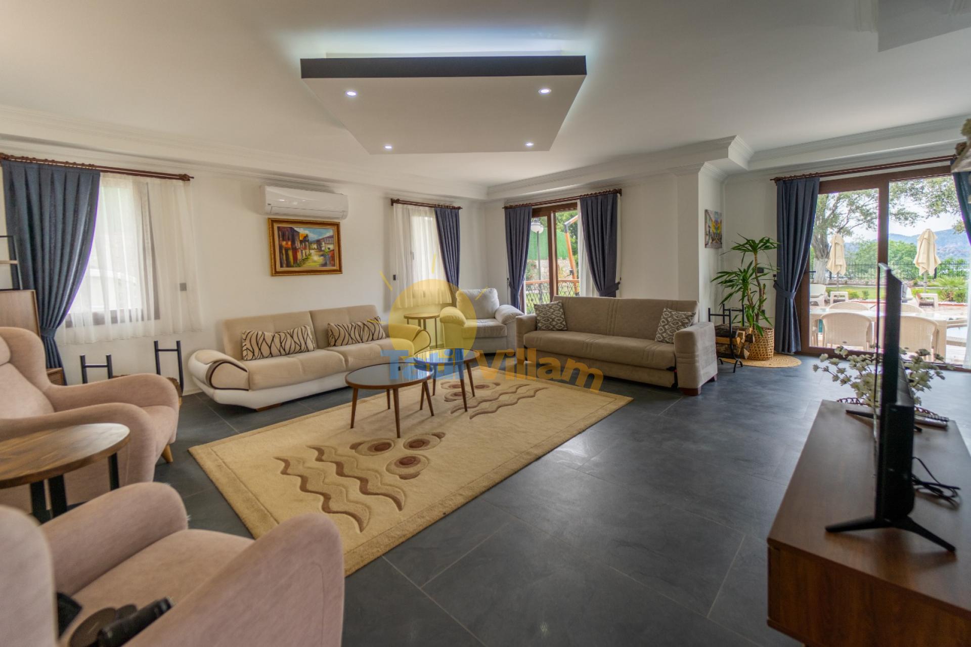 Detayları : Oturma grubu, Uydu TV (LCD) , Klima, 6 Kişilik yemek masası, Şömine, WC & Lavabo ve Havuz kenarına çıkış bulunmaktadır.