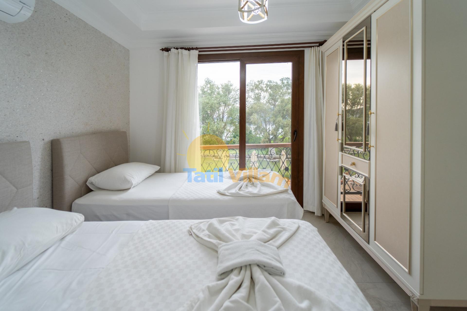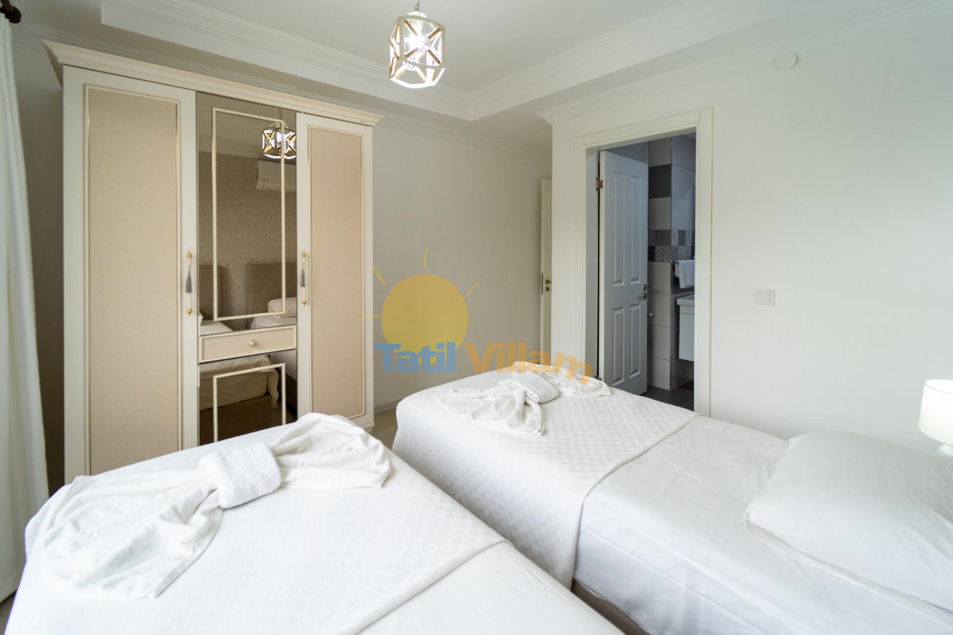 Detayları : İki adet tek kişilik yatak, Elbise dolabı, Komidin, Makyaj masası, Klima, Banyo , Fransız Balkon bulunmaktadır.