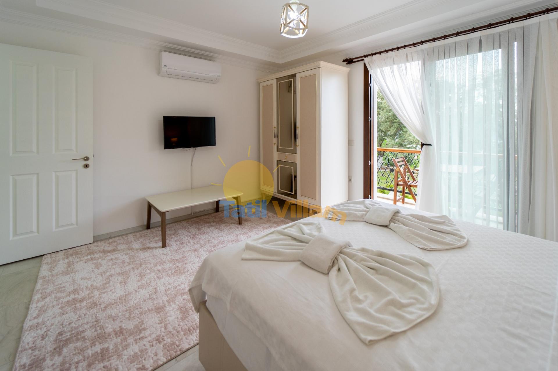 Detayları : Çift kişilik yatak, Elbise dolabı, Komidin, Makyaj masası, TV , Klima,Klima , Balkon bulunmaktadır