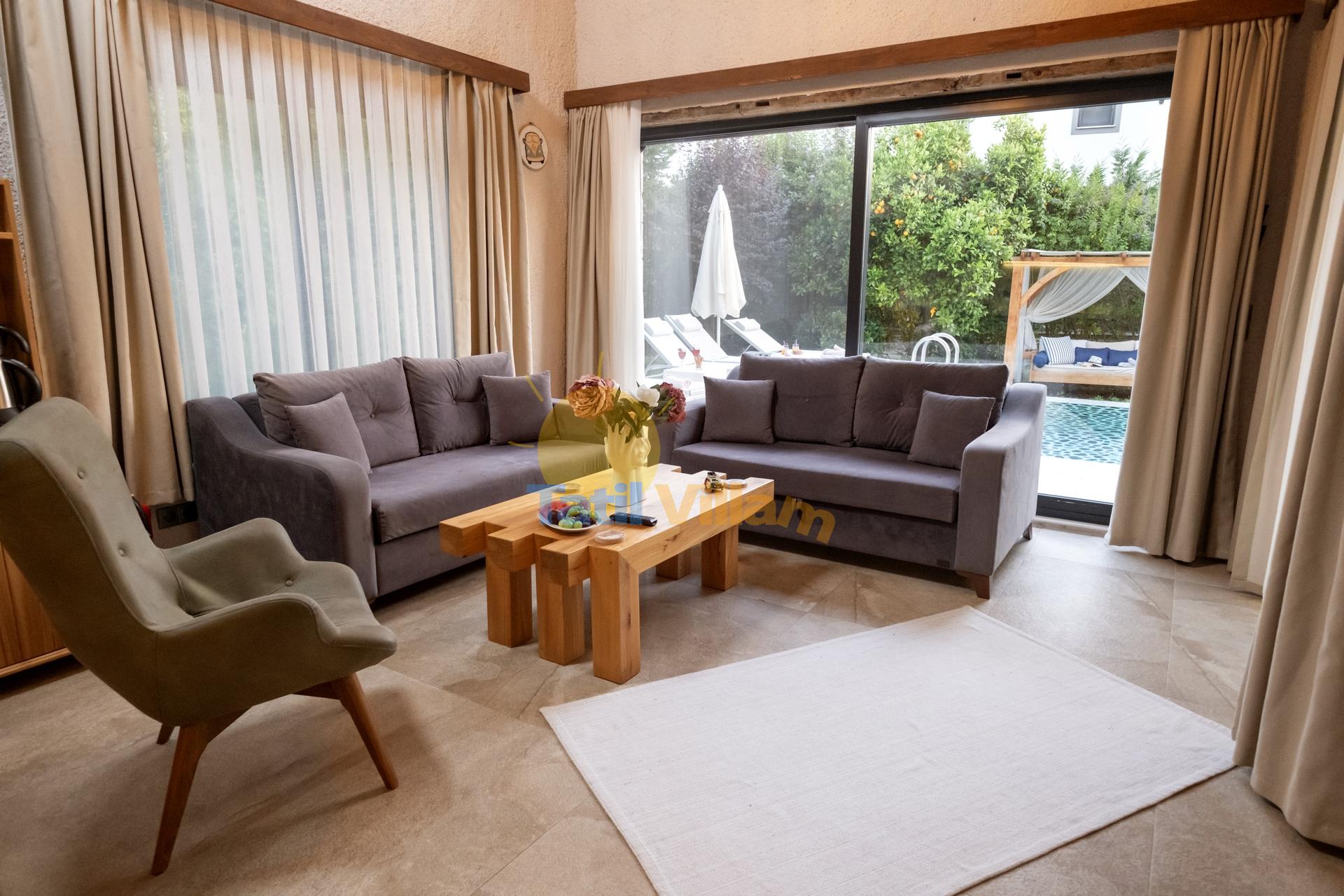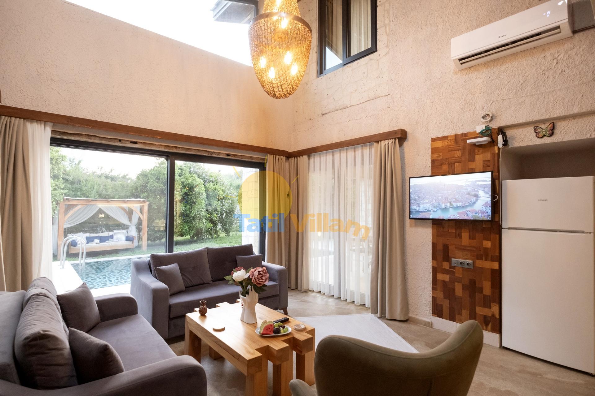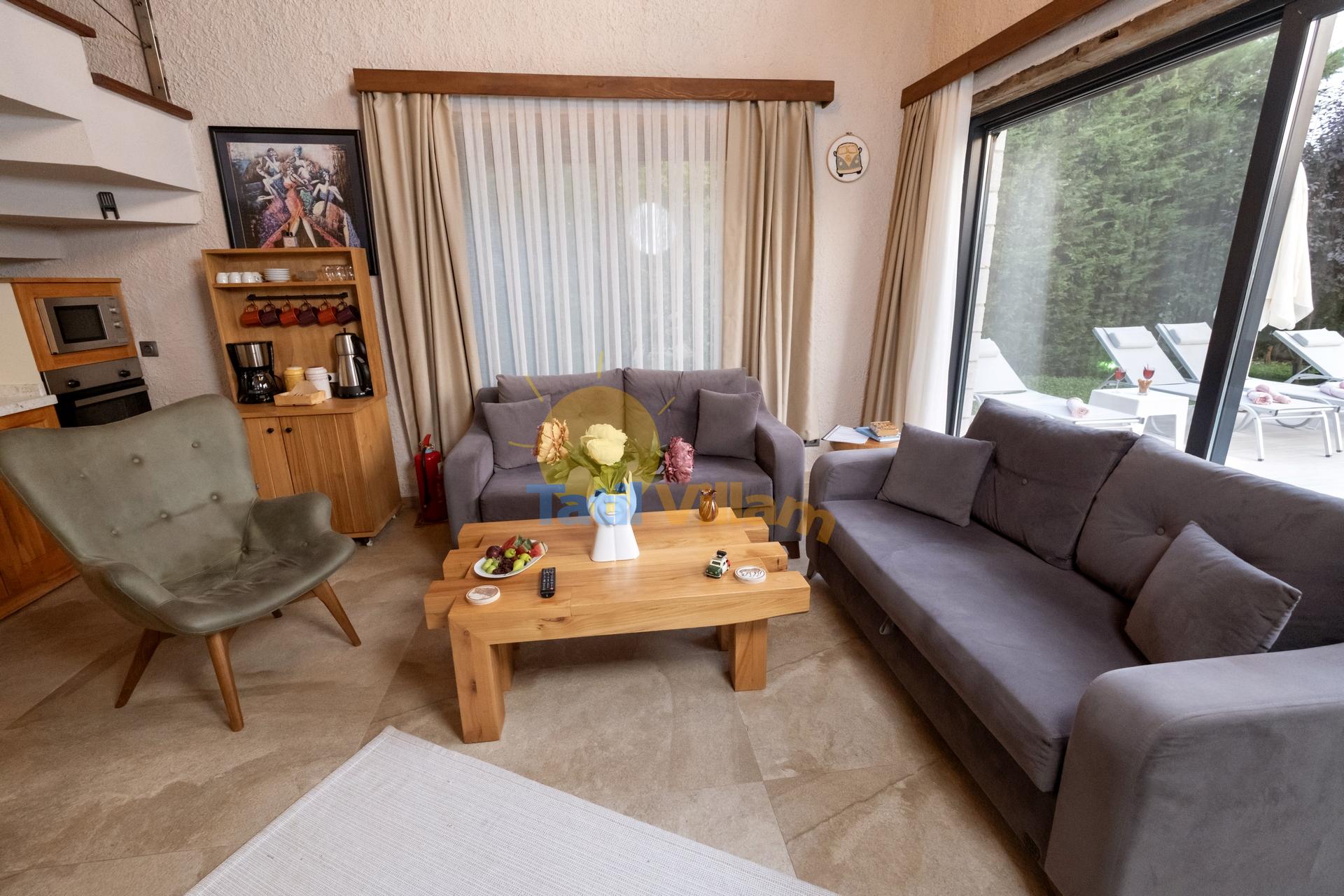 Detayları : Oturma grubu, Uydu TV,  Klima ve havuz terasına çıkış  bulunmaktadır.