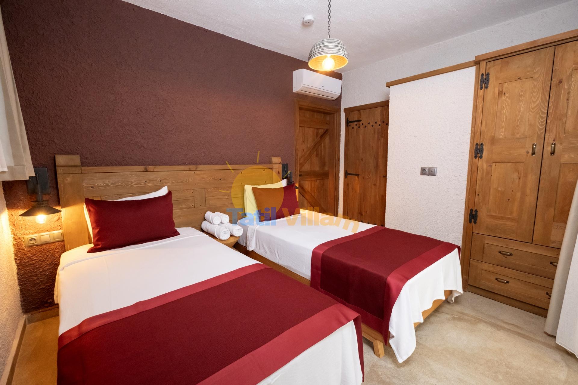 Detayları : 2 adet tek kişilik yatak, Komidin, Elbise dolabı, Klima ve Banyo bulunmaktadır.