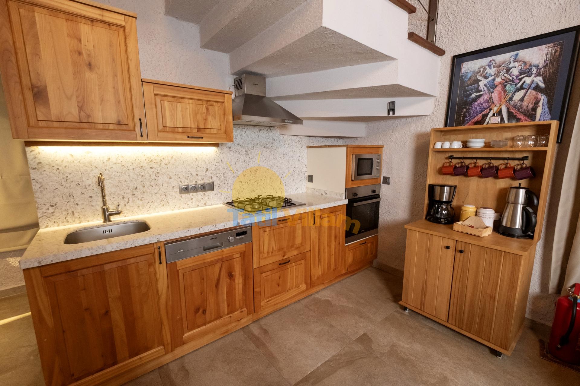 Detayları : Buzdolabı, Bulaşık Makinesi, Çamaşır makinesi, Fırın, 4′lü Ocak , Mikro Dalga fırın, Su ısıtıcısı, Tost makinesi, 4 kişilik yemek takımı, Tava, Tencere, Çatal bıçak vb.
