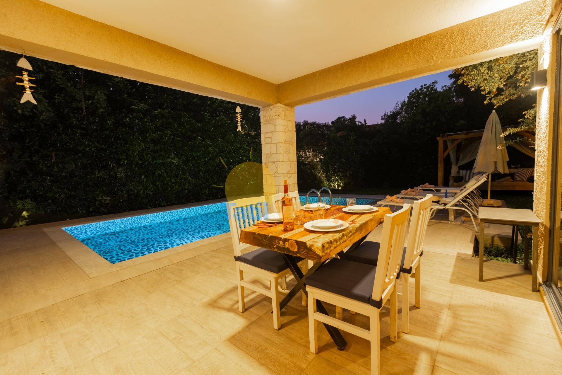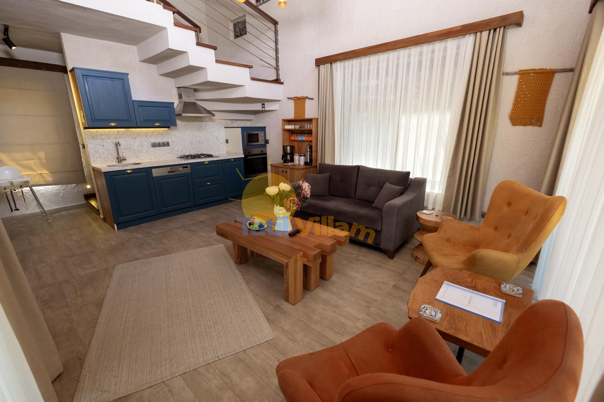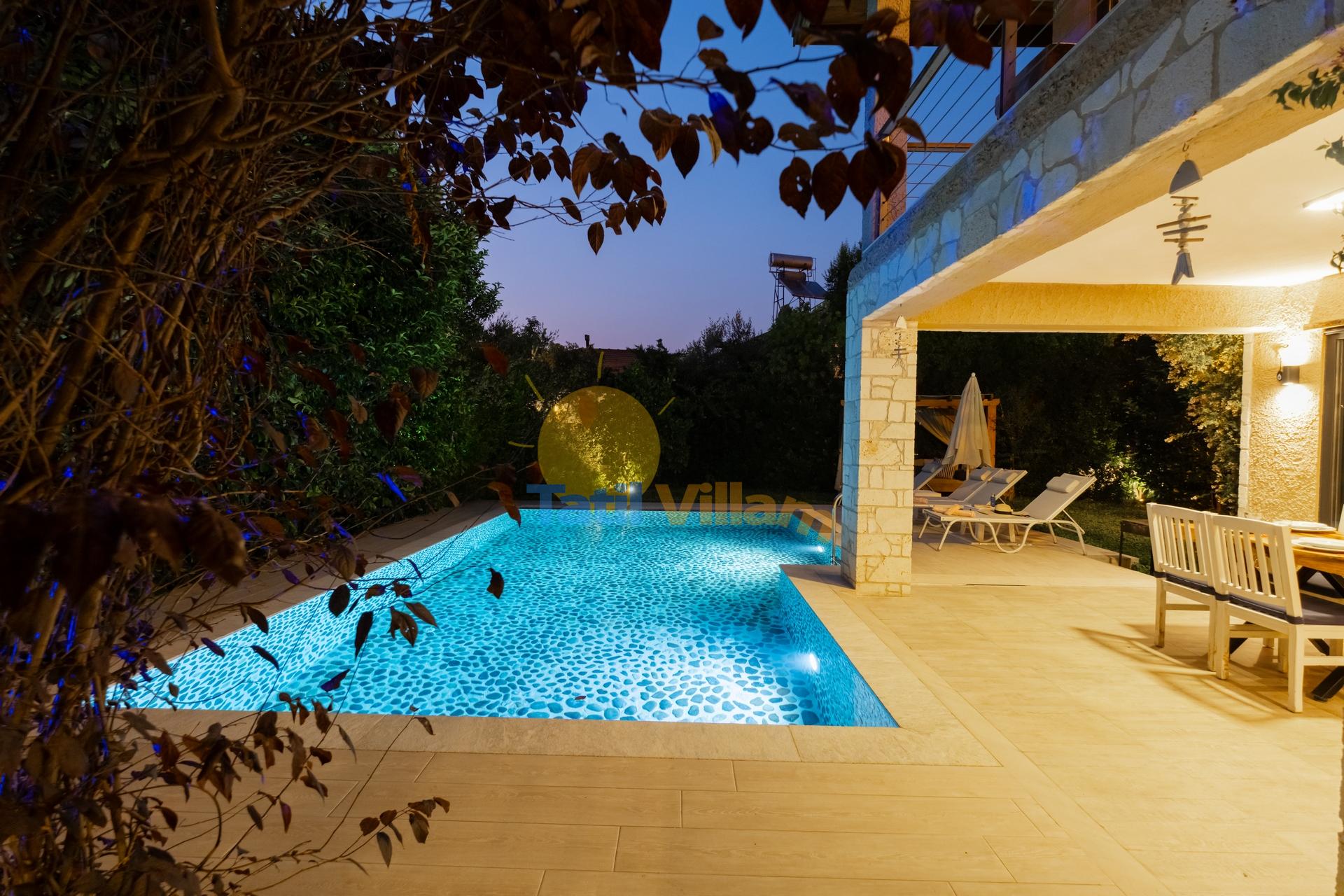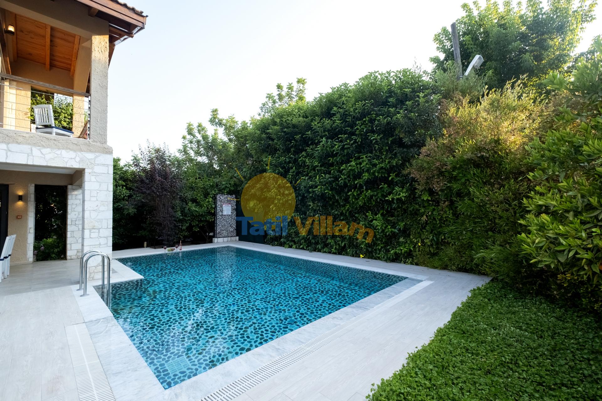 Fethiye de, denize sadece 900 mt. uzaklıkta konumlanmış bu şık jakuzili villamız, yemyeşil portakal ağaçlarının arasında sessiz sakin bir bölgede yer alan, 4 kişilik konaklama kapasiteli özel bir villadır. Modern bir mimari yapı ve dekorasyona sahip olan villamız, jakuzili suit balayı odası, suit genç yatak odası, açık mutfak + salon, özel bahçe, Özel havuz, Sığ havuz ve ferah kullanım alanlarıyla, sizlere rahatı ve konforu fazlasıyla sunacaktır. Gözlerden uzak huzur dolu bir tatil tecrübesi için villamız sizleri bekliyor.