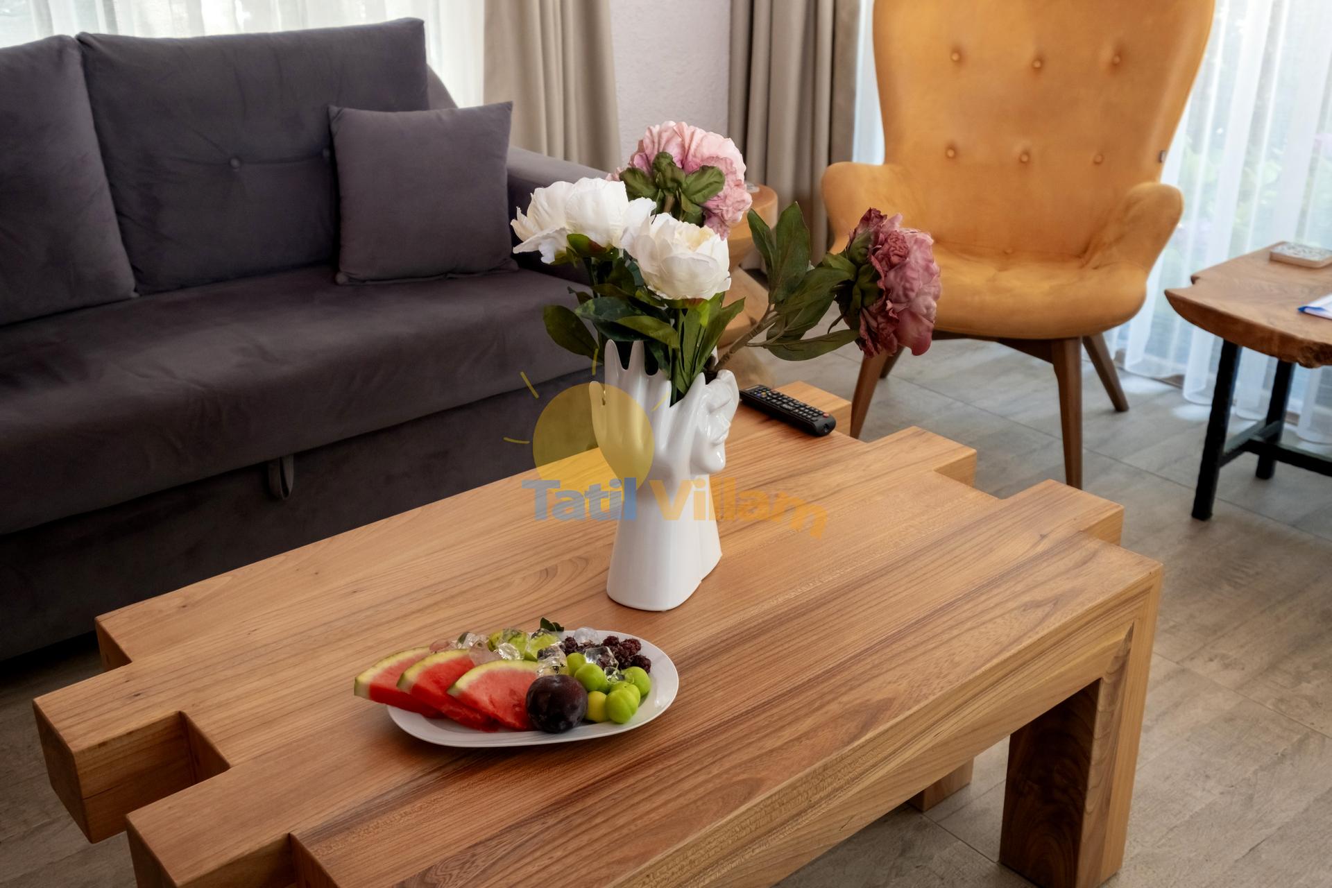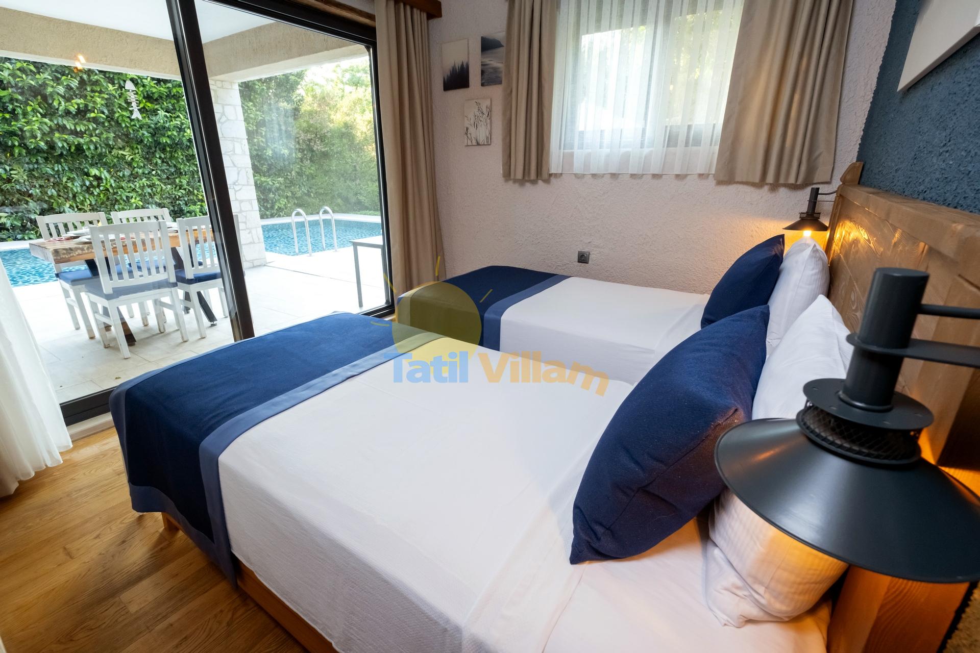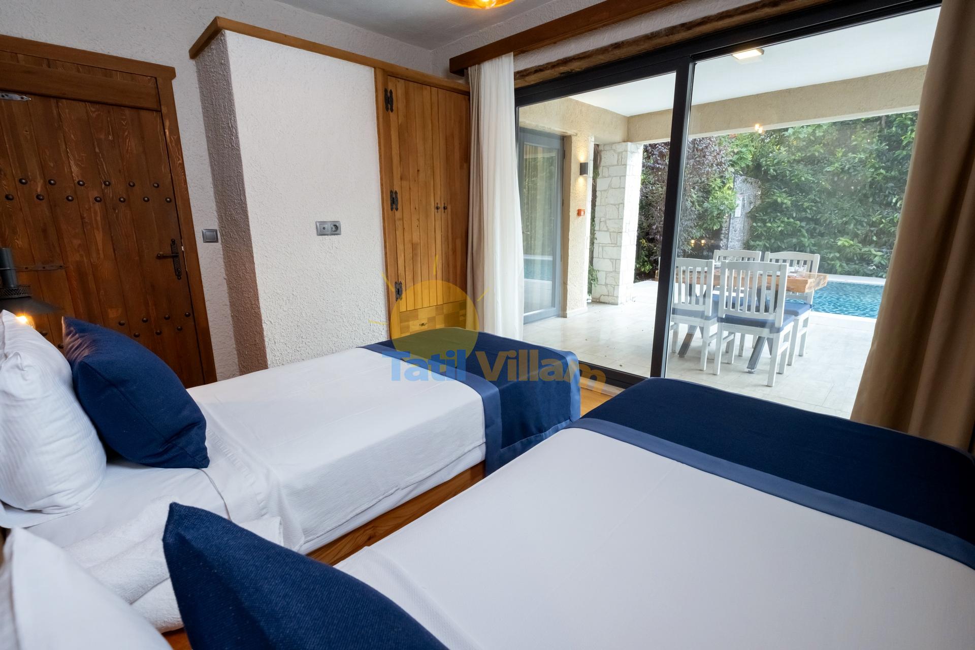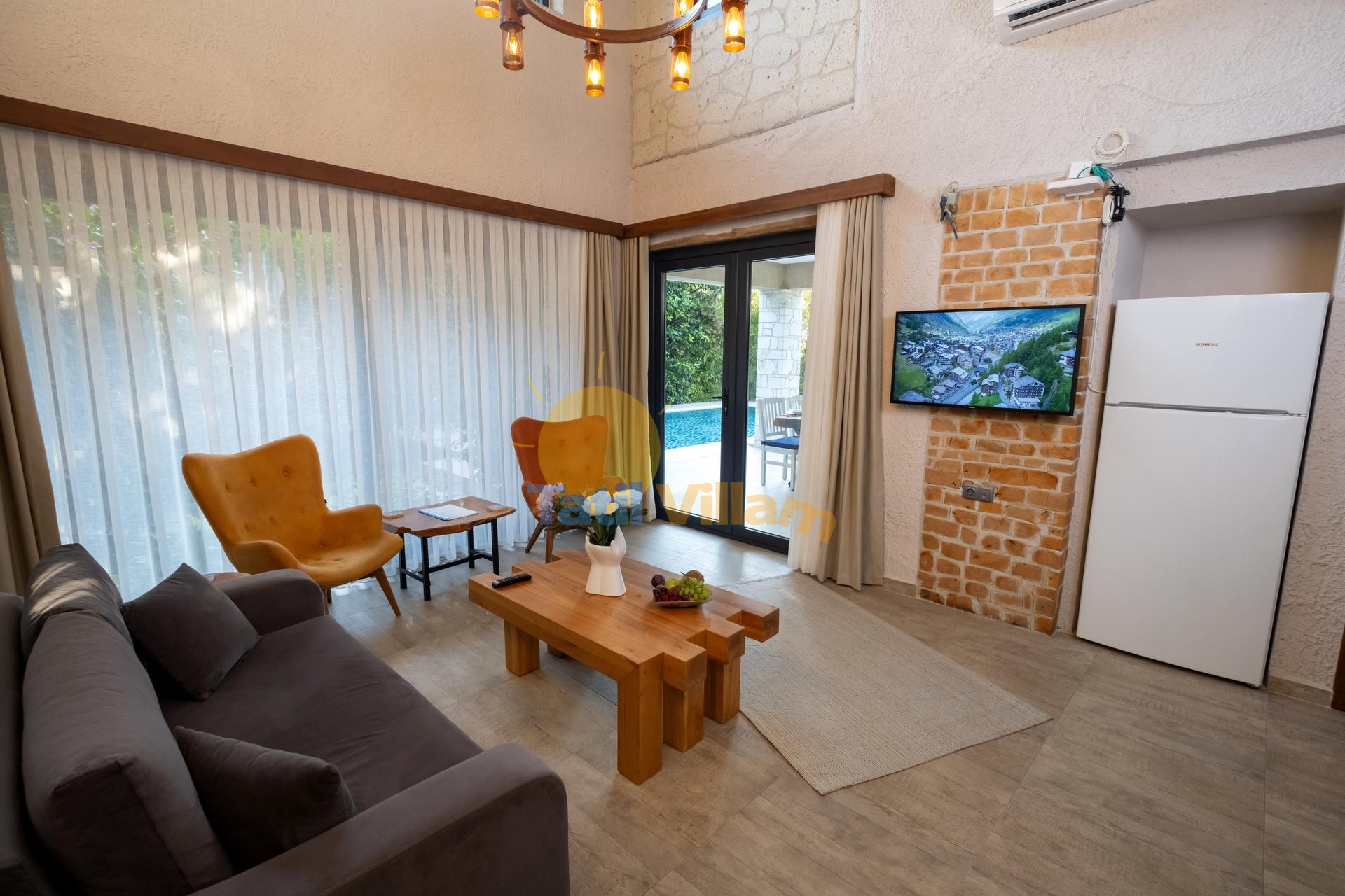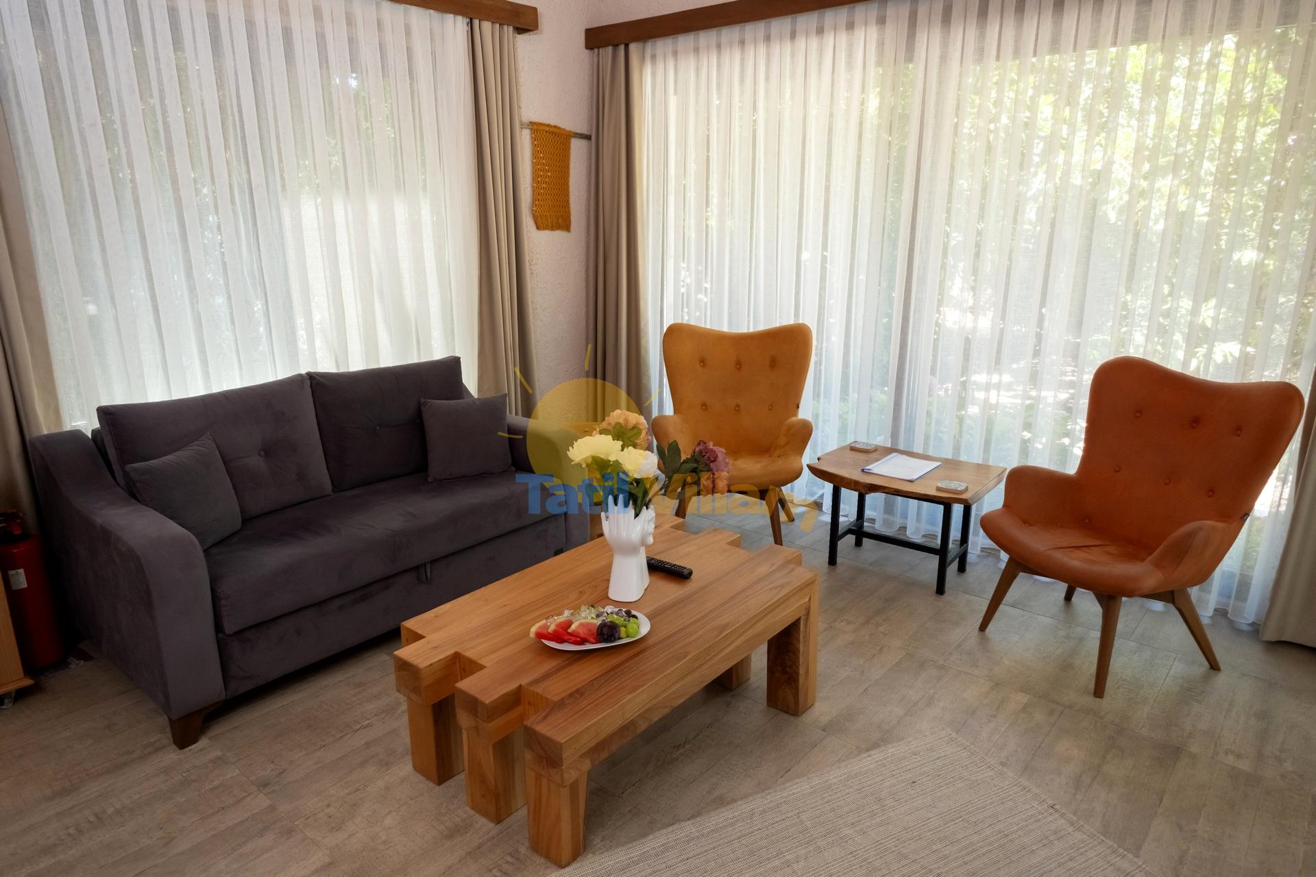 Detayları : Oturma grubu, Uydu TV, Klima ve havuz terasına çıkış bulunmaktadır.