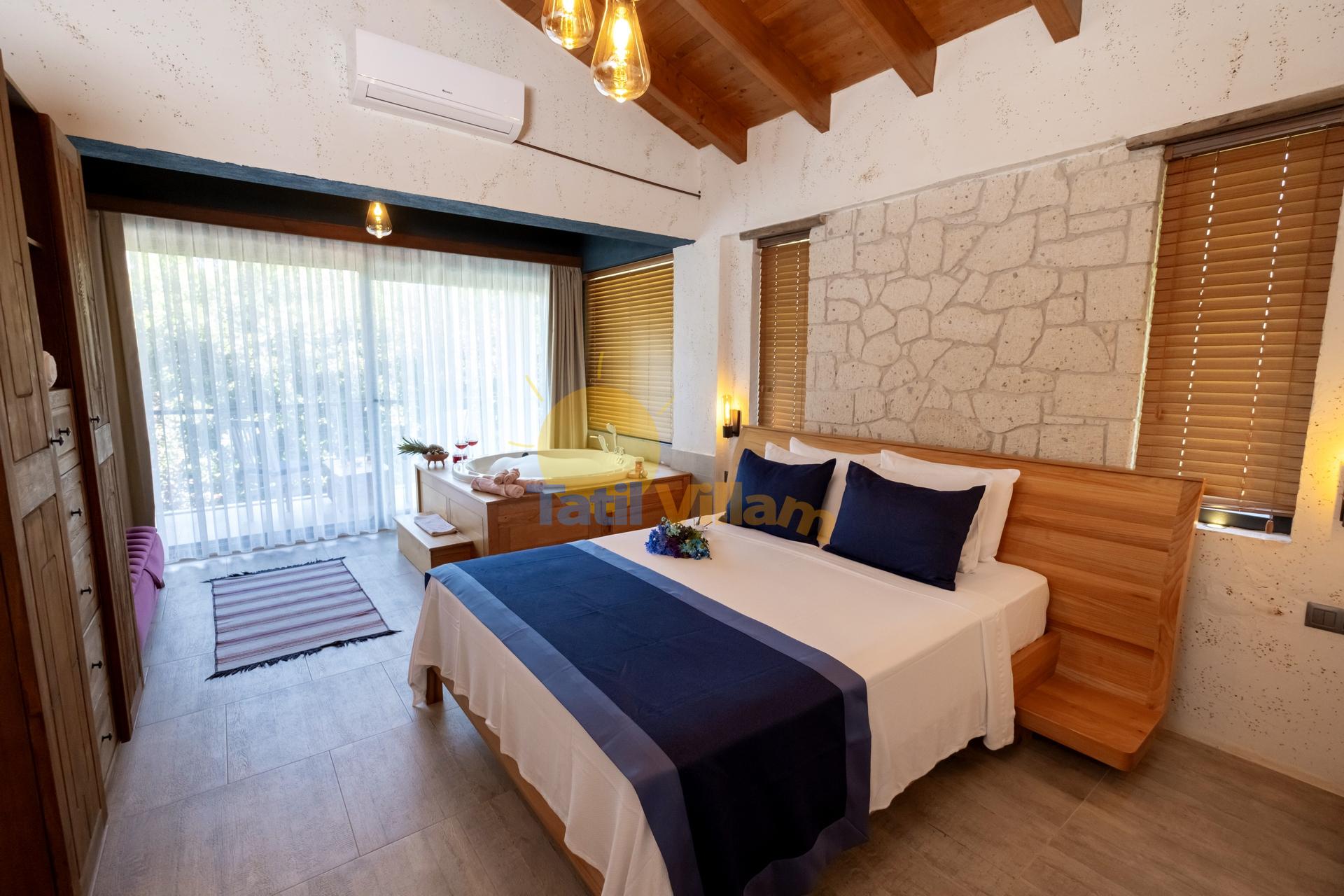 Detayları : Çift kişilik yatak, Komidin, Elbise dolabı, Klima, Jakuzi, Balkon ve Banyo bulunmaktadır.