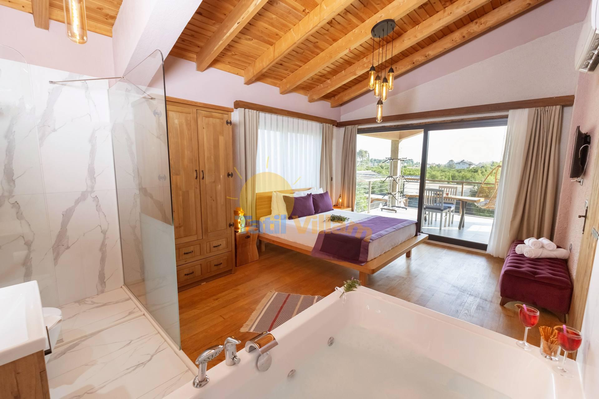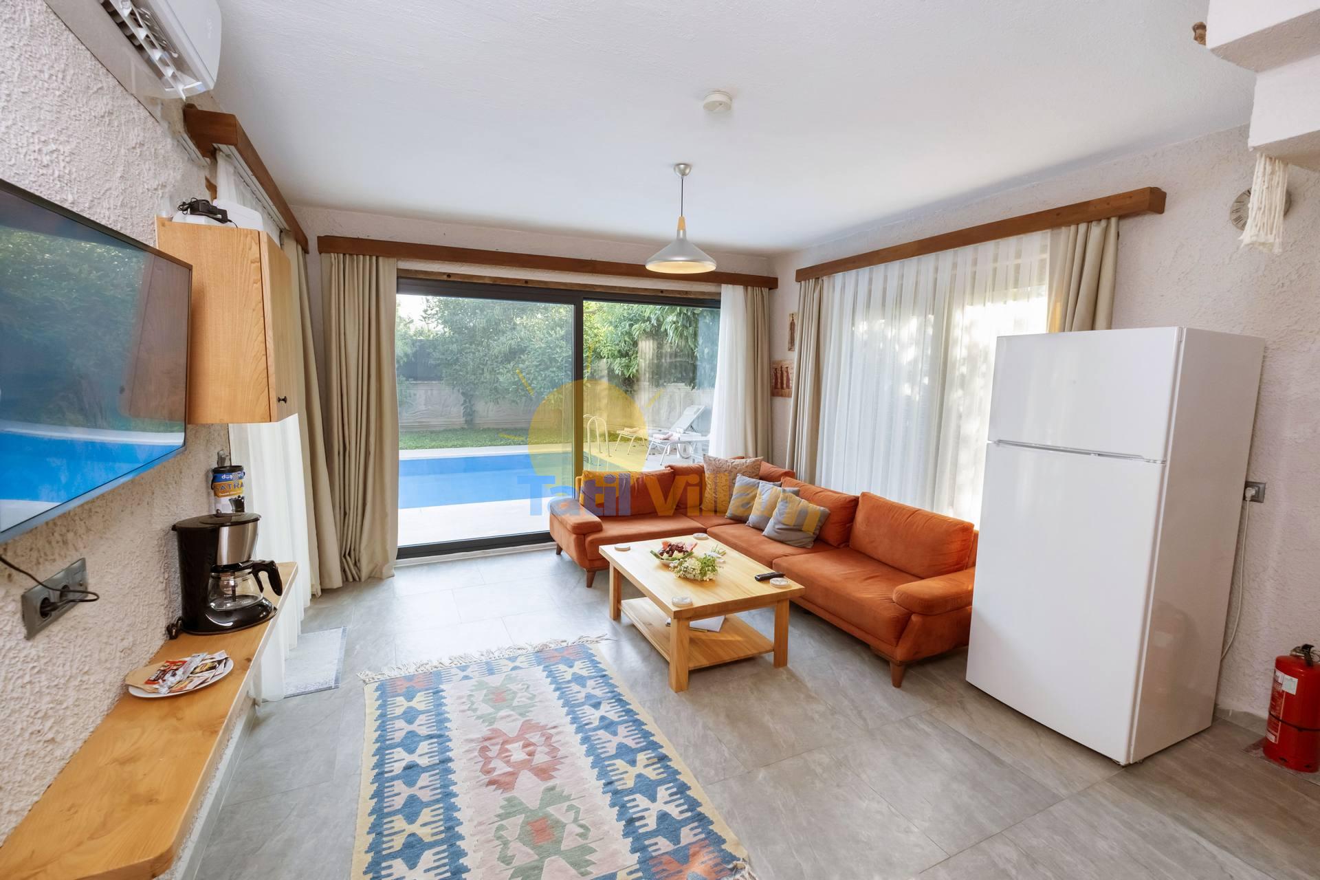 Detayları : Oturma grubu, Uydu TV, Klima ve havuz terasına çıkış bulunmaktadır.
